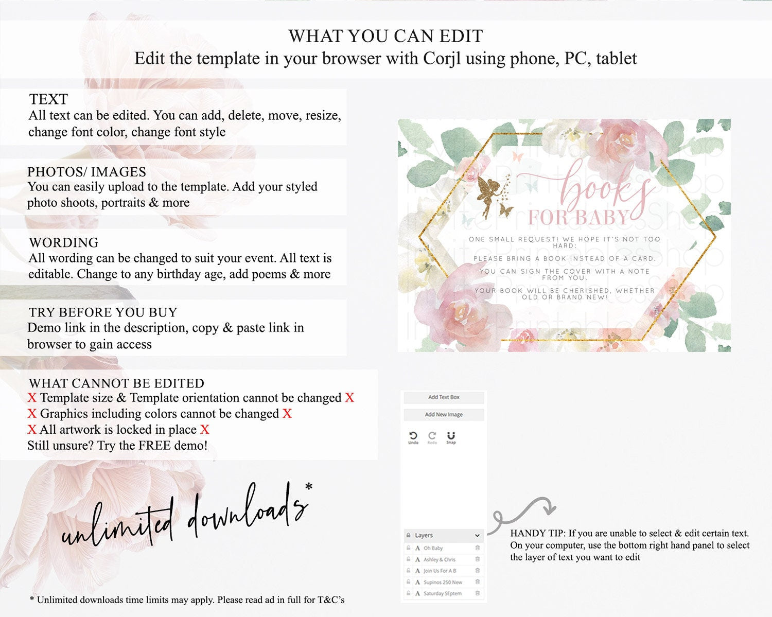 Fairy Books For Baby Card Fairy Book Insert Enchanted Garden Fairy Book Card Pastel Floral Butterfly Cards Secret Garden Book Poem D10965