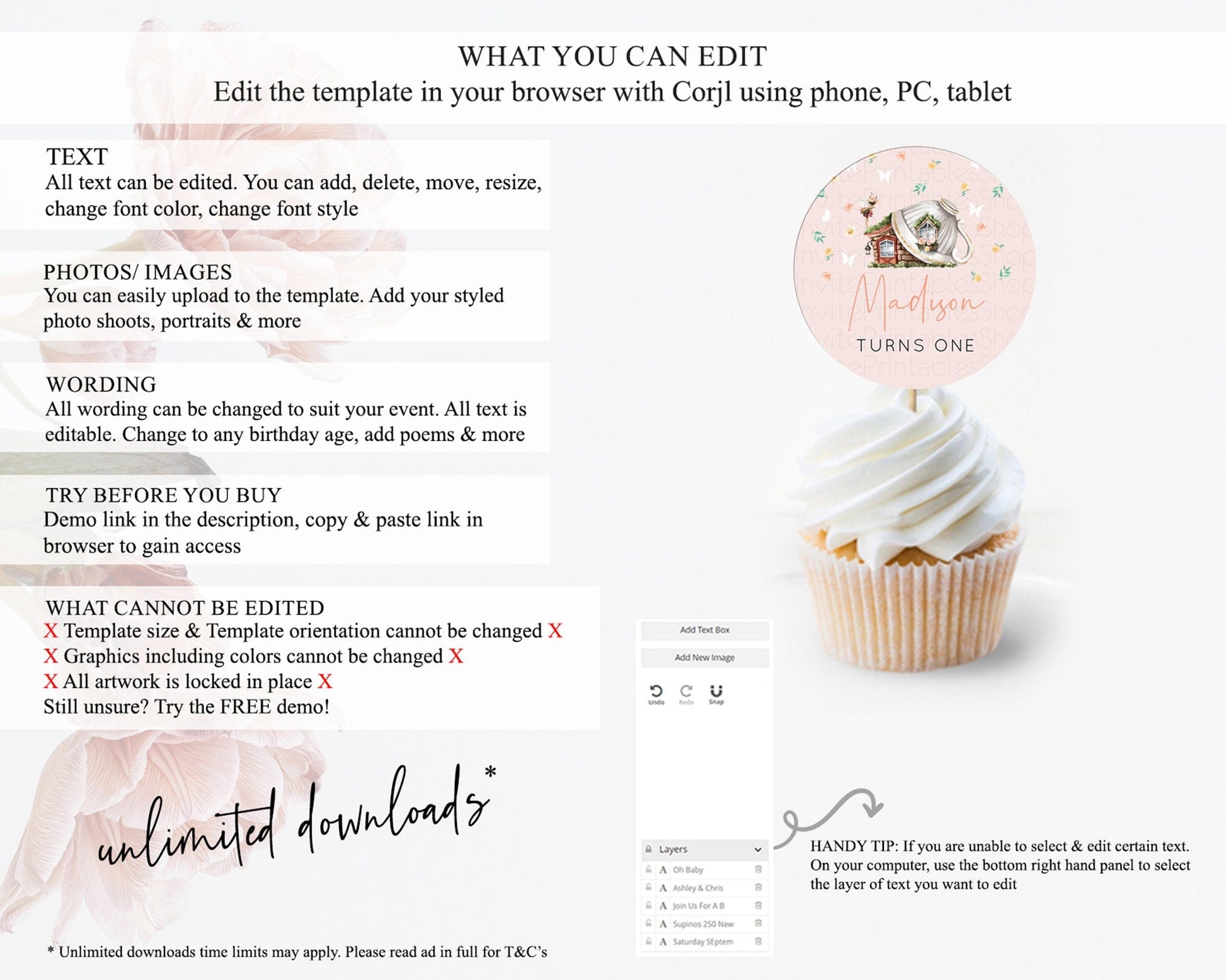 Fairy Cupcake Toppers Pastel Fairy Cupcake Toppers Fairy Floral Garden Cupcake Topper Enchanted Garden Floral Butterfly Party Decor D10384