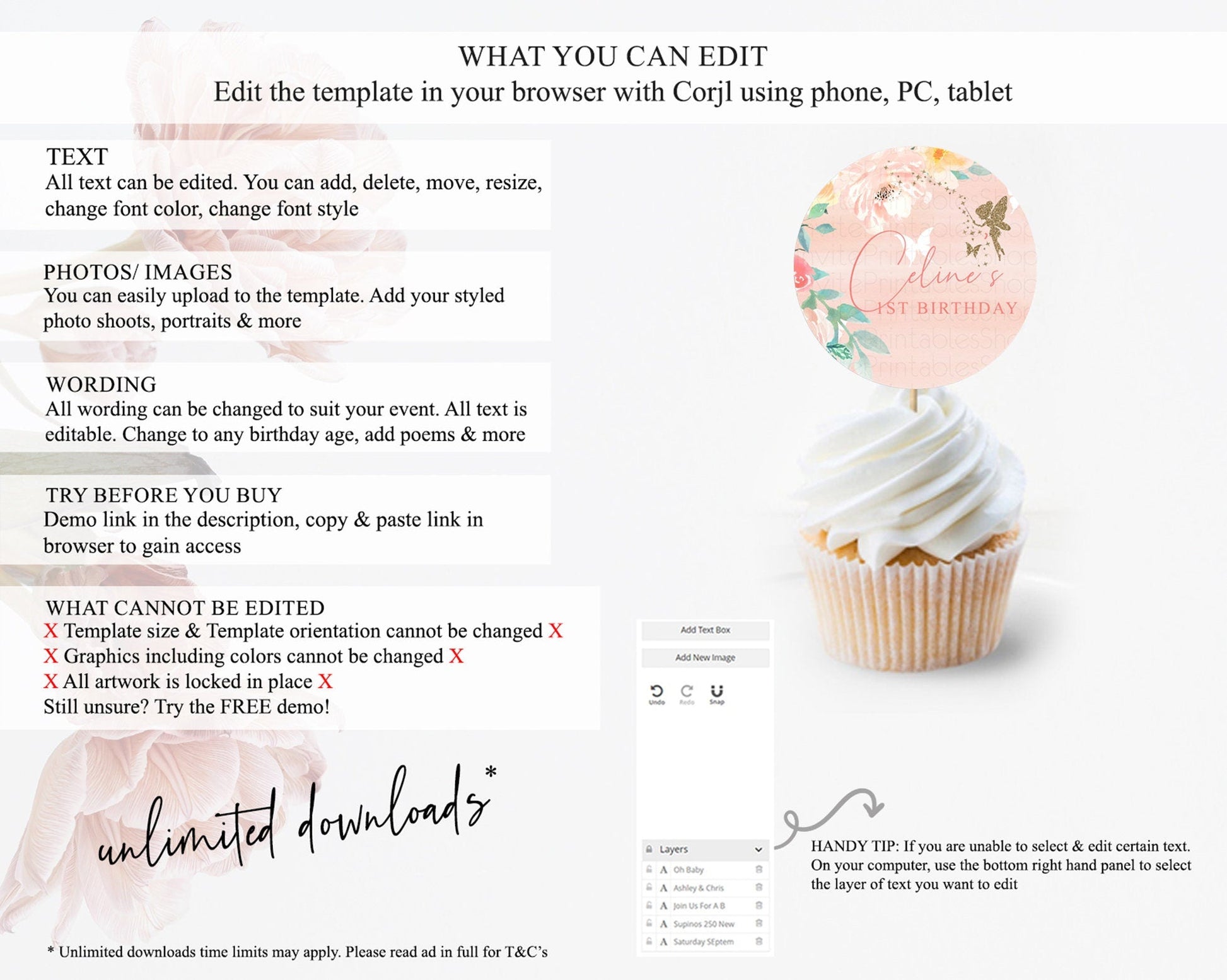 Fairy Cupcake Toppers Pastel Fairy Cupcake Toppers Fairy Floral Garden Cupcake Topper Enchanted Garden Floral Butterfly Party Decor D10792