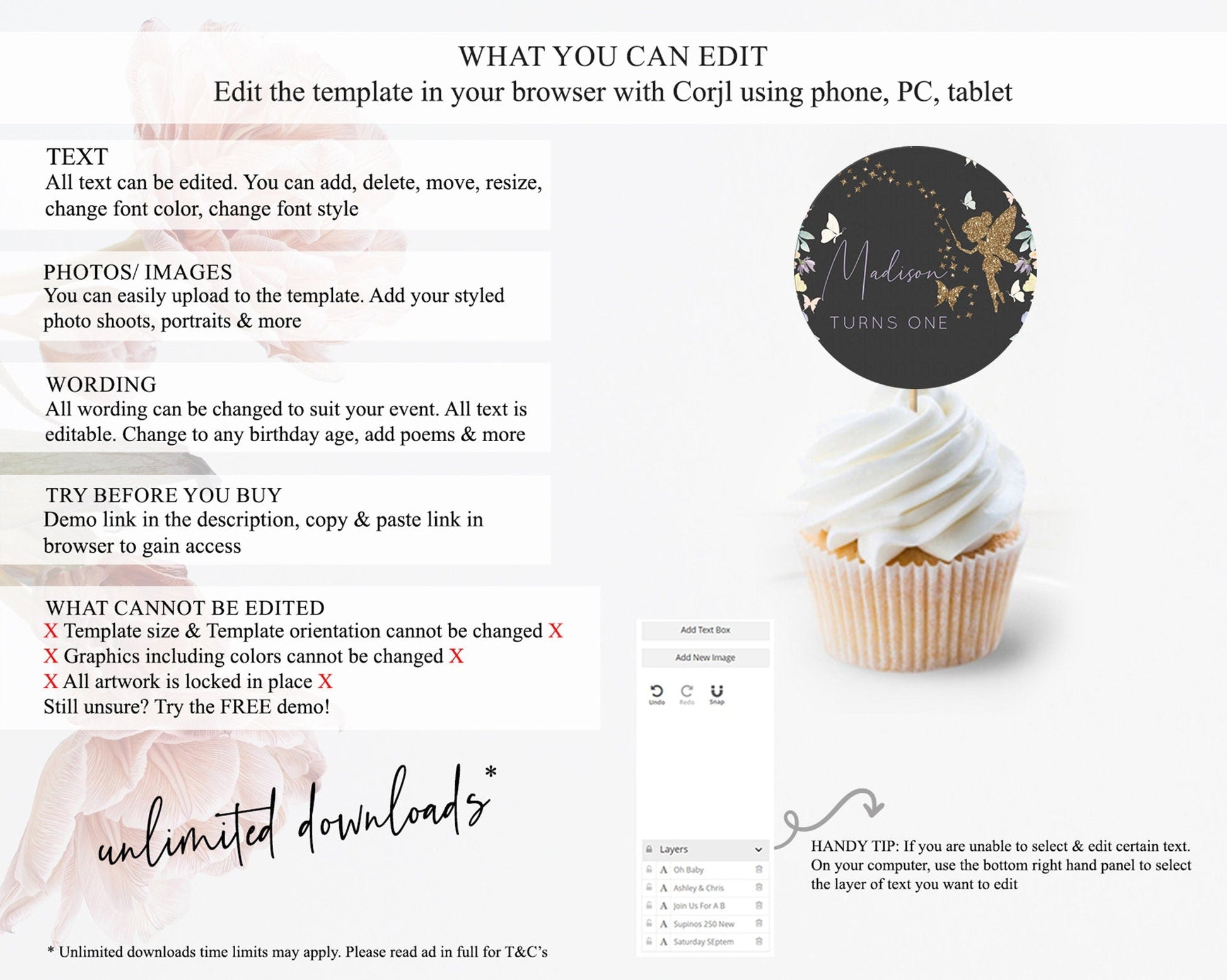 Fairy Cupcake Toppers Pastel Fairy Cupcake Toppers Fairy Floral Garden Cupcake Topper Enchanted Garden Floral Butterfly Party Decor D10881
