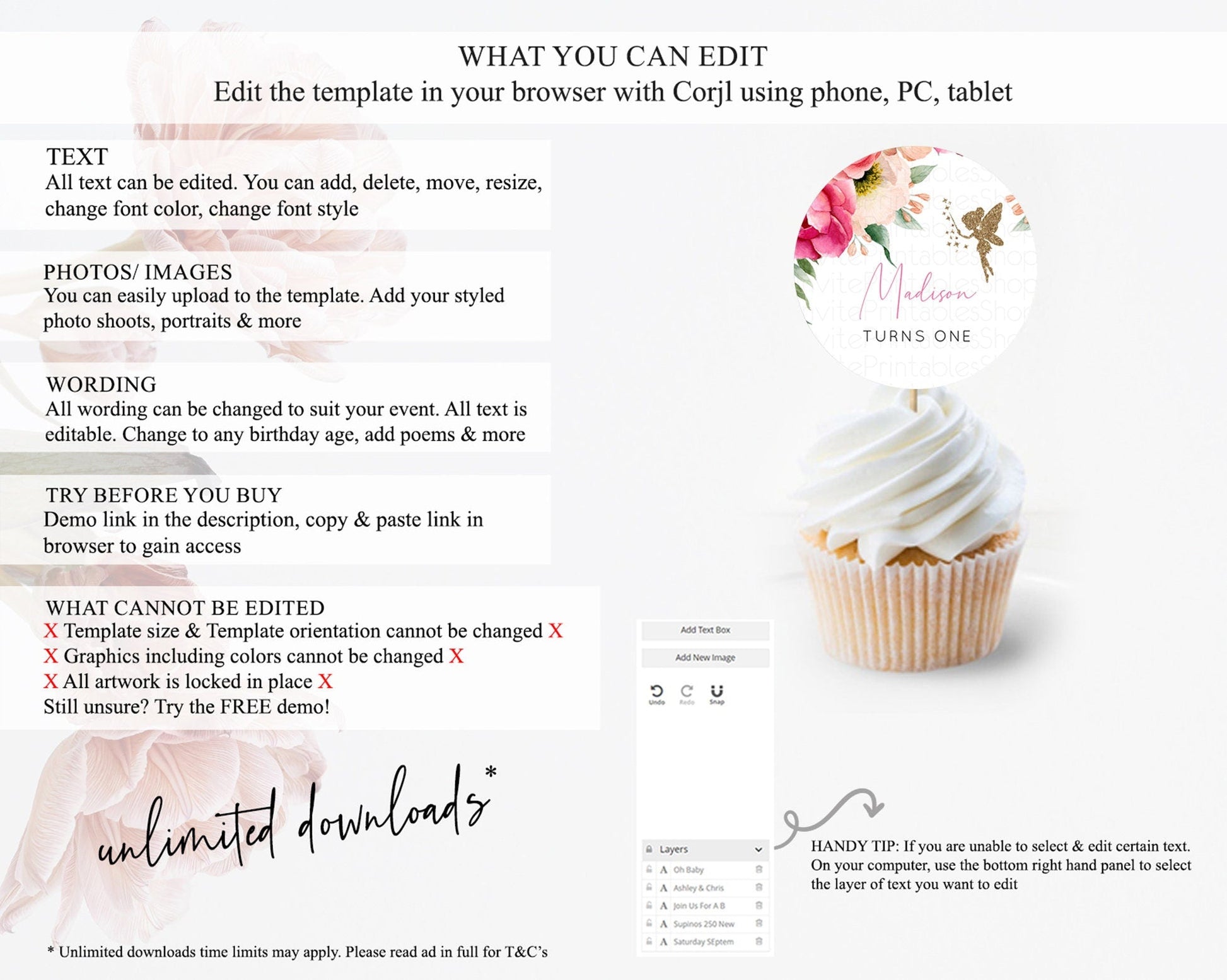 Fairy Cupcake Toppers Pastel Fairy Cupcake Toppers Fairy Floral Garden Cupcake Topper Enchanted Garden Floral Butterfly Party Decor D10883
