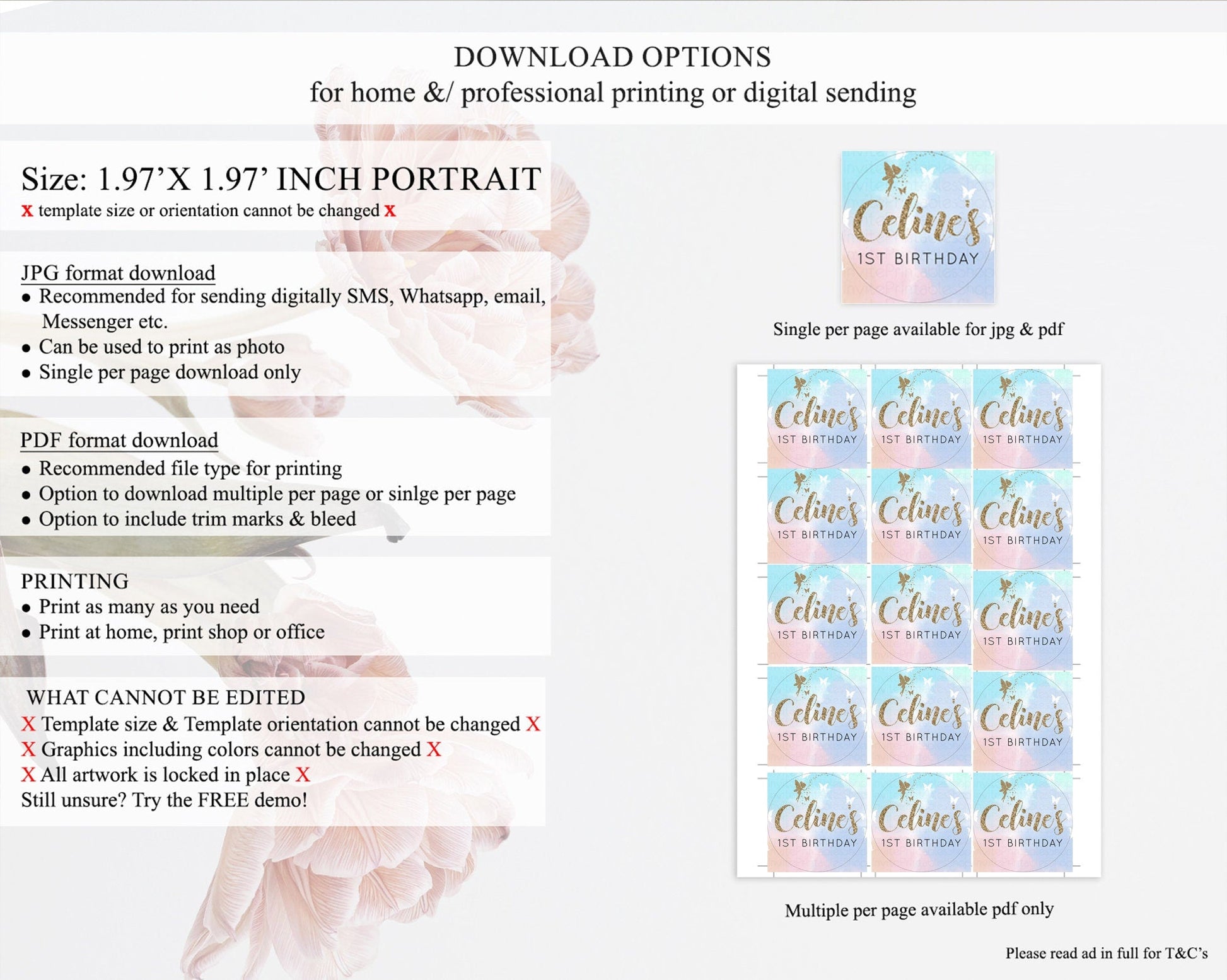 • Template size & orientation cannot be changed. Please use the demo link to confirm this product suits your needs.