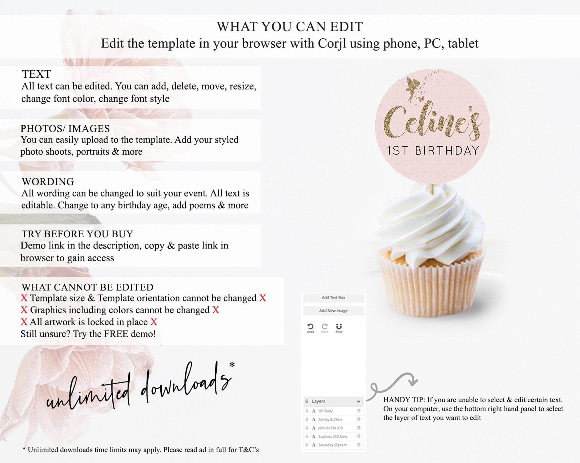 Fairy Cupcake Toppers Pastel Fairy Cupcake Toppers Fairy Floral Garden Cupcake Topper Enchanted Garden Floral Butterfly Party Decor D10899