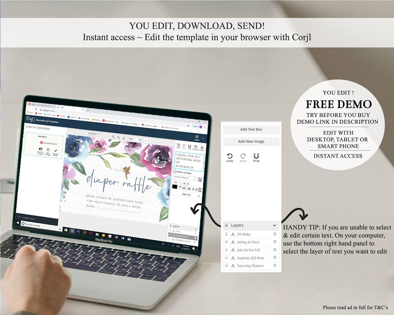 • After purchase, Corjl emails your editing link. Allow up to 15 minutes for delivery.