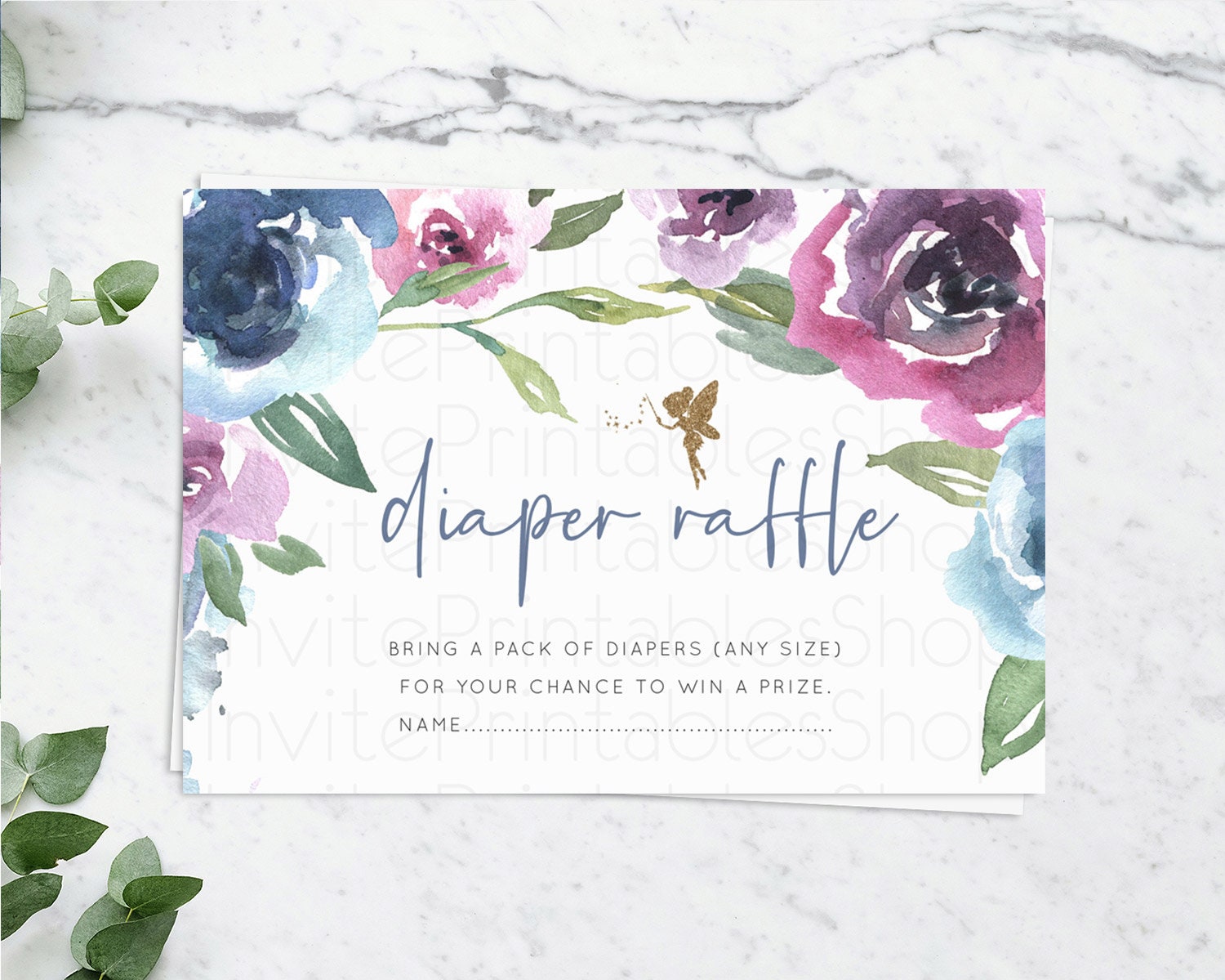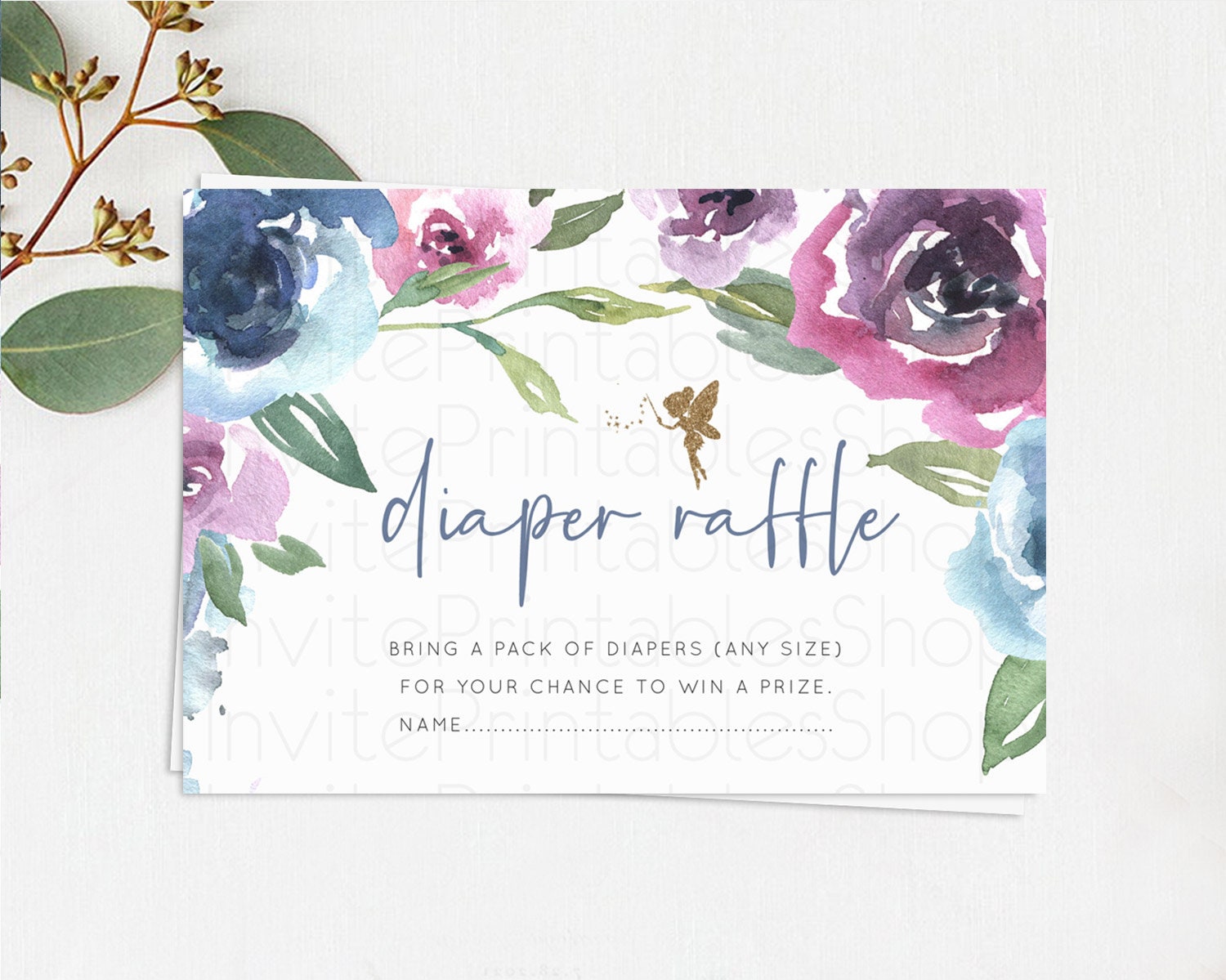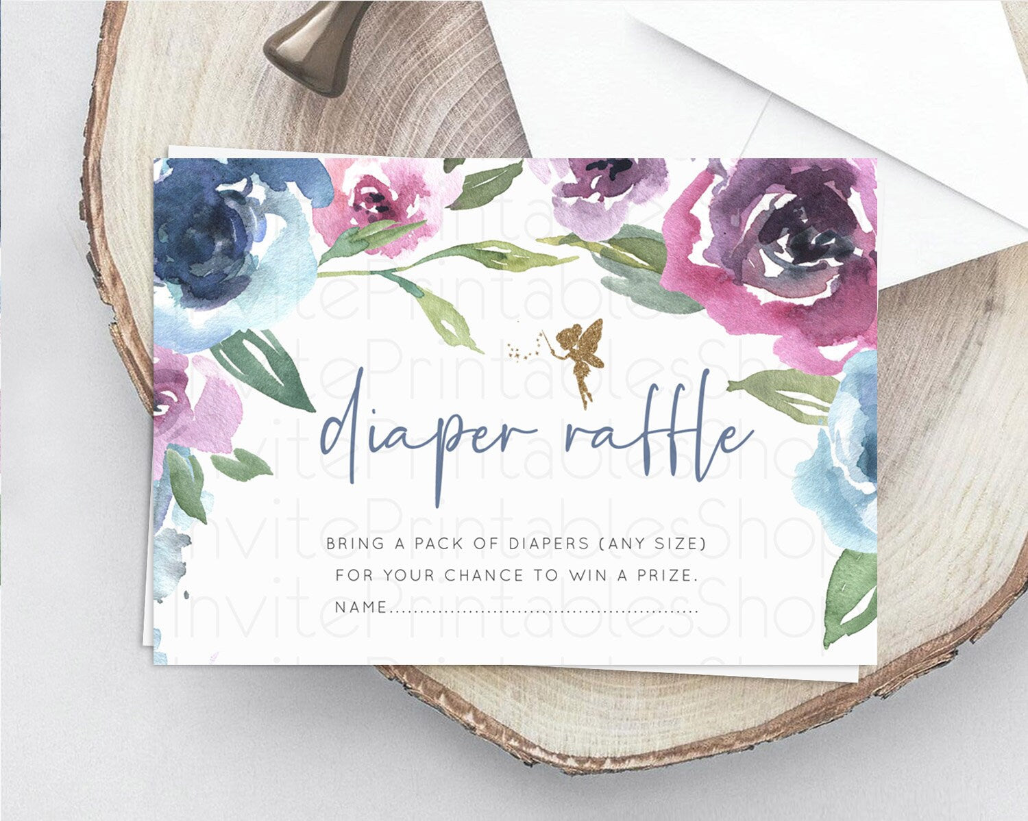 Fairy Diaper Raffle Card Fairy Diaper Insert Enchanted Garden Fairy Diaper Ticket Pastel Floral Butterfly Secret Garden Raffle Game D10188
