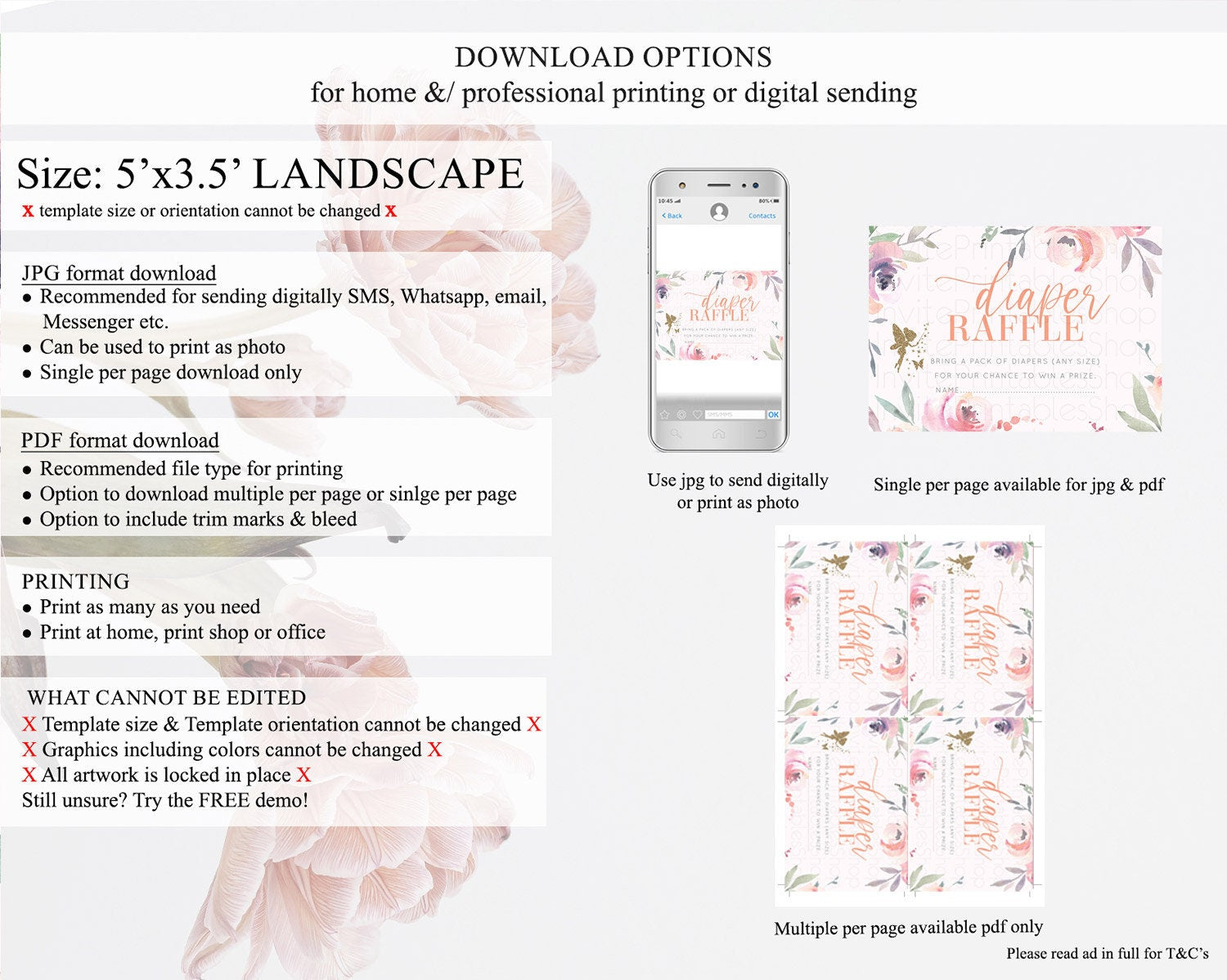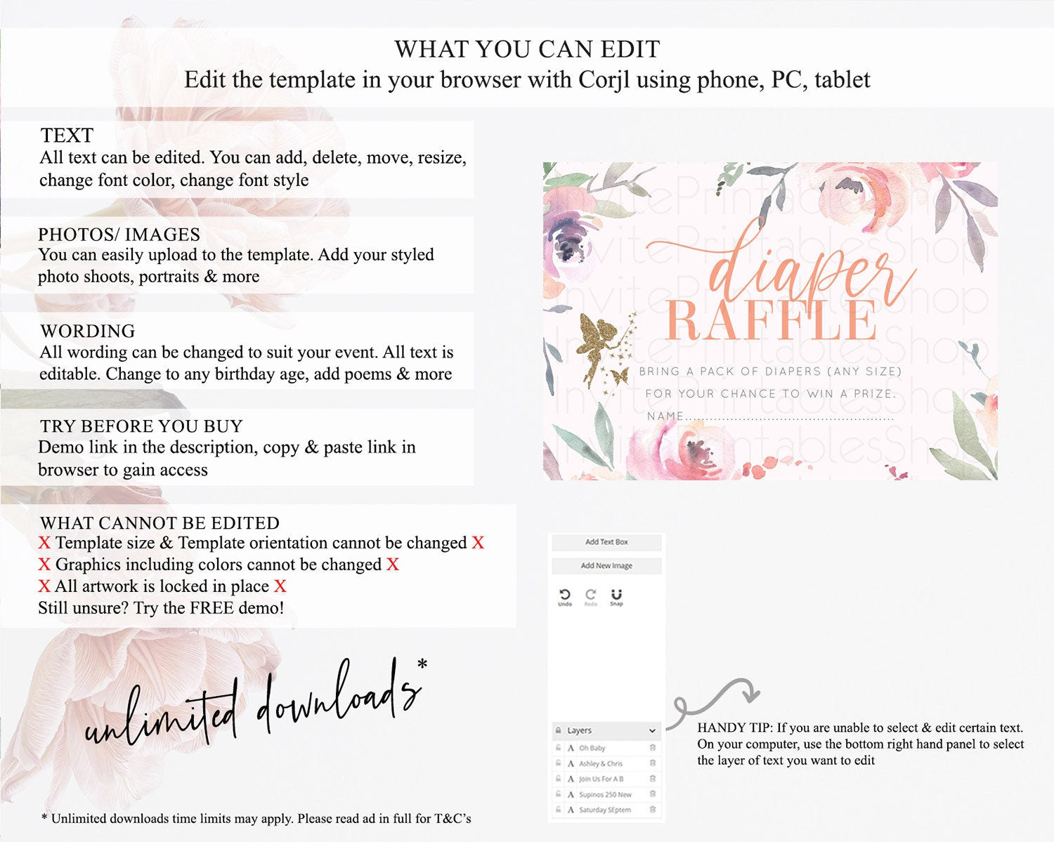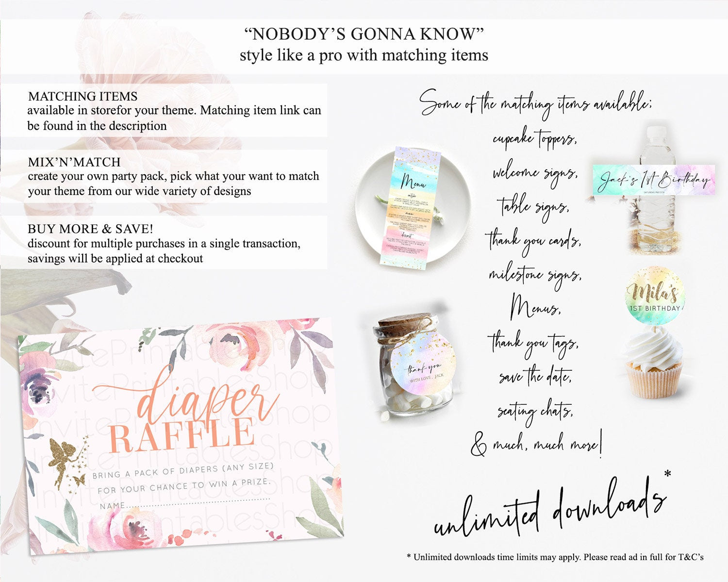 Fairy Diaper Raffle Card Fairy Diaper Insert Enchanted Garden Fairy Diaper Ticket Pastel Floral Butterfly Secret Garden Raffle Game D10197