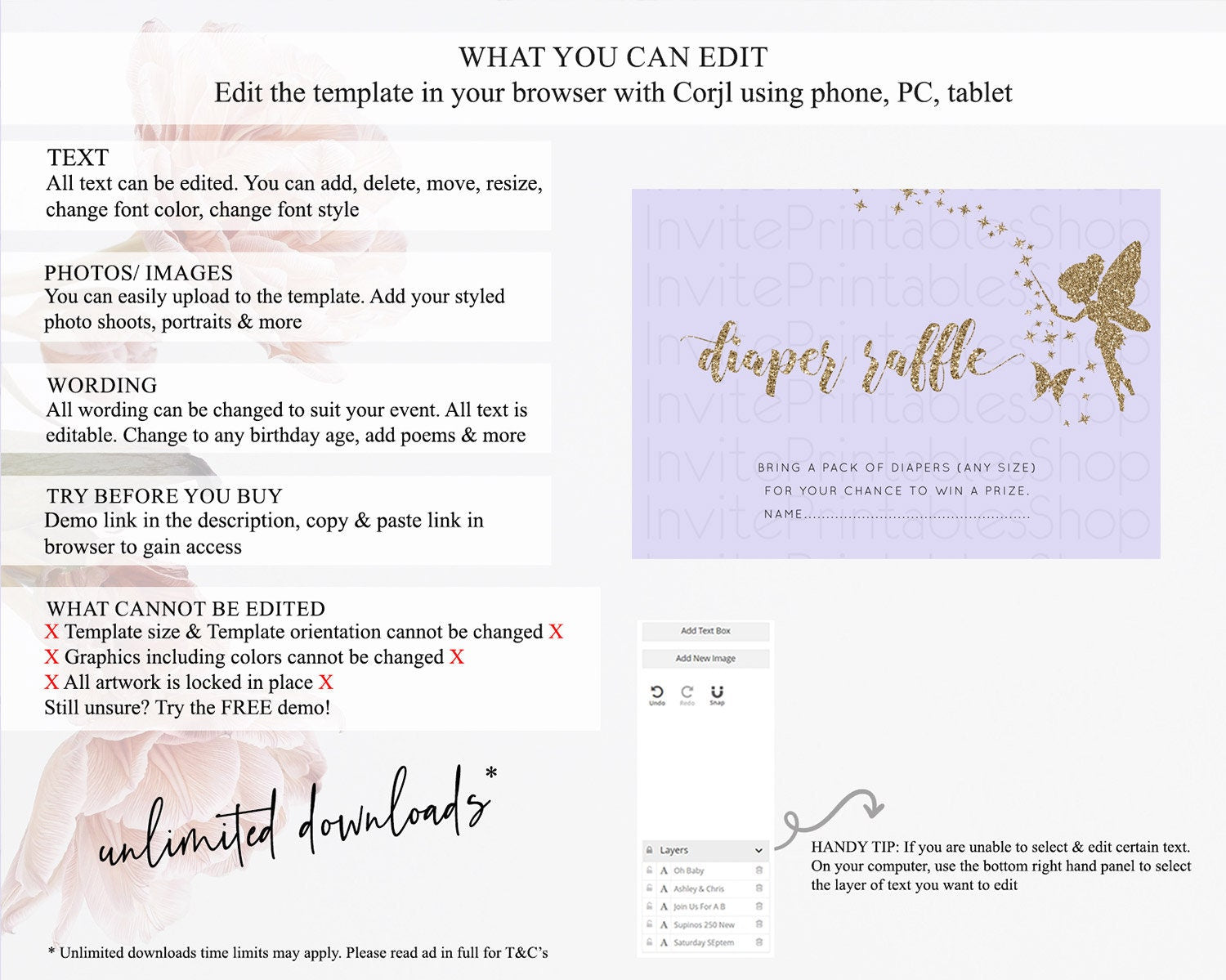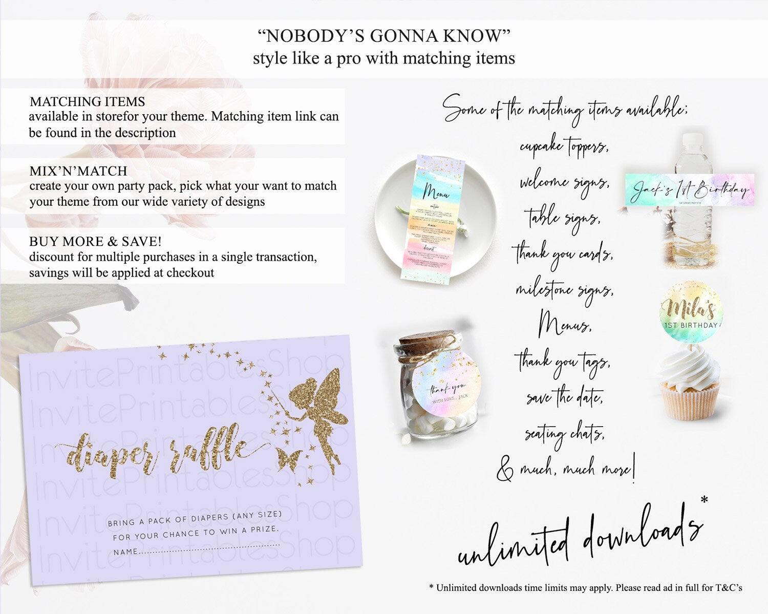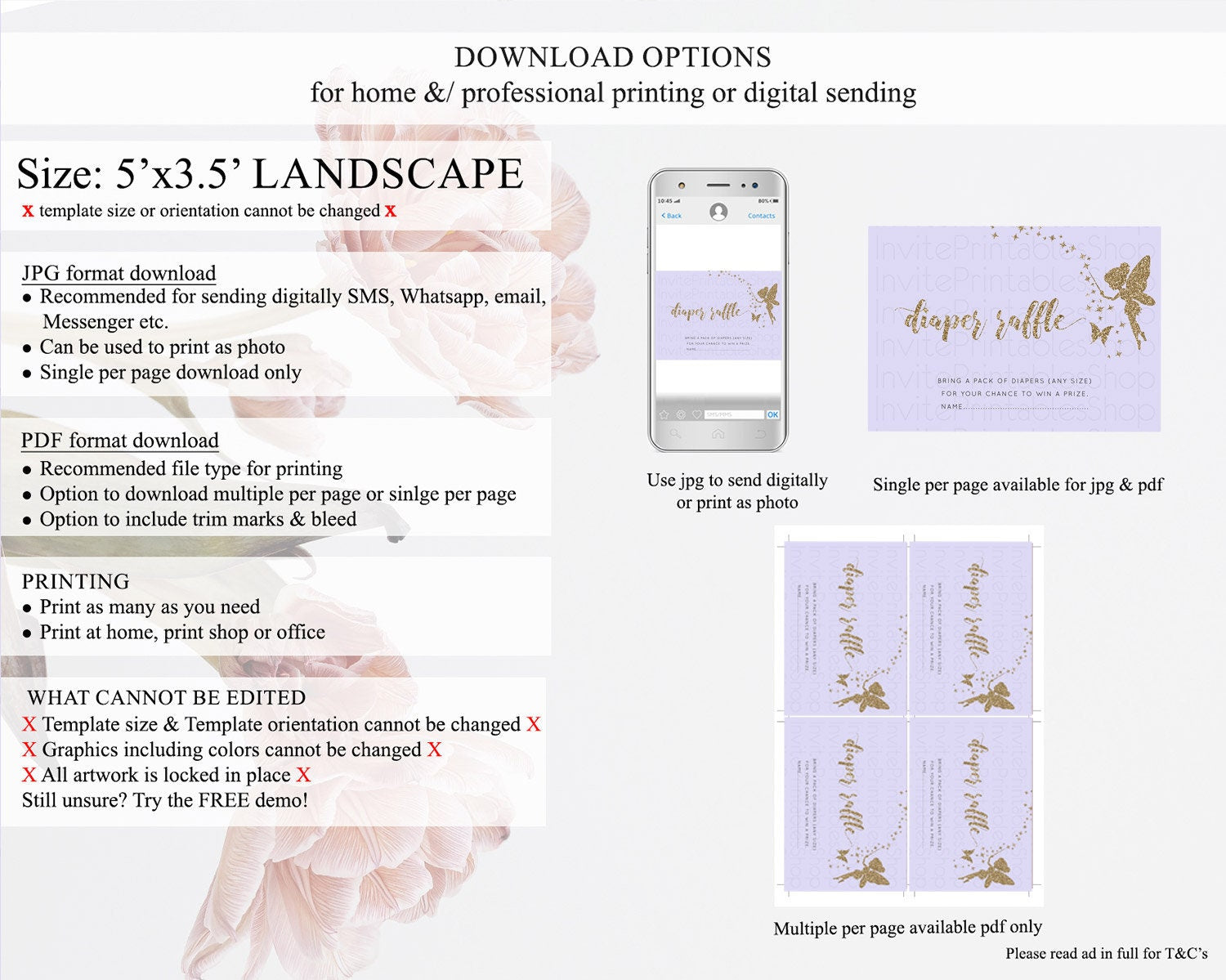 Fairy Diaper Raffle Card Fairy Diaper Insert Enchanted Garden Fairy Diaper Ticket Pastel Floral Butterfly Secret Garden Raffle Game D10389