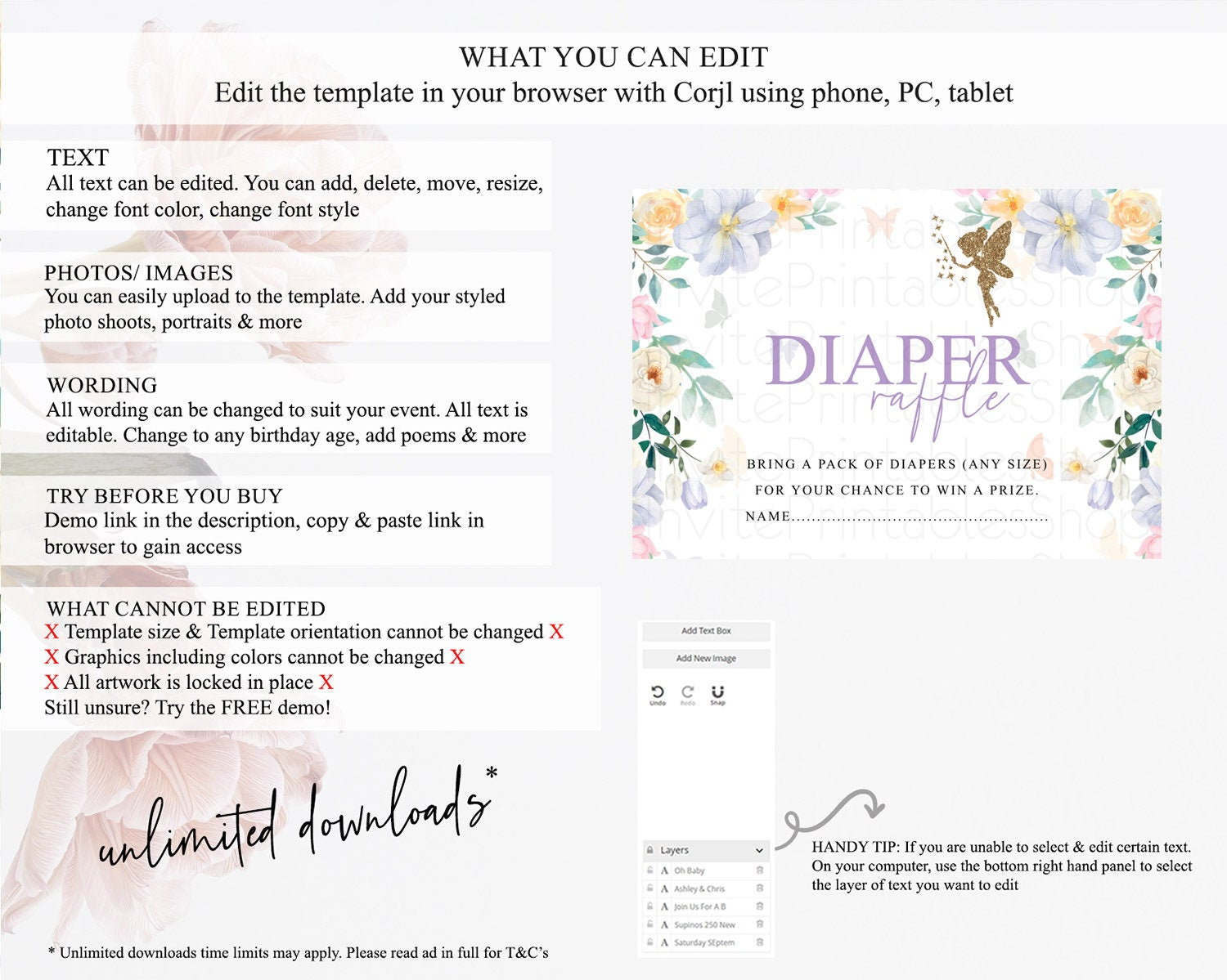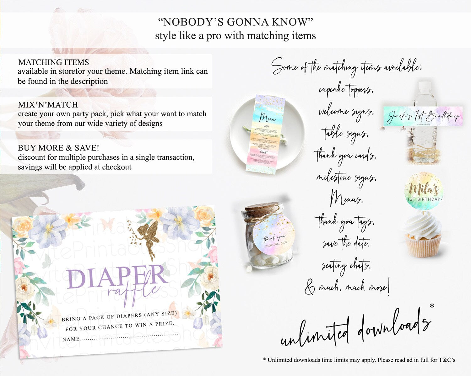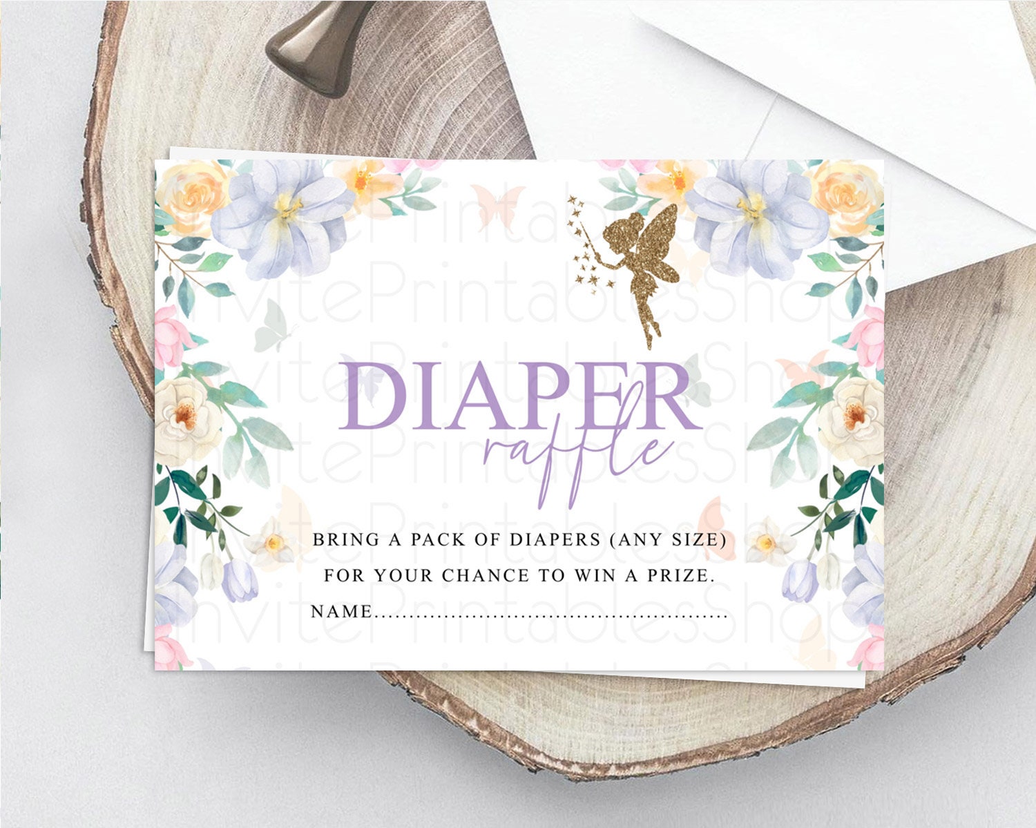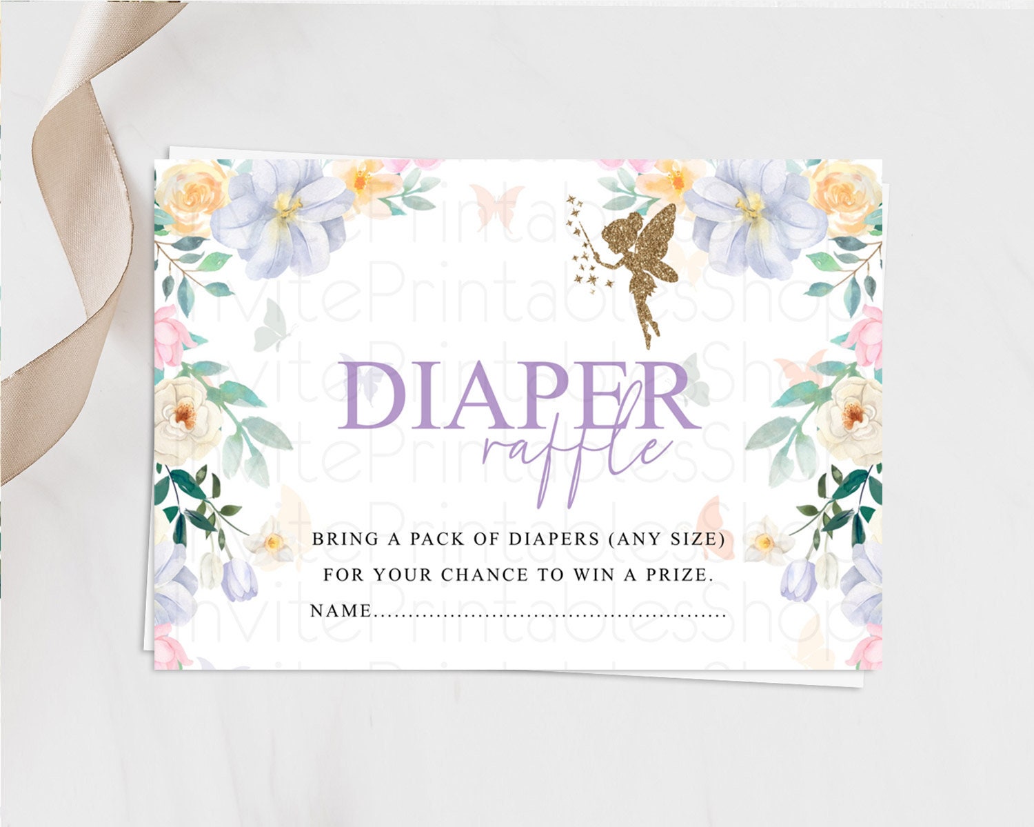 Fairy Diaper Raffle Card Fairy Diaper Insert Enchanted Garden Fairy Diaper Ticket Pastel Floral Butterfly Secret Garden Raffle Game D10474