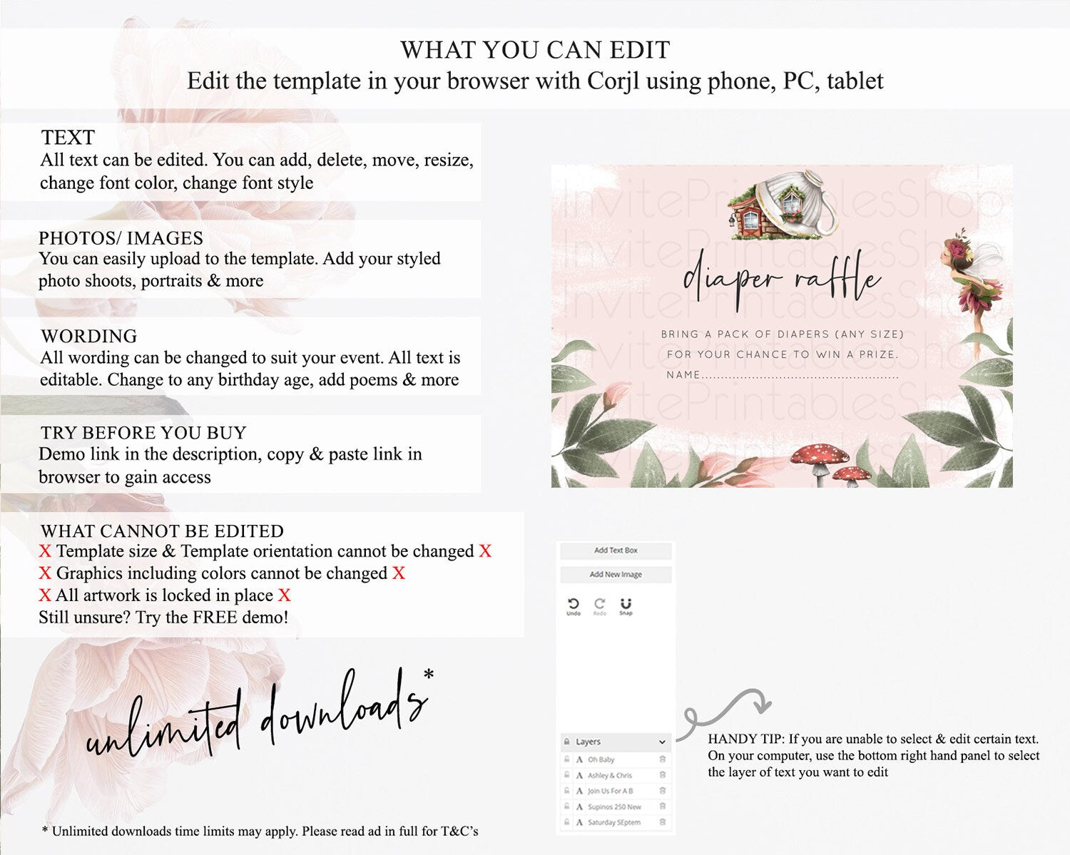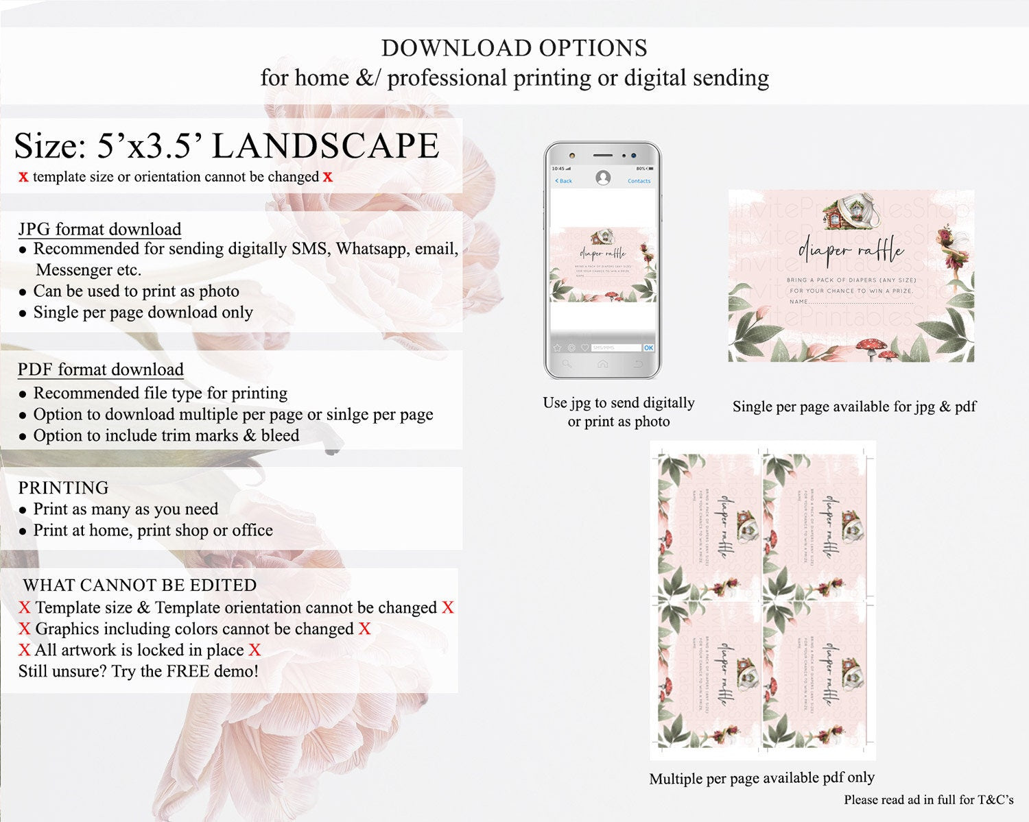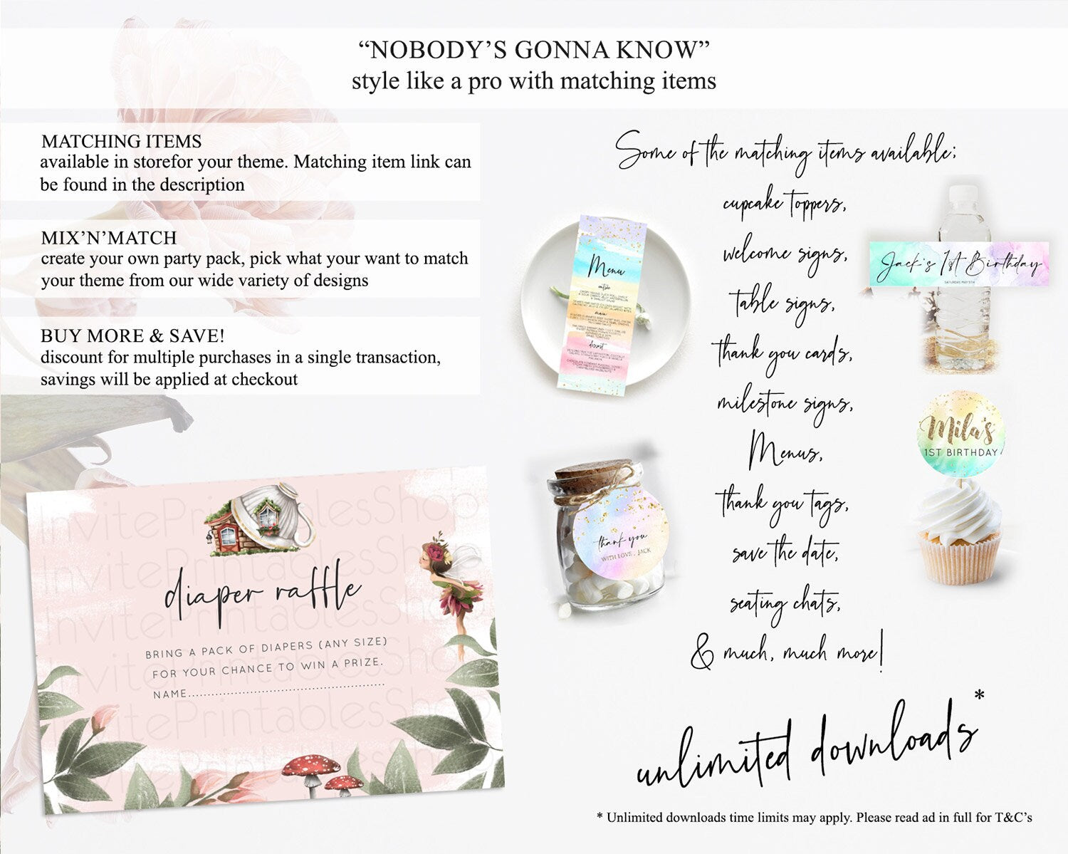 Fairy Diaper Raffle Card Fairy Diaper Insert Enchanted Garden Fairy Diaper Ticket Pastel Floral Butterfly Secret Garden Raffle Game D10563