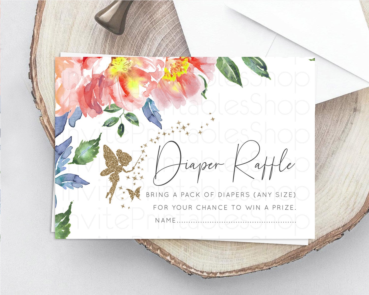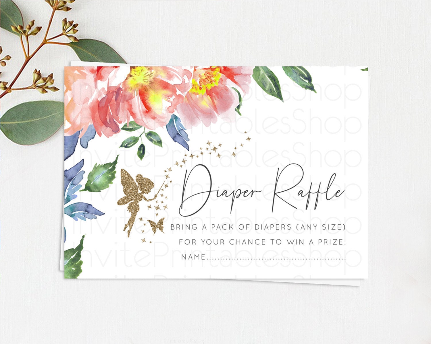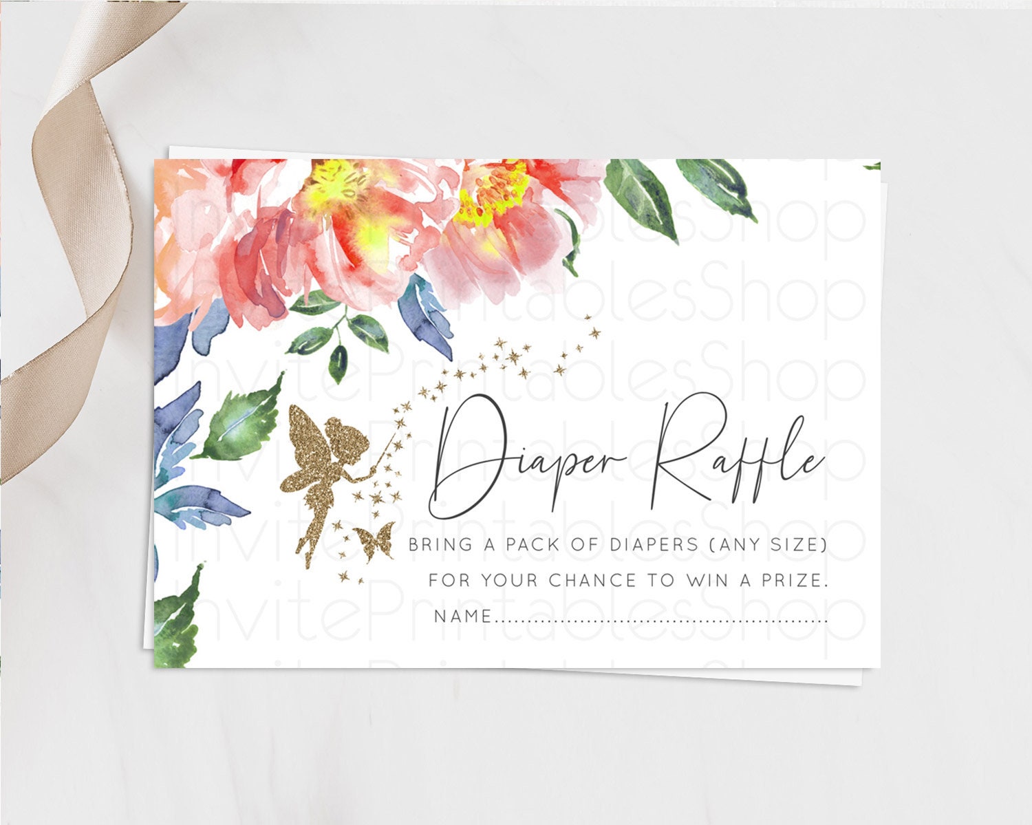 Fairy Diaper Raffle Card Fairy Diaper Insert Enchanted Garden Fairy Diaper Ticket Pastel Floral Butterfly Secret Garden Raffle Game D10752