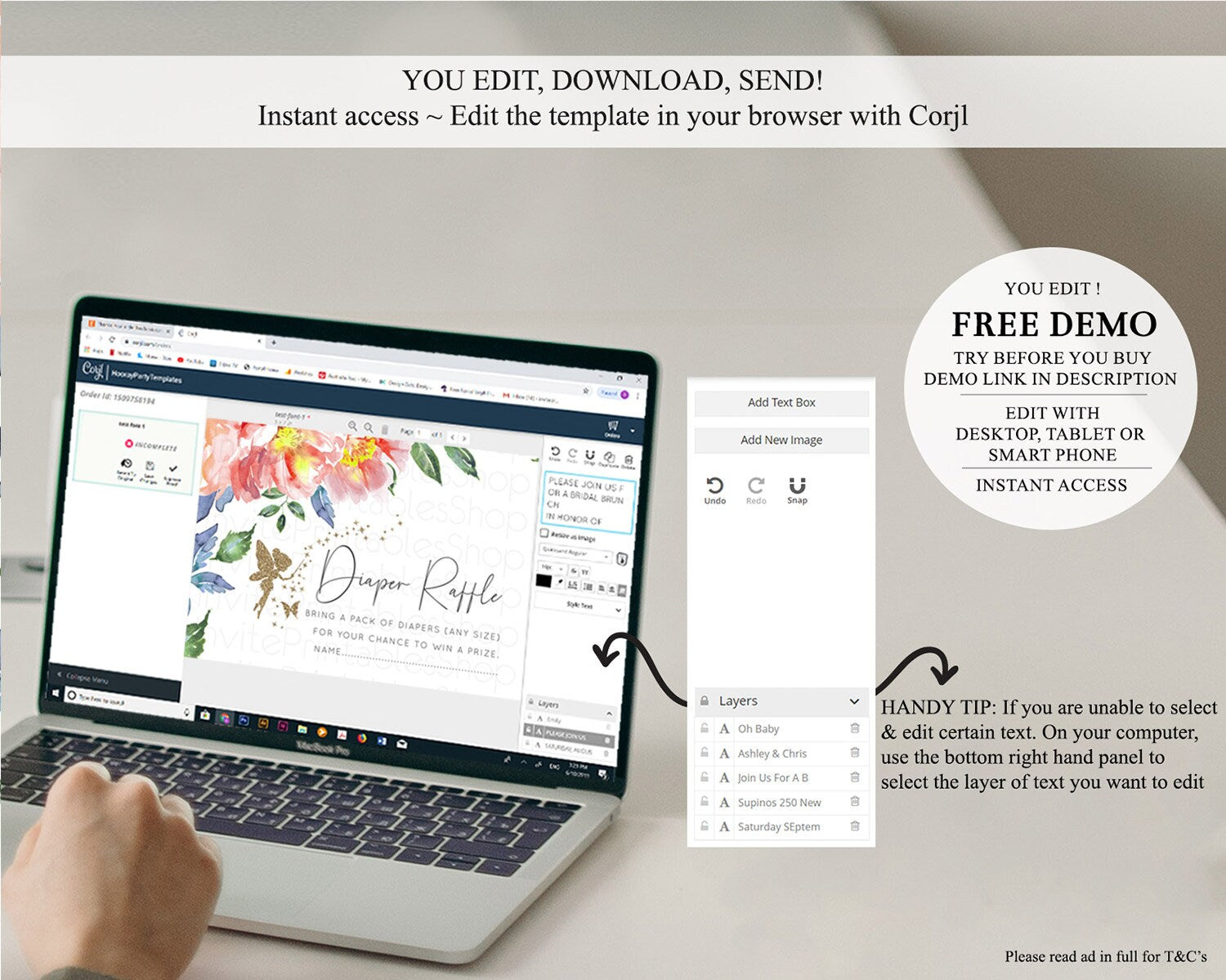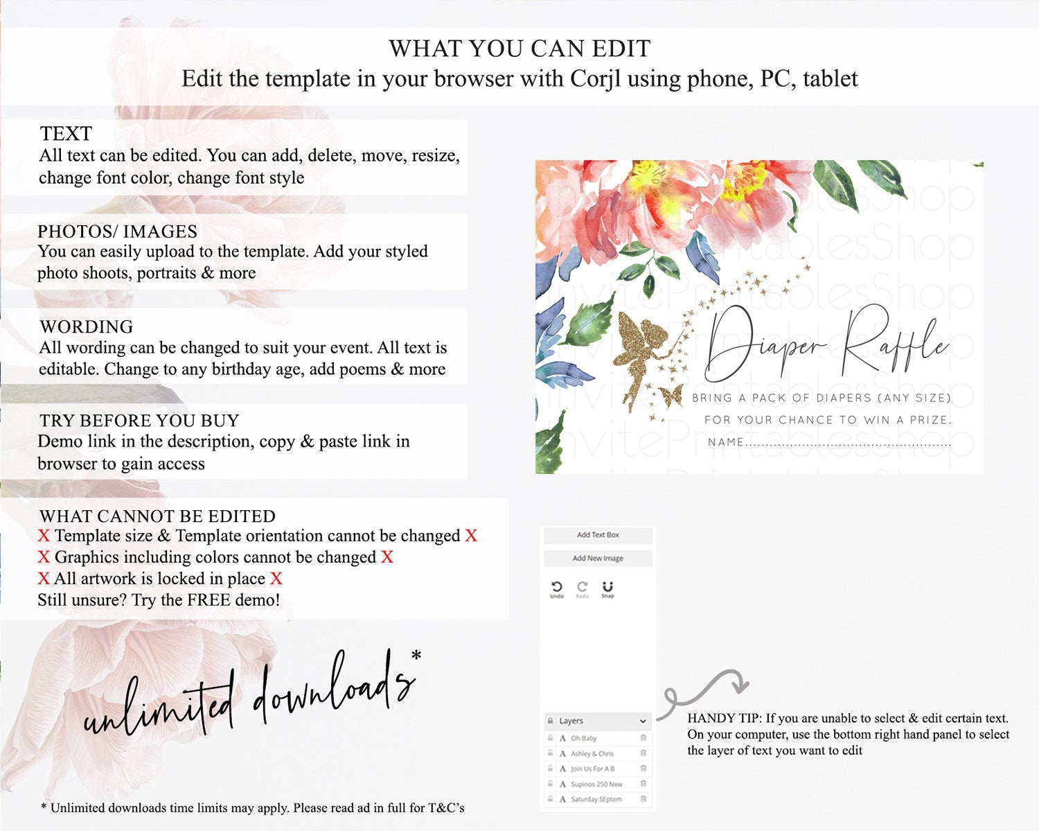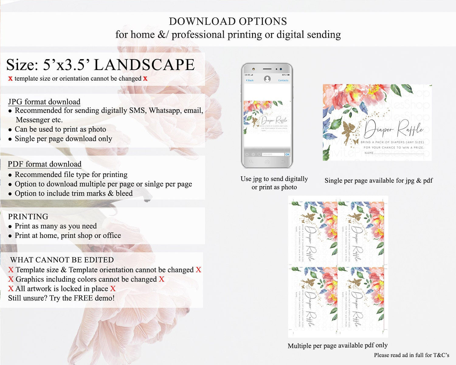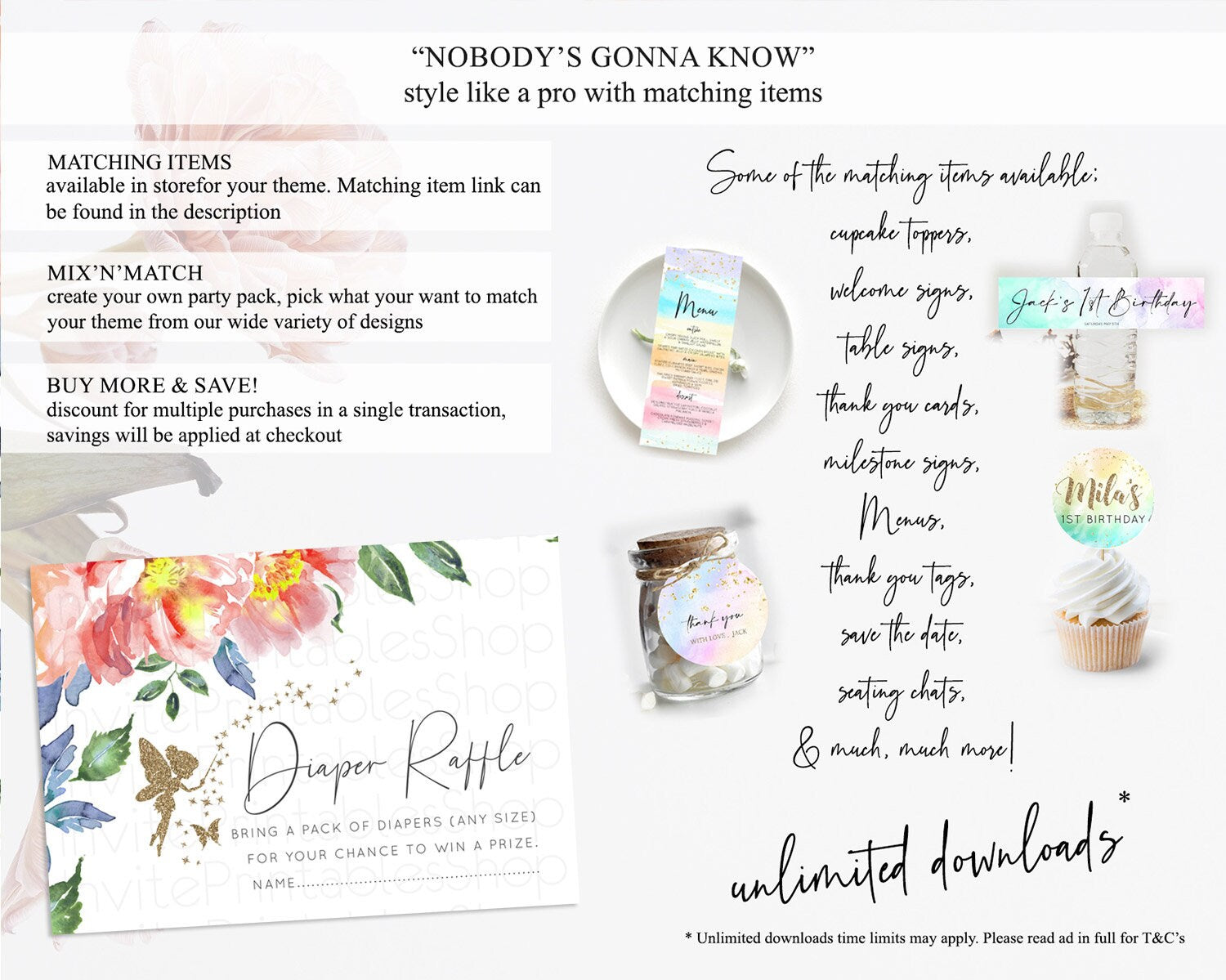 Fairy Diaper Raffle Card Fairy Diaper Insert Enchanted Garden Fairy Diaper Ticket Pastel Floral Butterfly Secret Garden Raffle Game D10752