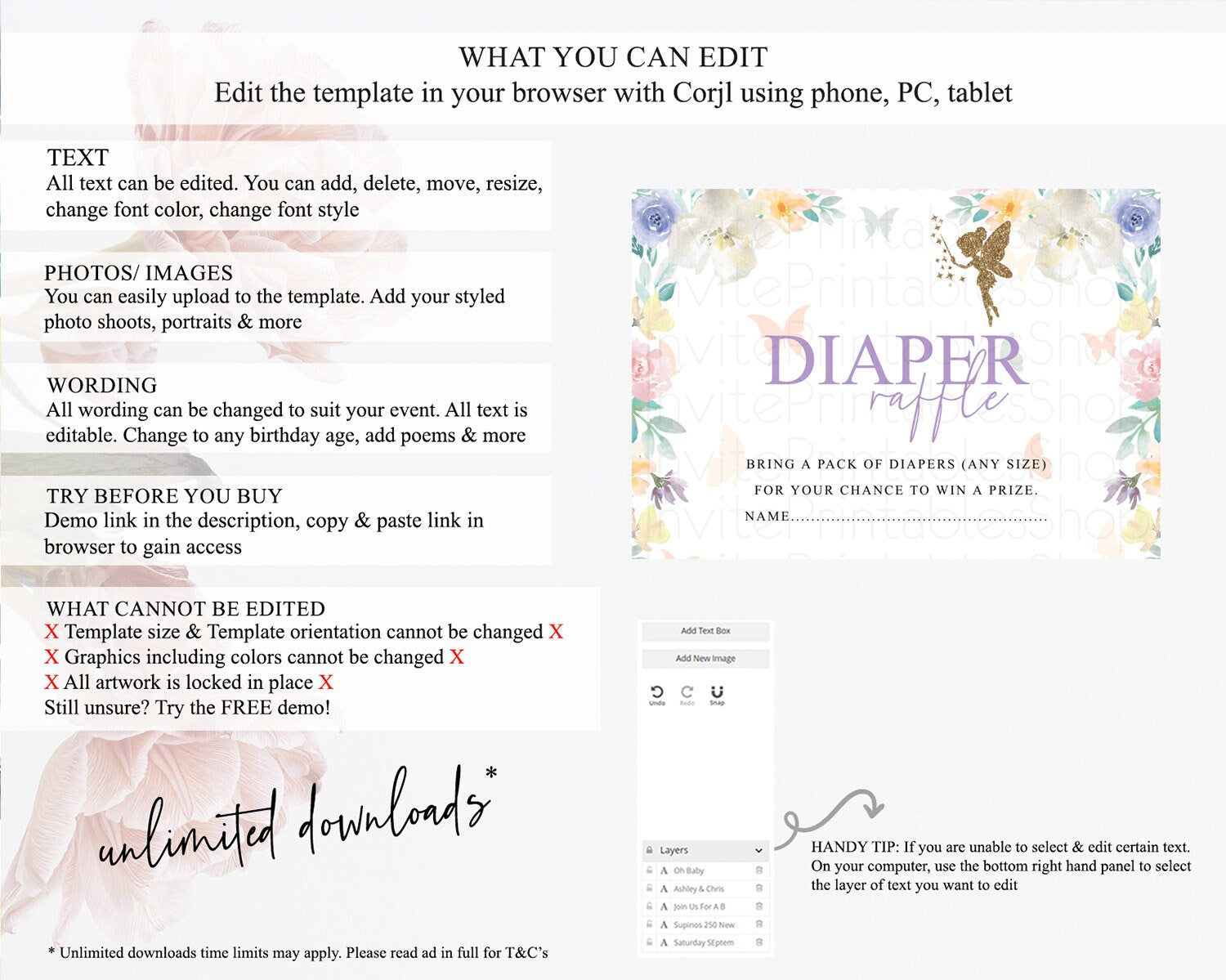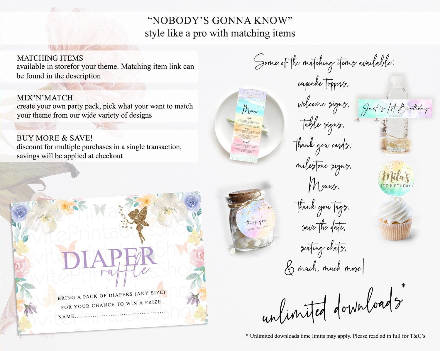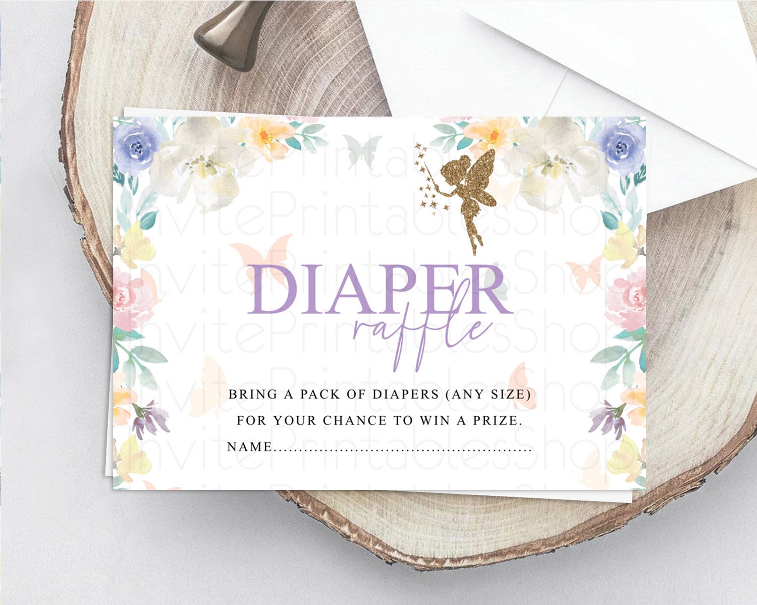 Fairy Diaper Raffle Card Fairy Diaper Insert Enchanted Garden Fairy Diaper Ticket Pastel Floral Butterfly Secret Garden Raffle Game D10761