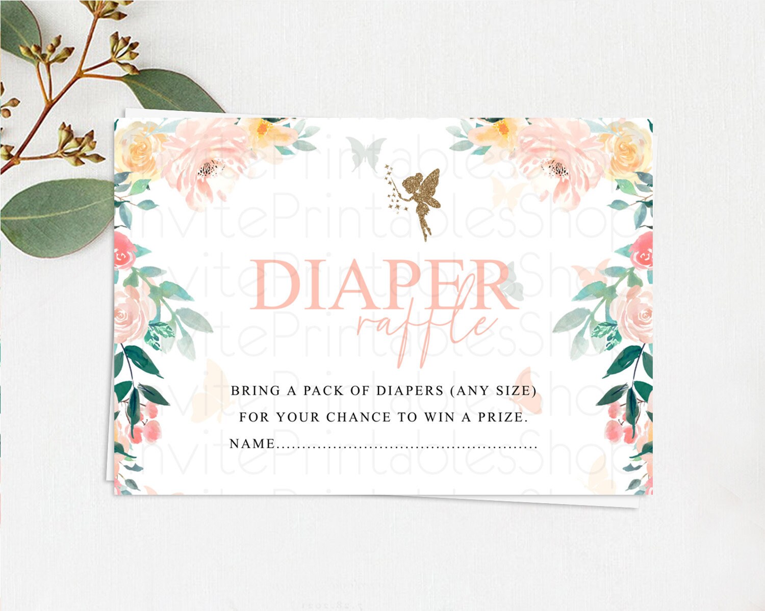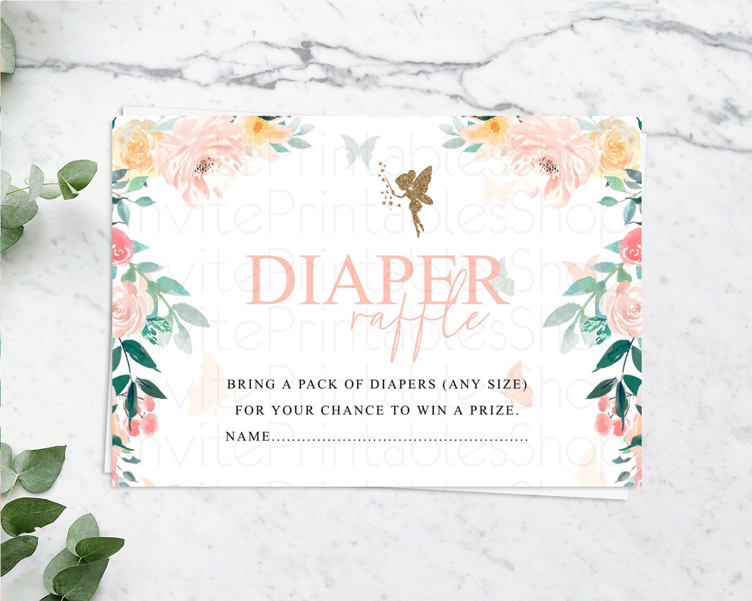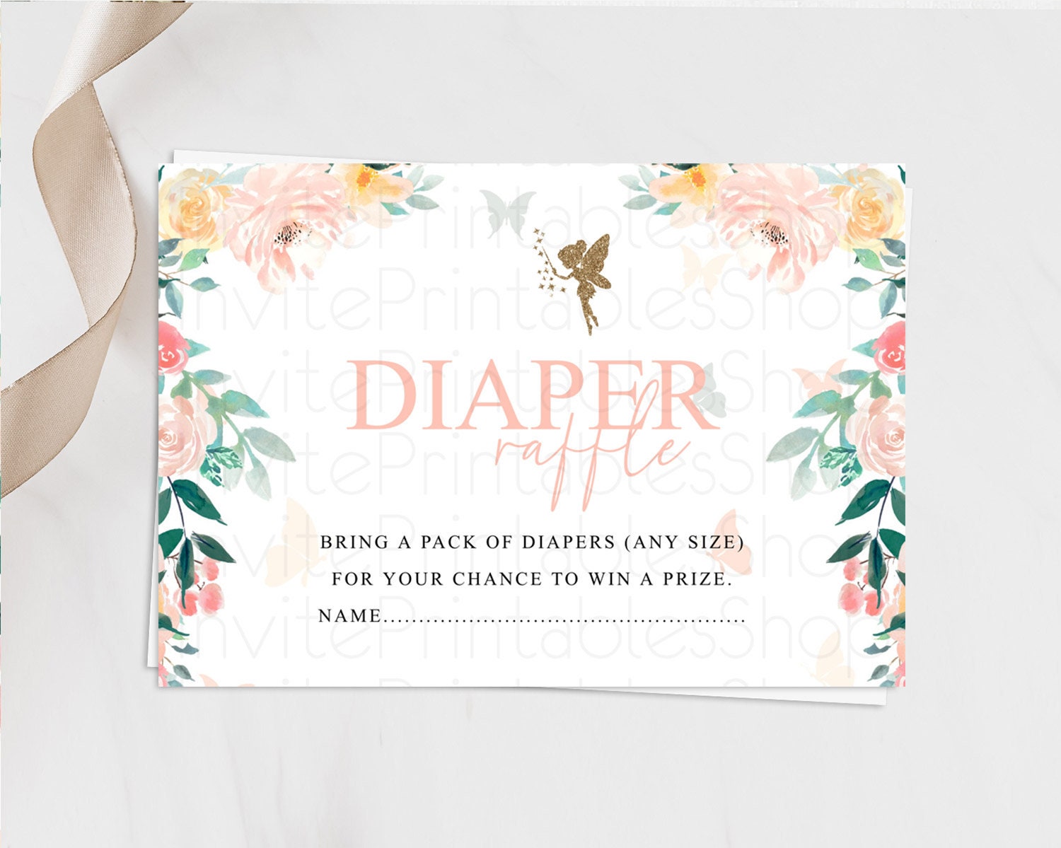 Fairy Diaper Raffle Card Fairy Diaper Insert Enchanted Garden Fairy Diaper Ticket Pastel Floral Butterfly Secret Garden Raffle Game D10789