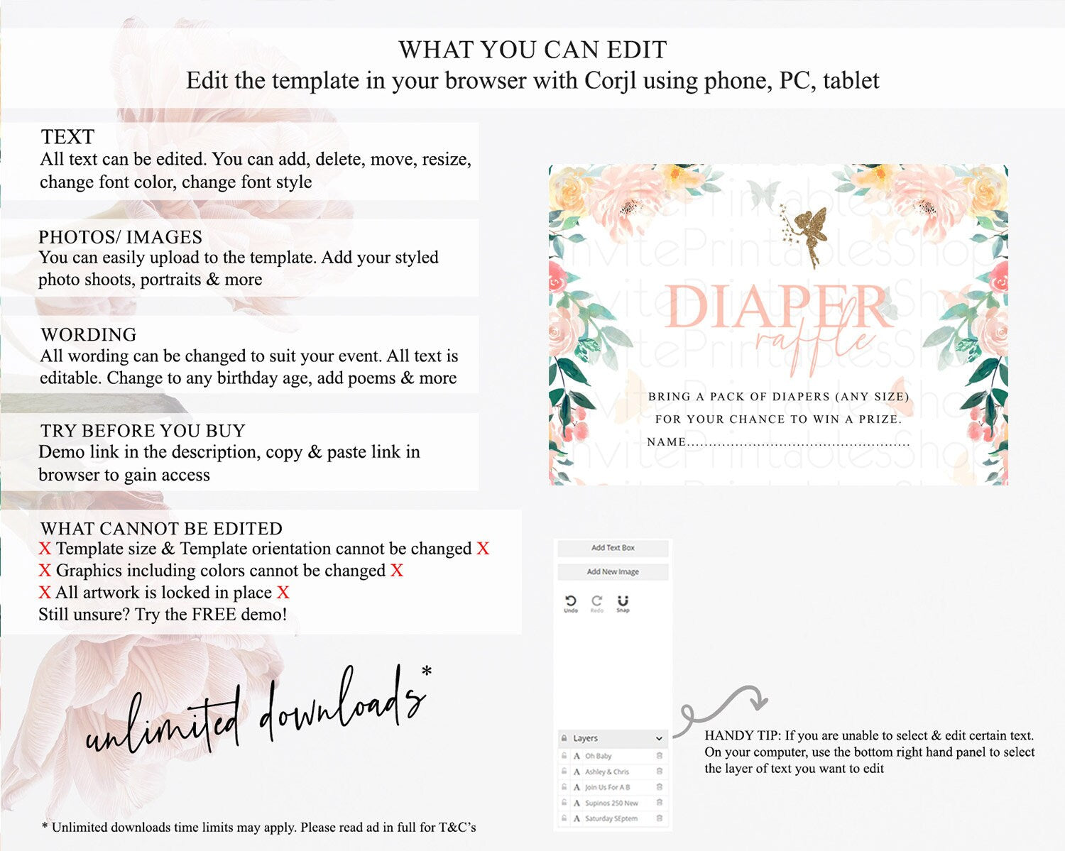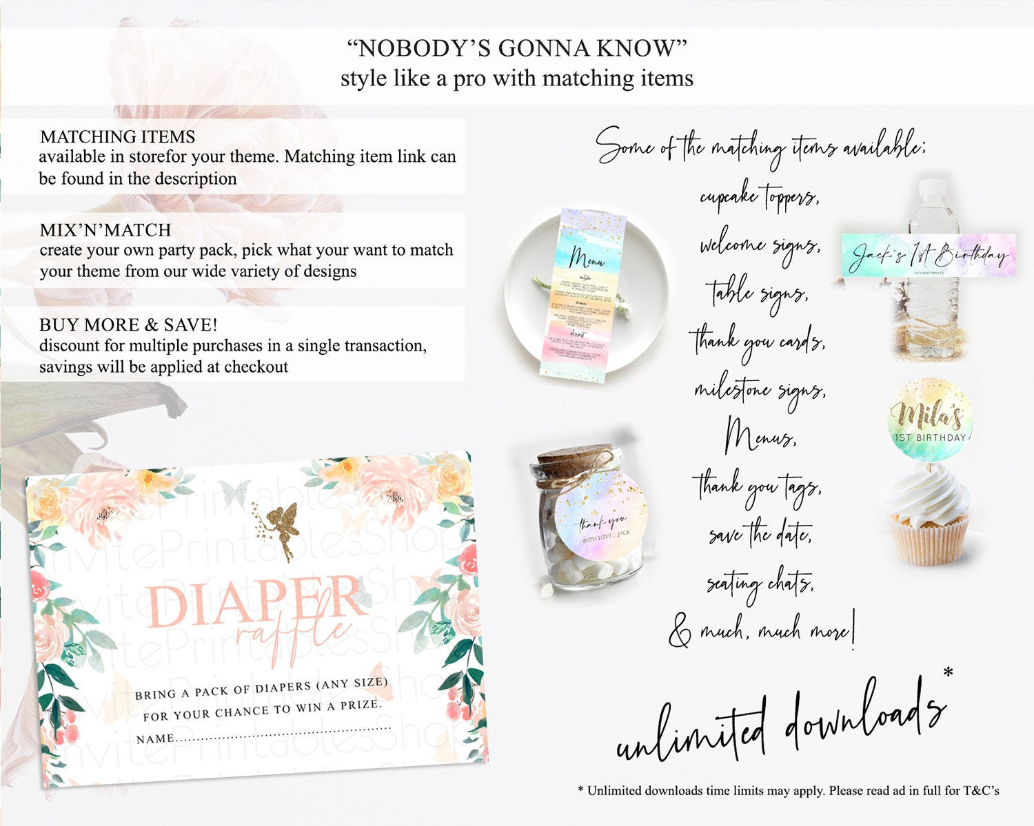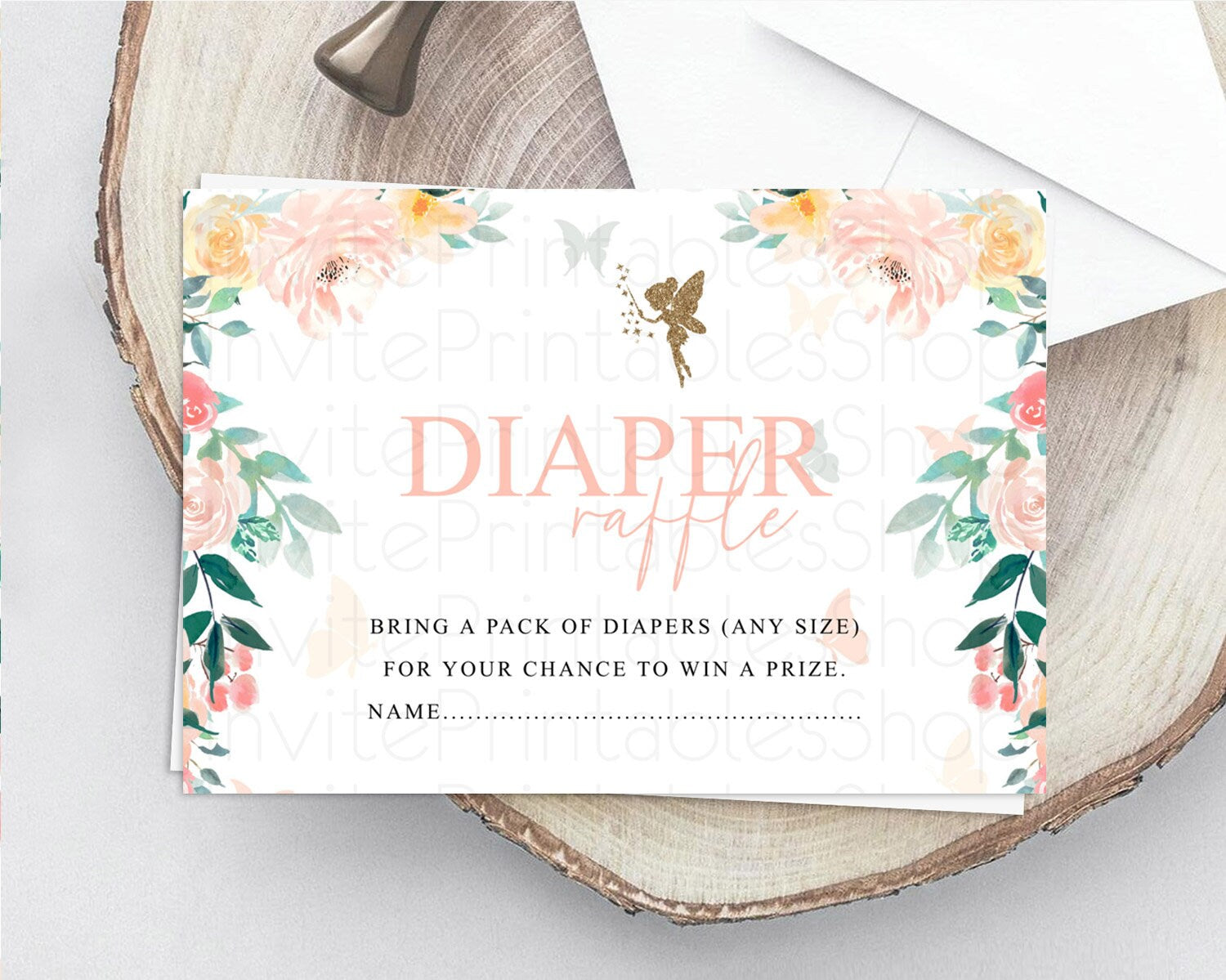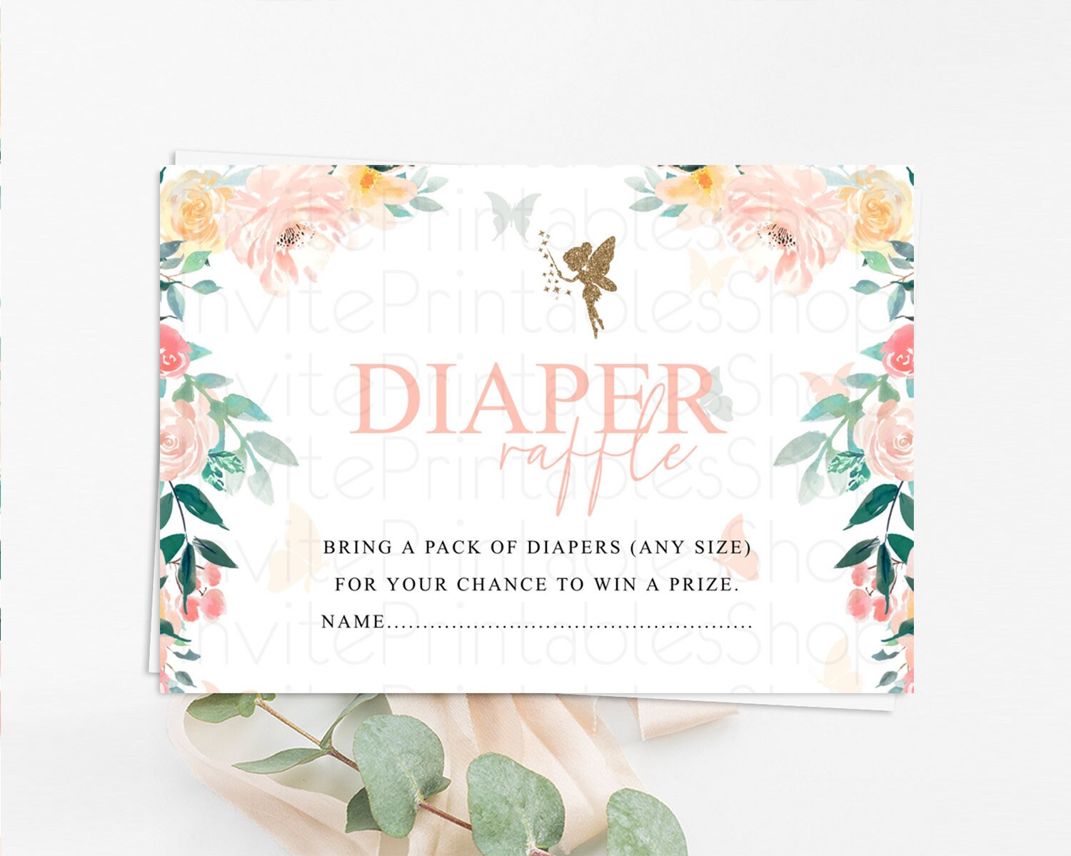 Fairy Diaper Raffle Card Fairy Diaper Insert Enchanted Garden Fairy Diaper Ticket Pastel Floral Butterfly Secret Garden Raffle Game D10789