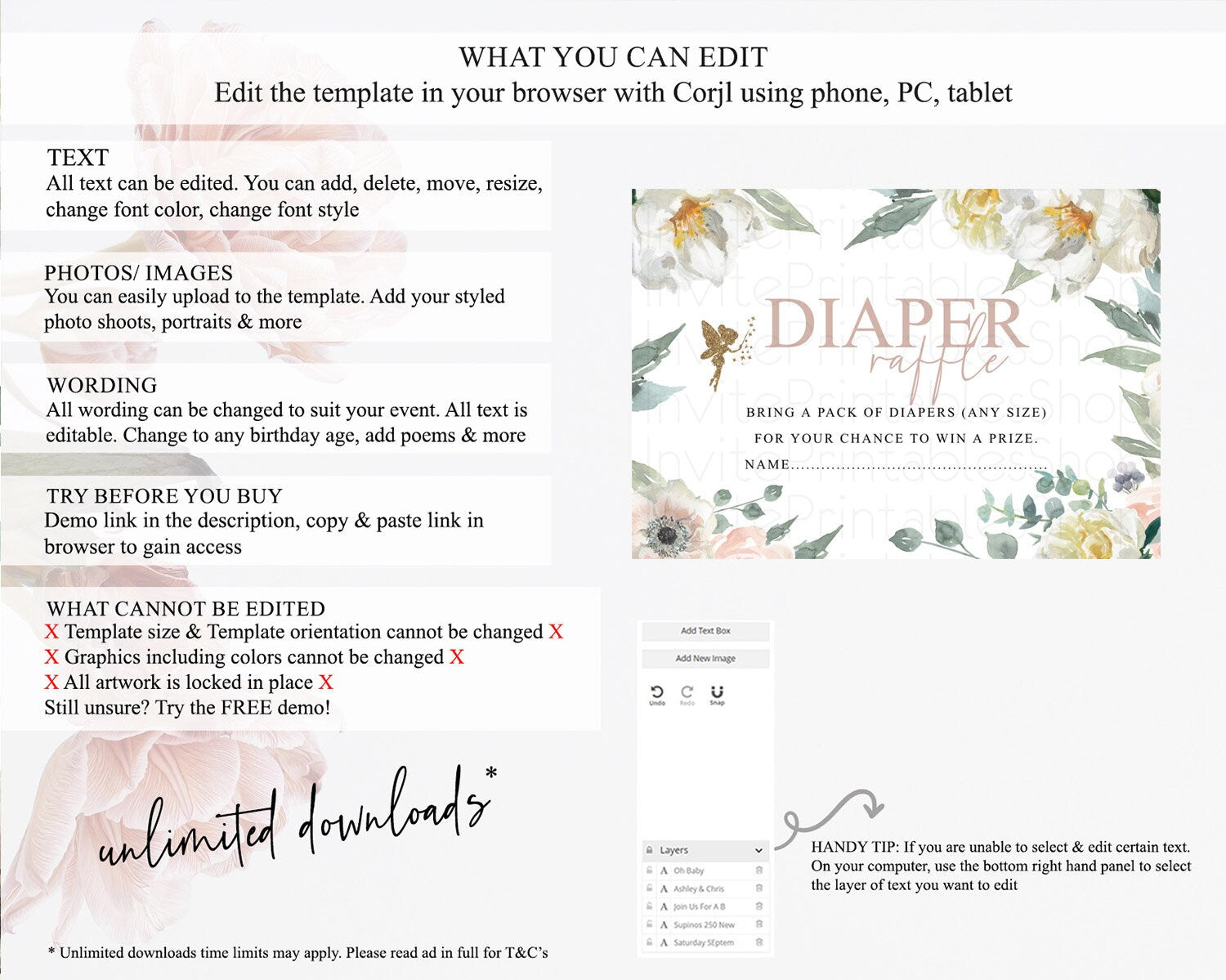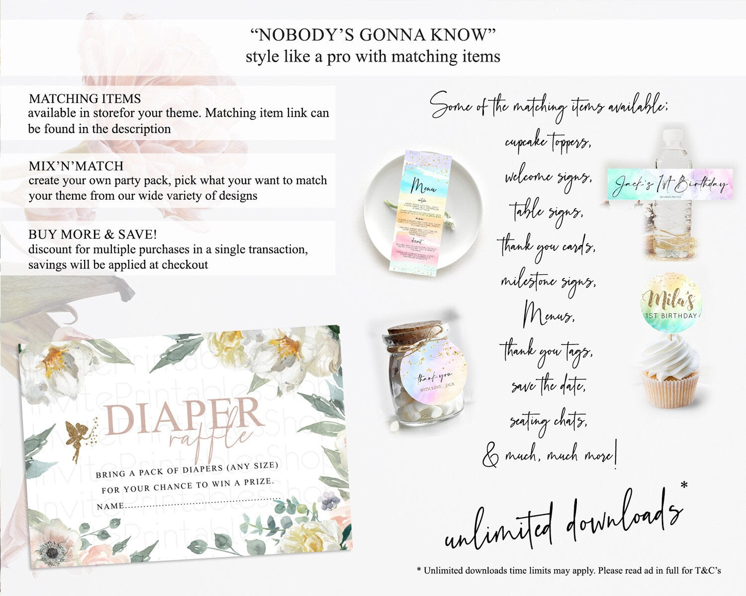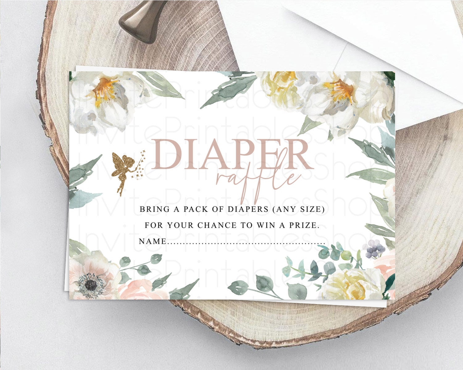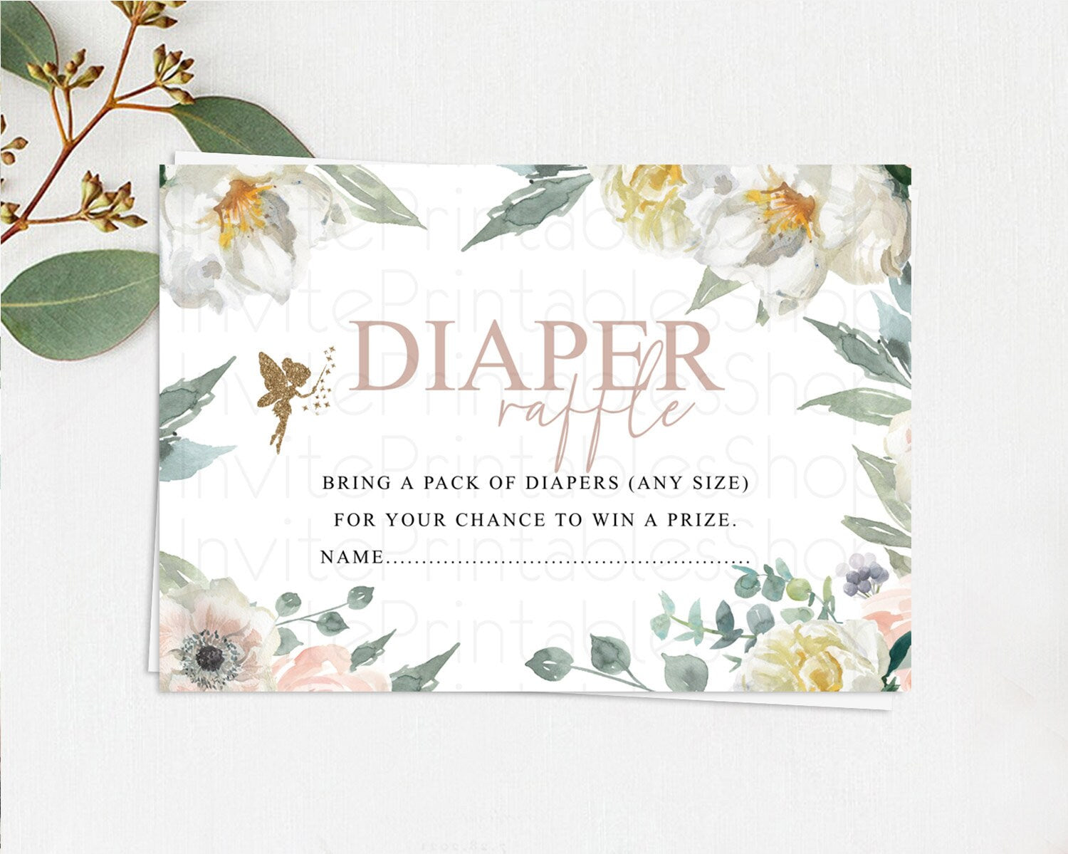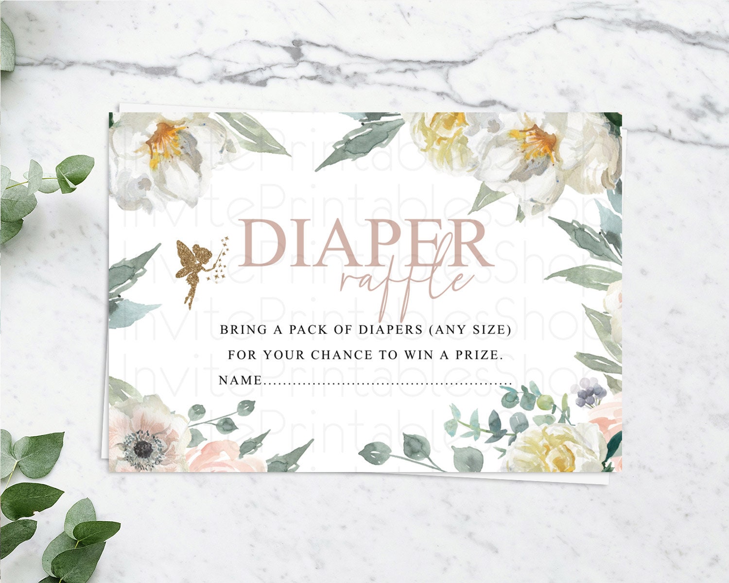 Fairy Diaper Raffle Card Fairy Diaper Insert Enchanted Garden Fairy Diaper Ticket Pastel Floral Butterfly Secret Garden Raffle Game D10800