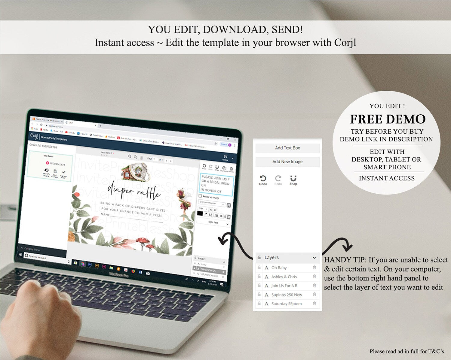 • After purchase, Corjl emails your editing link. Allow up to 15 minutes for delivery.