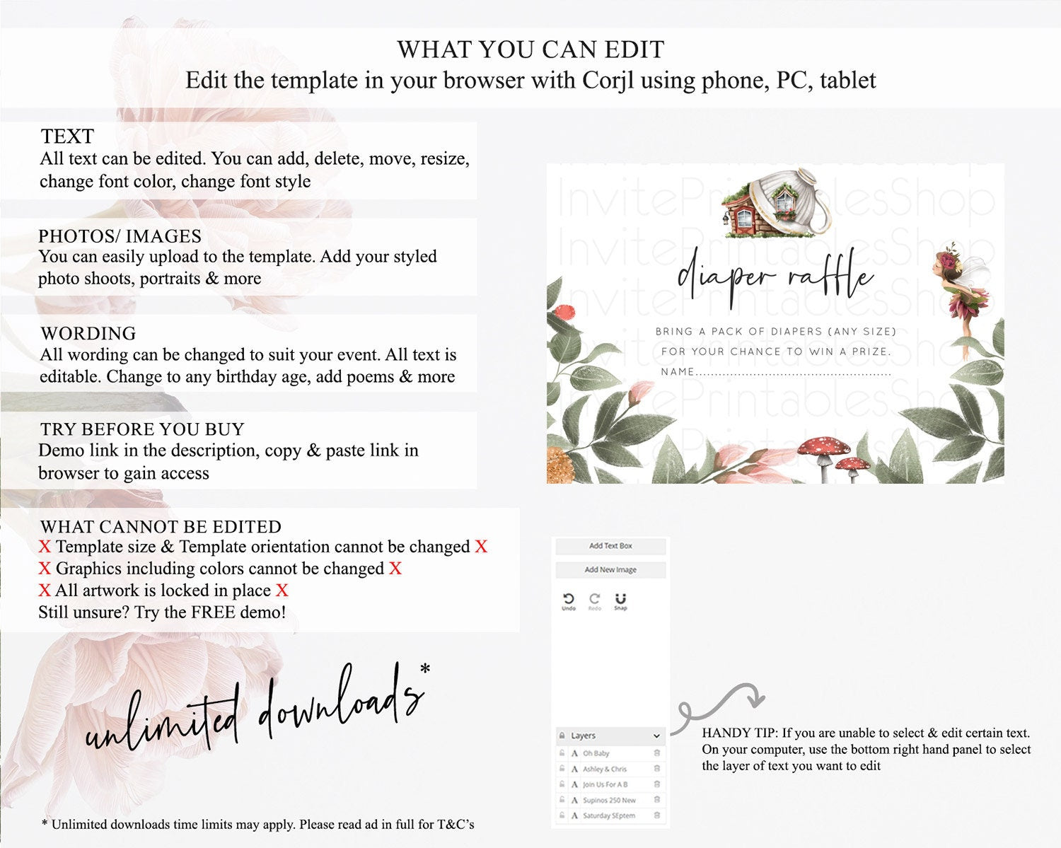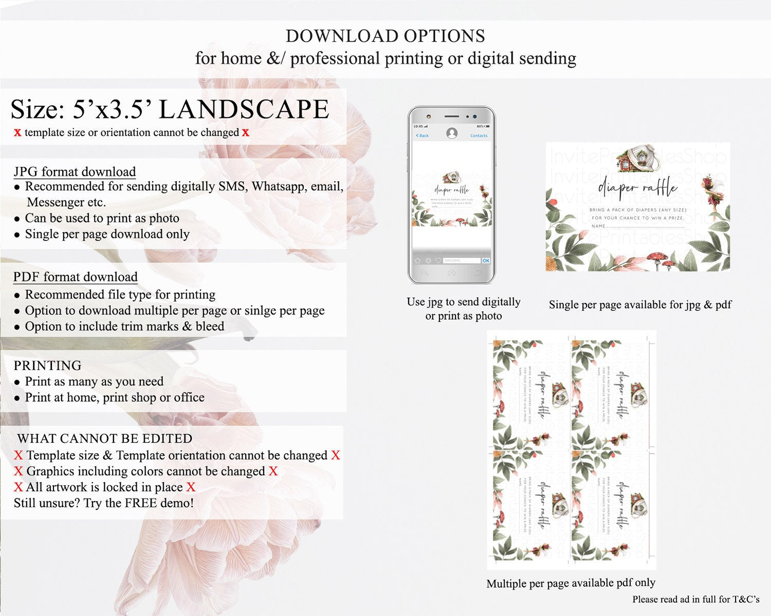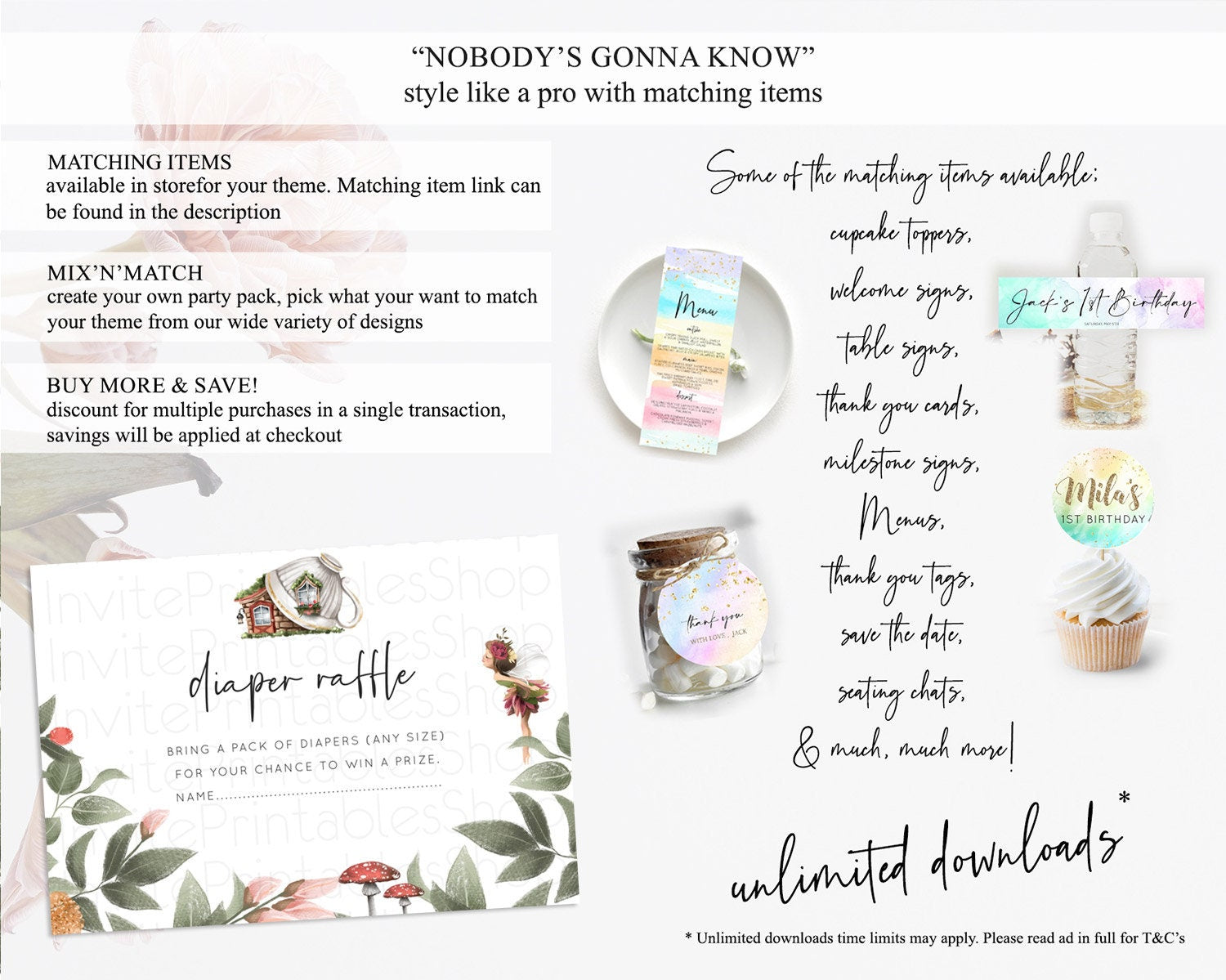 Fairy Diaper Raffle Card Fairy Diaper Insert Enchanted Garden Fairy Diaper Ticket Pastel Floral Butterfly Secret Garden Raffle Game D10851