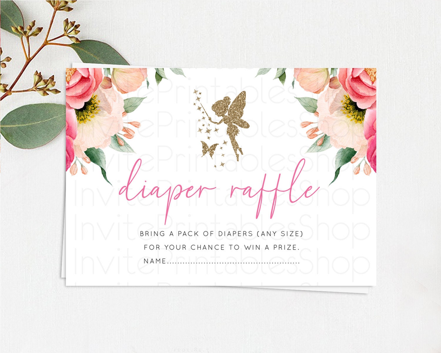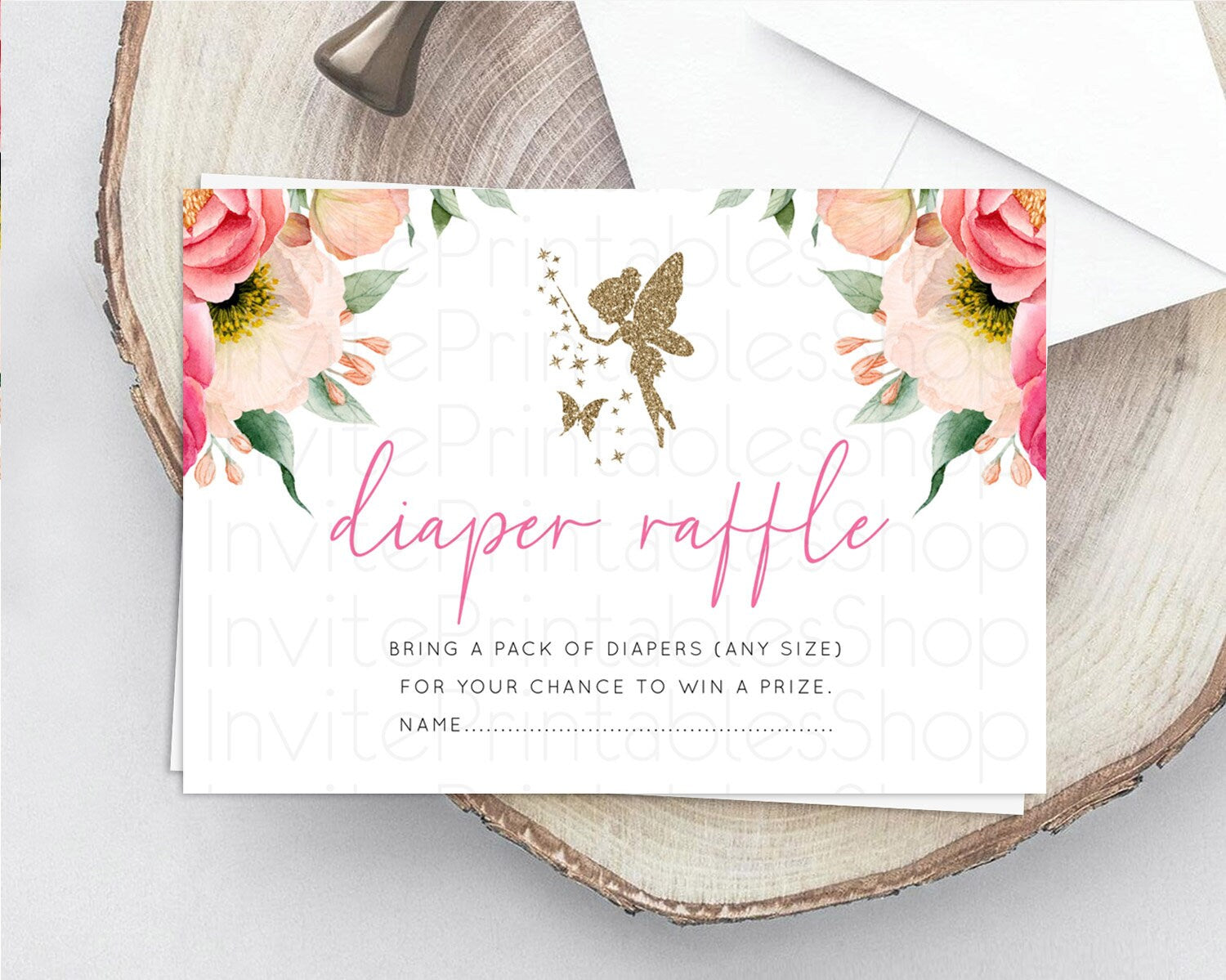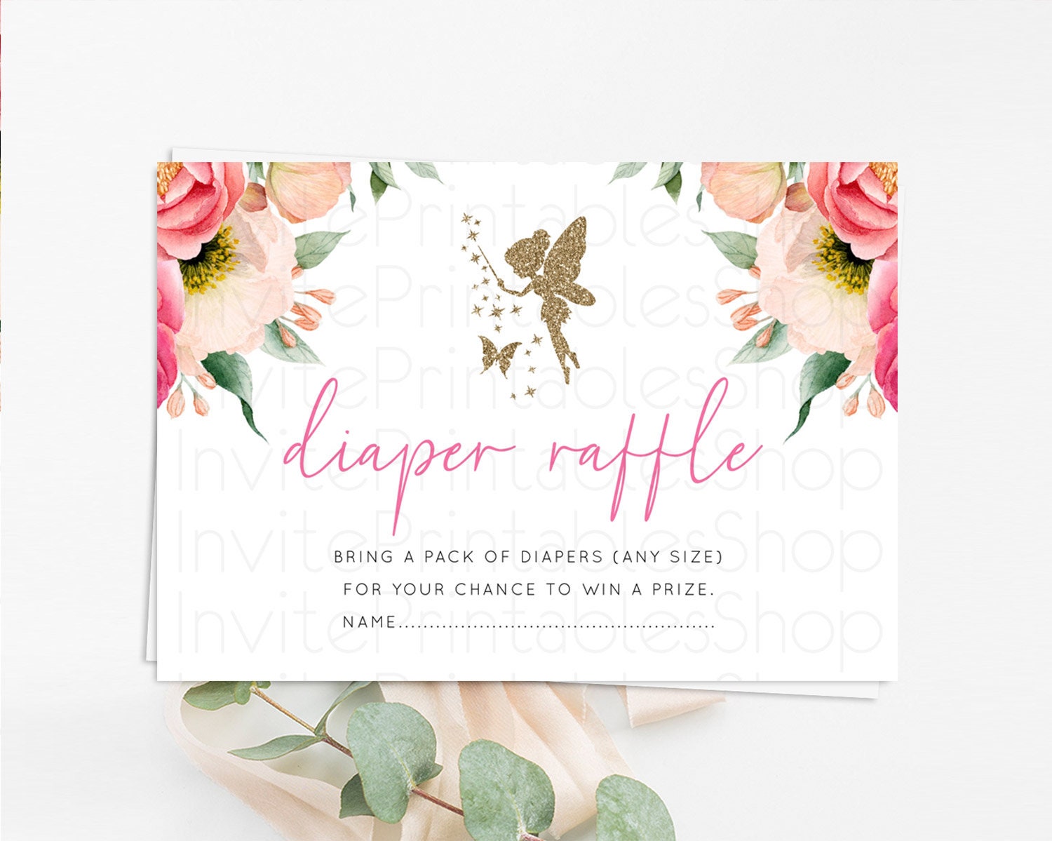 Fairy Diaper Raffle Card Fairy Diaper Insert Enchanted Garden Fairy Diaper Ticket Pastel Floral Butterfly Secret Garden Raffle Game D10883