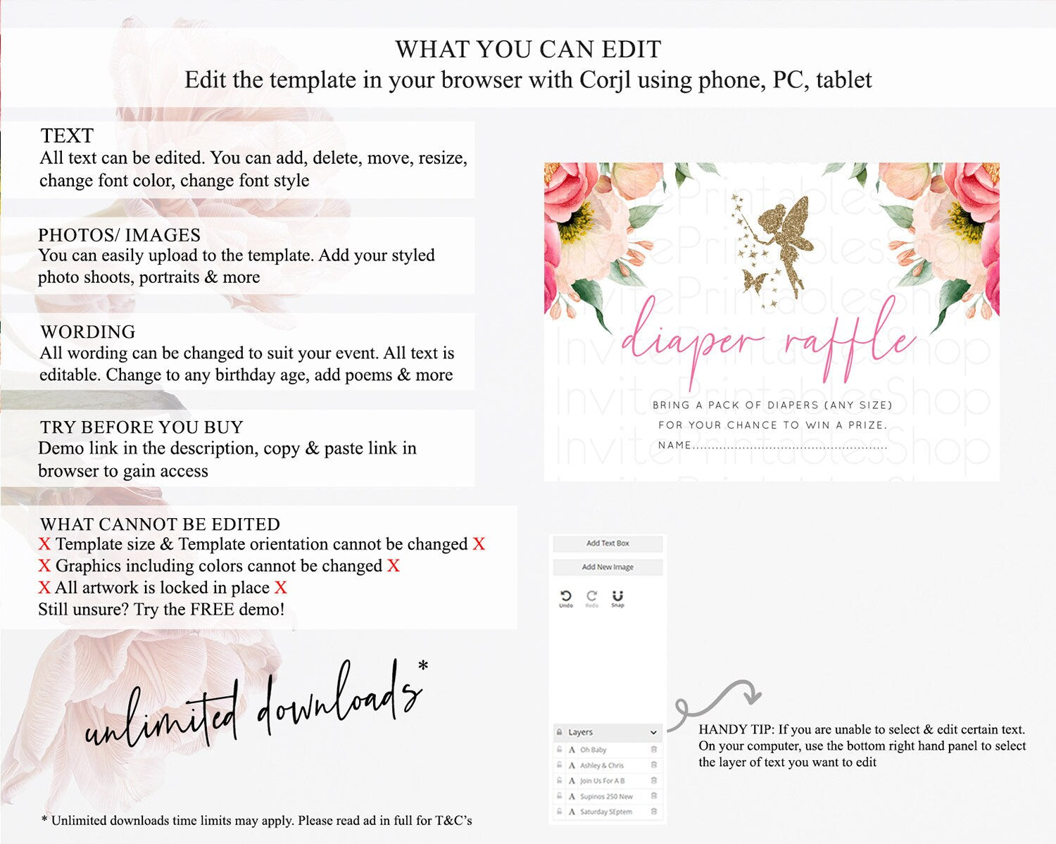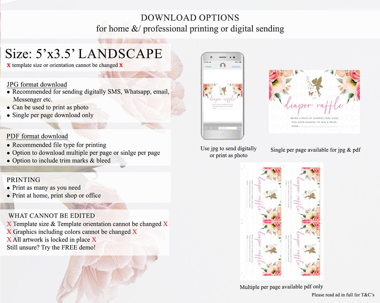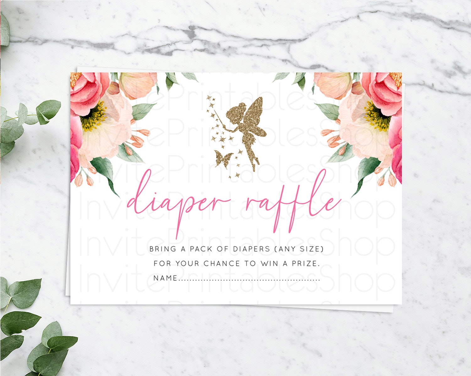 Fairy Diaper Raffle Card Fairy Diaper Insert Enchanted Garden Fairy Diaper Ticket Pastel Floral Butterfly Secret Garden Raffle Game D10883