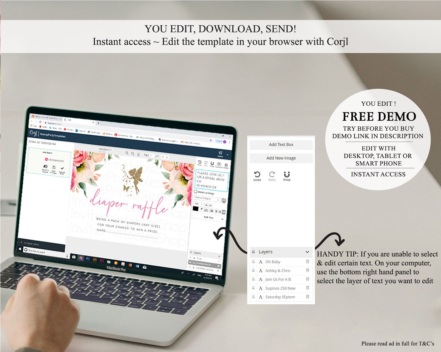 • After purchase, Corjl emails your editing link. Allow up to 15 minutes for delivery.