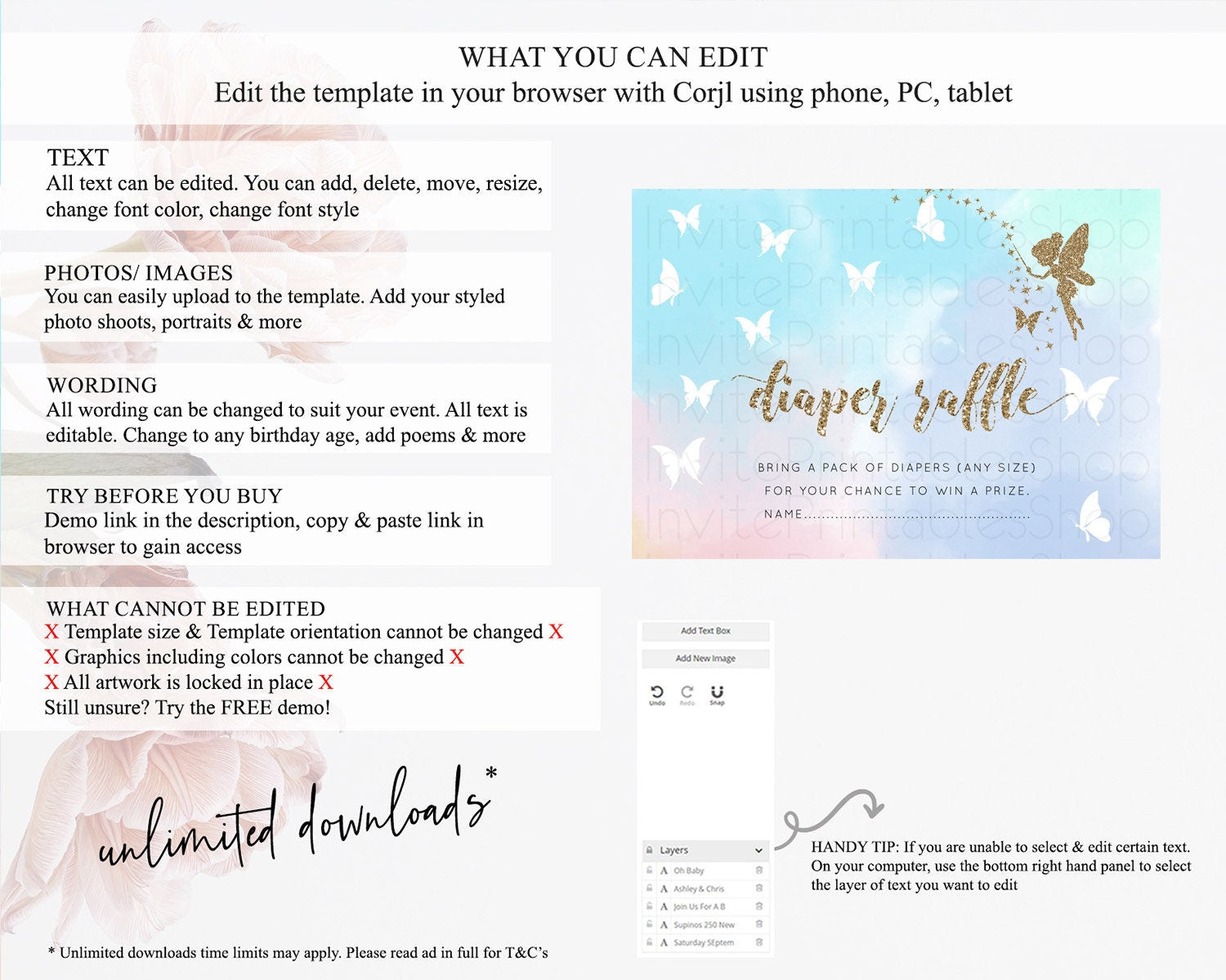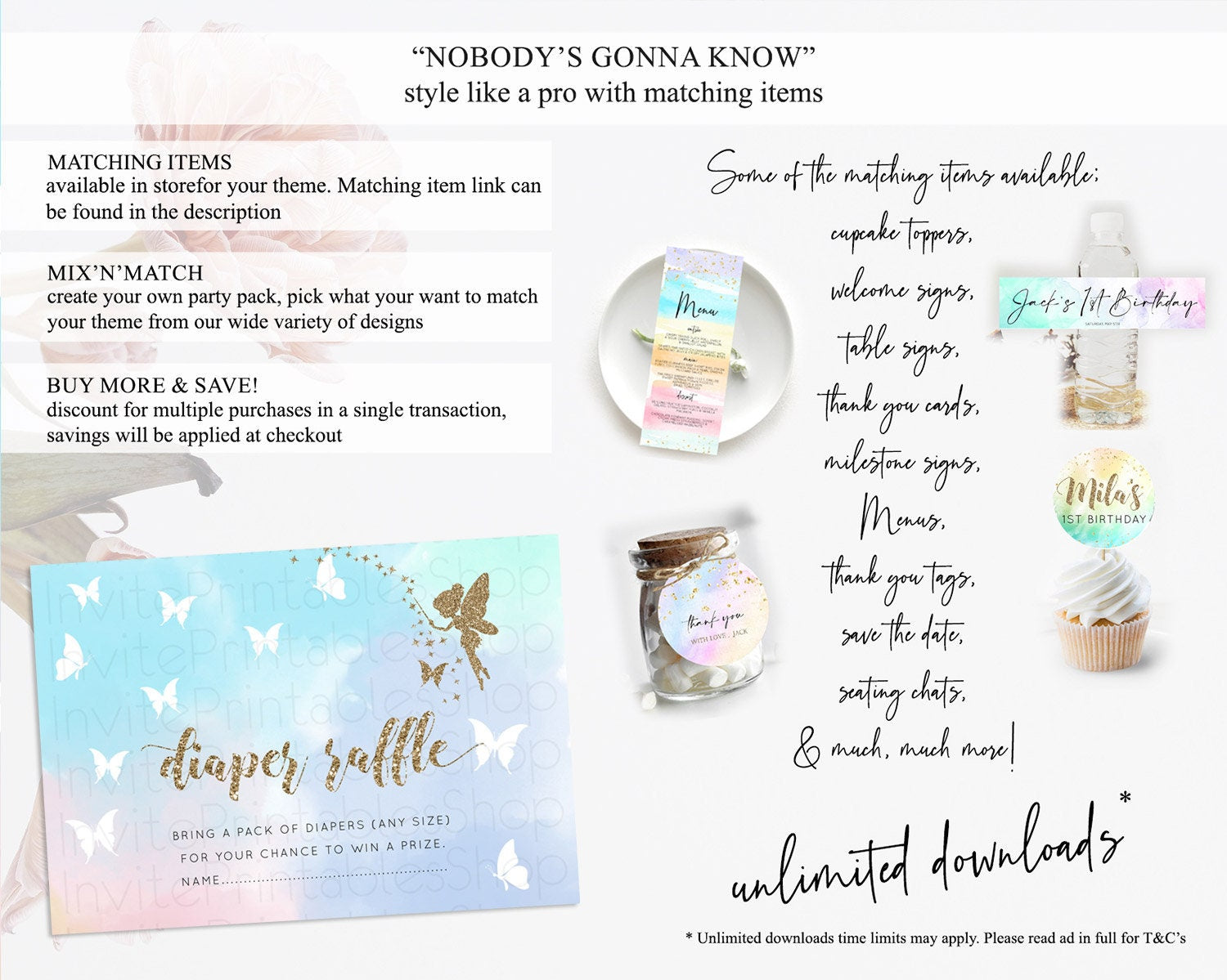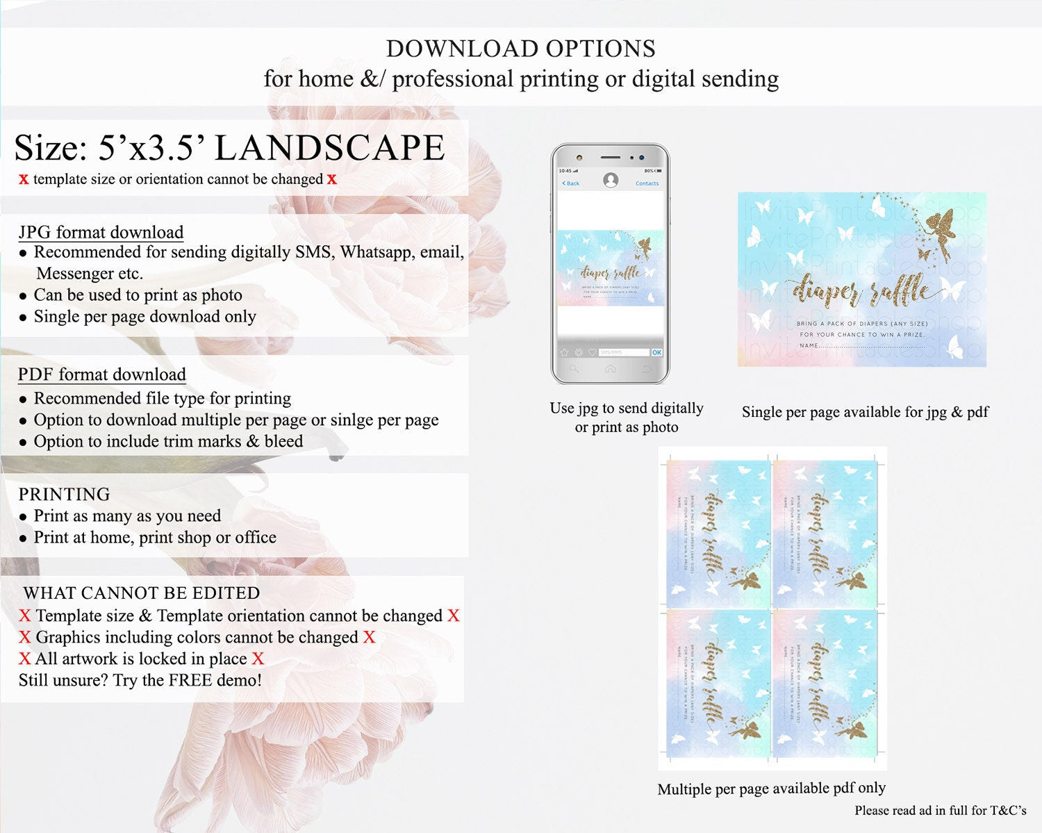 Fairy Diaper Raffle Card Fairy Diaper Insert Enchanted Garden Fairy Diaper Ticket Pastel Floral Butterfly Secret Garden Raffle Game D10894