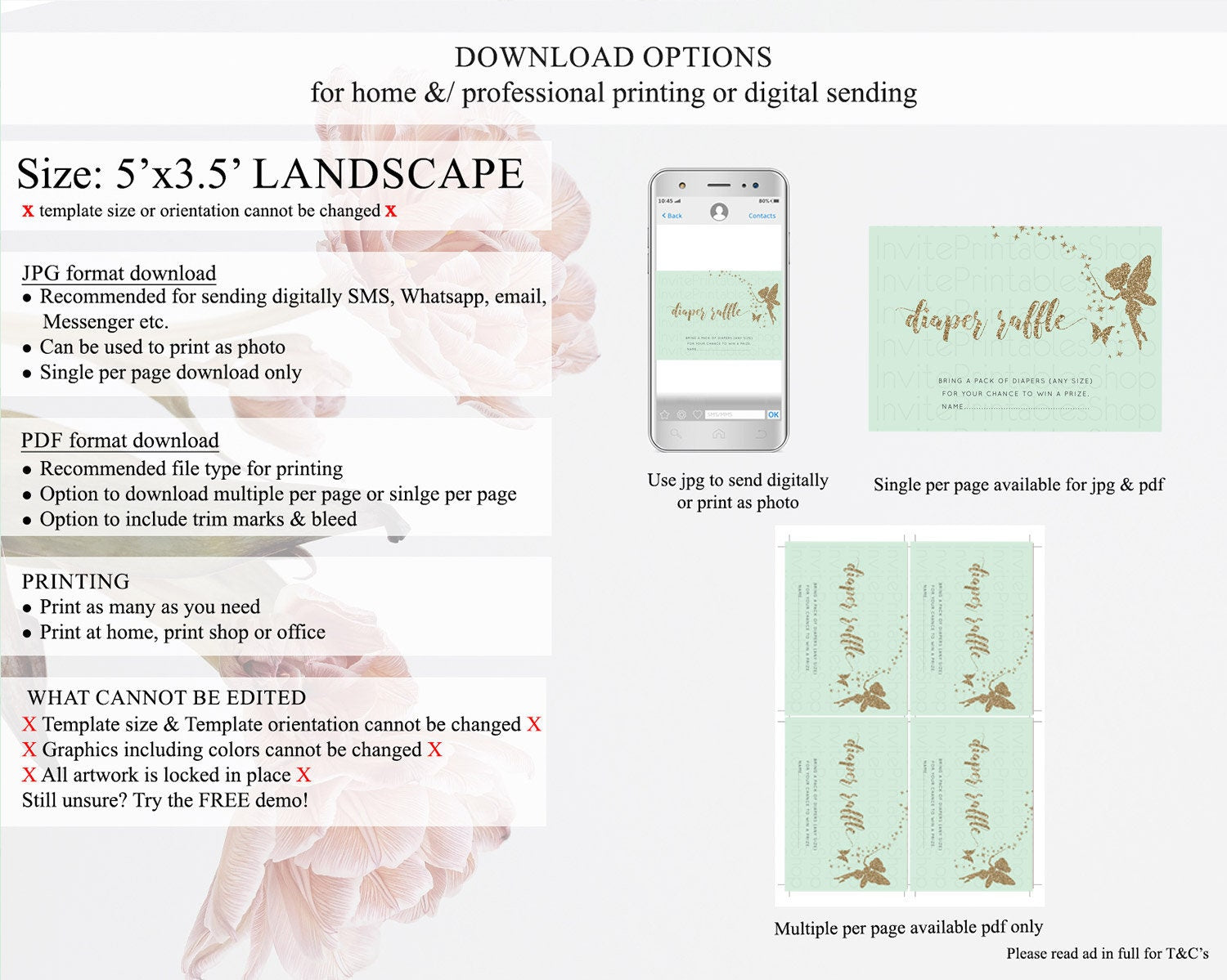 Fairy Diaper Raffle Card Fairy Diaper Insert Enchanted Garden Fairy Diaper Ticket Pastel Floral Butterfly Secret Garden Raffle Game D10908