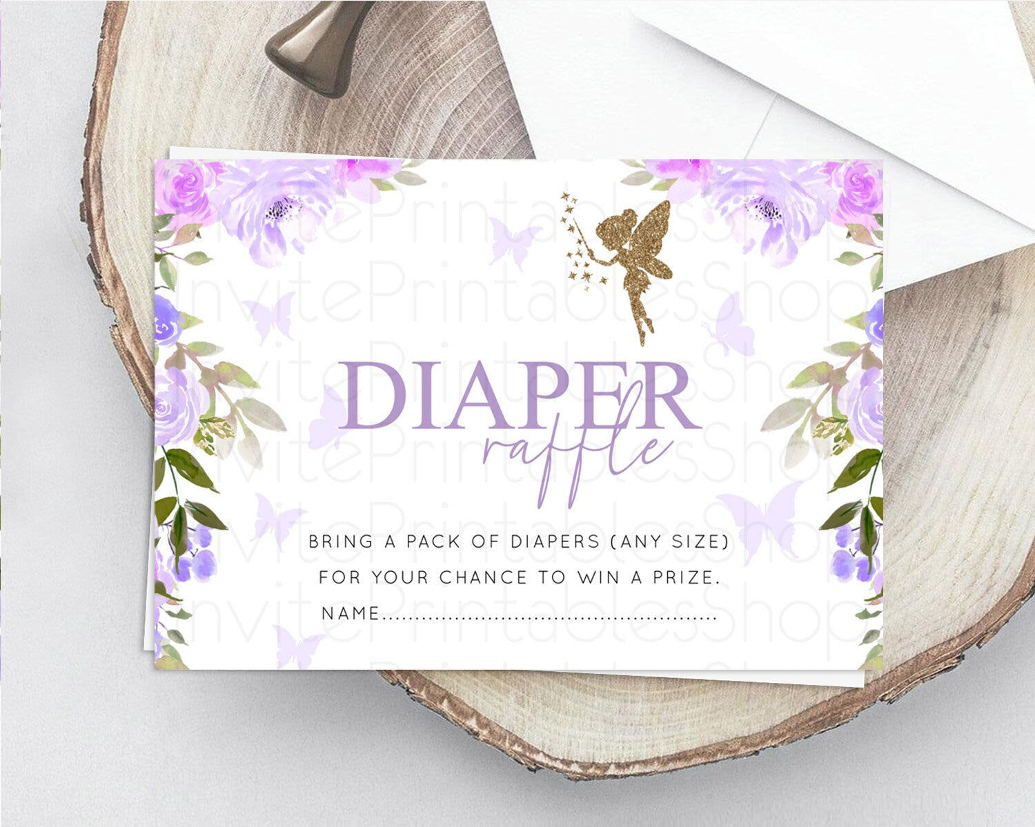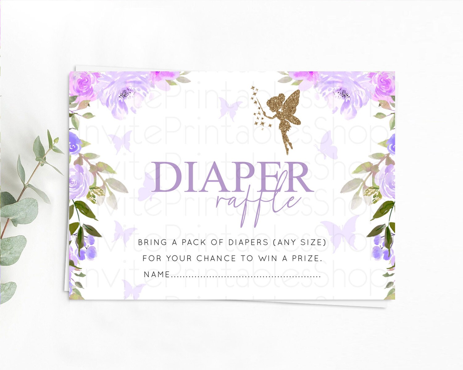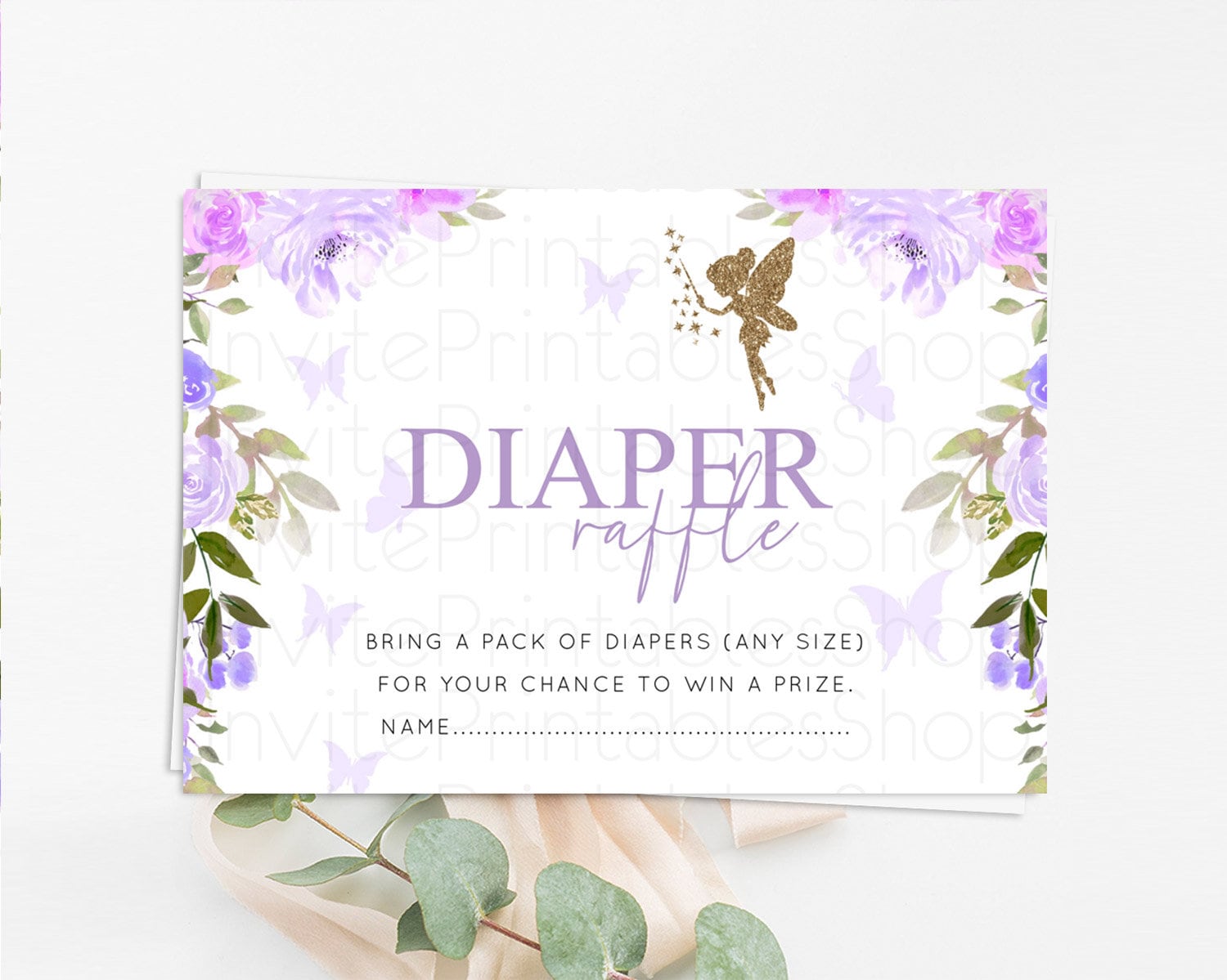 Fairy Diaper Raffle Card Fairy Diaper Insert Enchanted Garden Fairy Diaper Ticket Pastel Floral Butterfly Secret Garden Raffle Game D10910