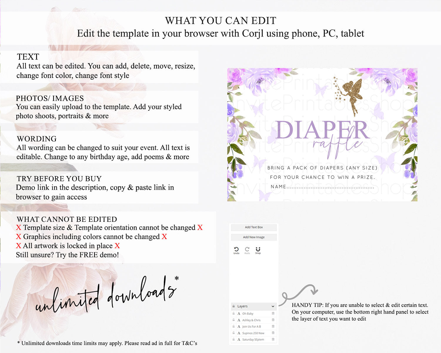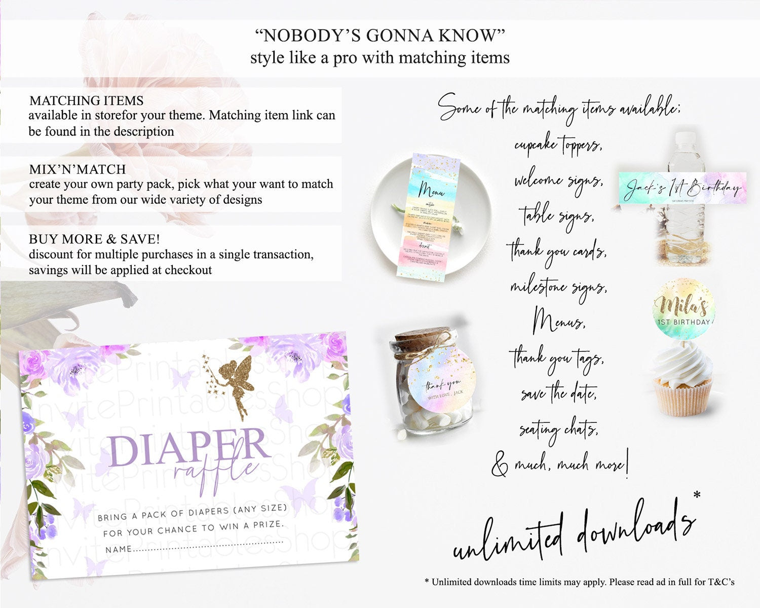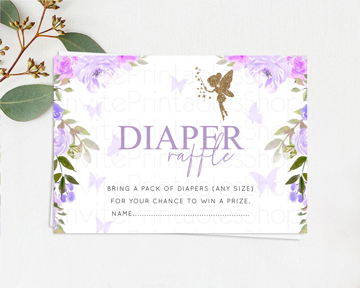 Fairy Diaper Raffle Card Fairy Diaper Insert Enchanted Garden Fairy Diaper Ticket Pastel Floral Butterfly Secret Garden Raffle Game D10910