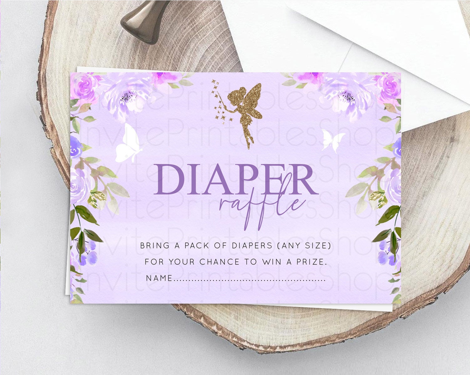Fairy Diaper Raffle Card Fairy Diaper Insert Enchanted Garden Fairy Diaper Ticket Pastel Floral Butterfly Secret Garden Raffle Game D10910