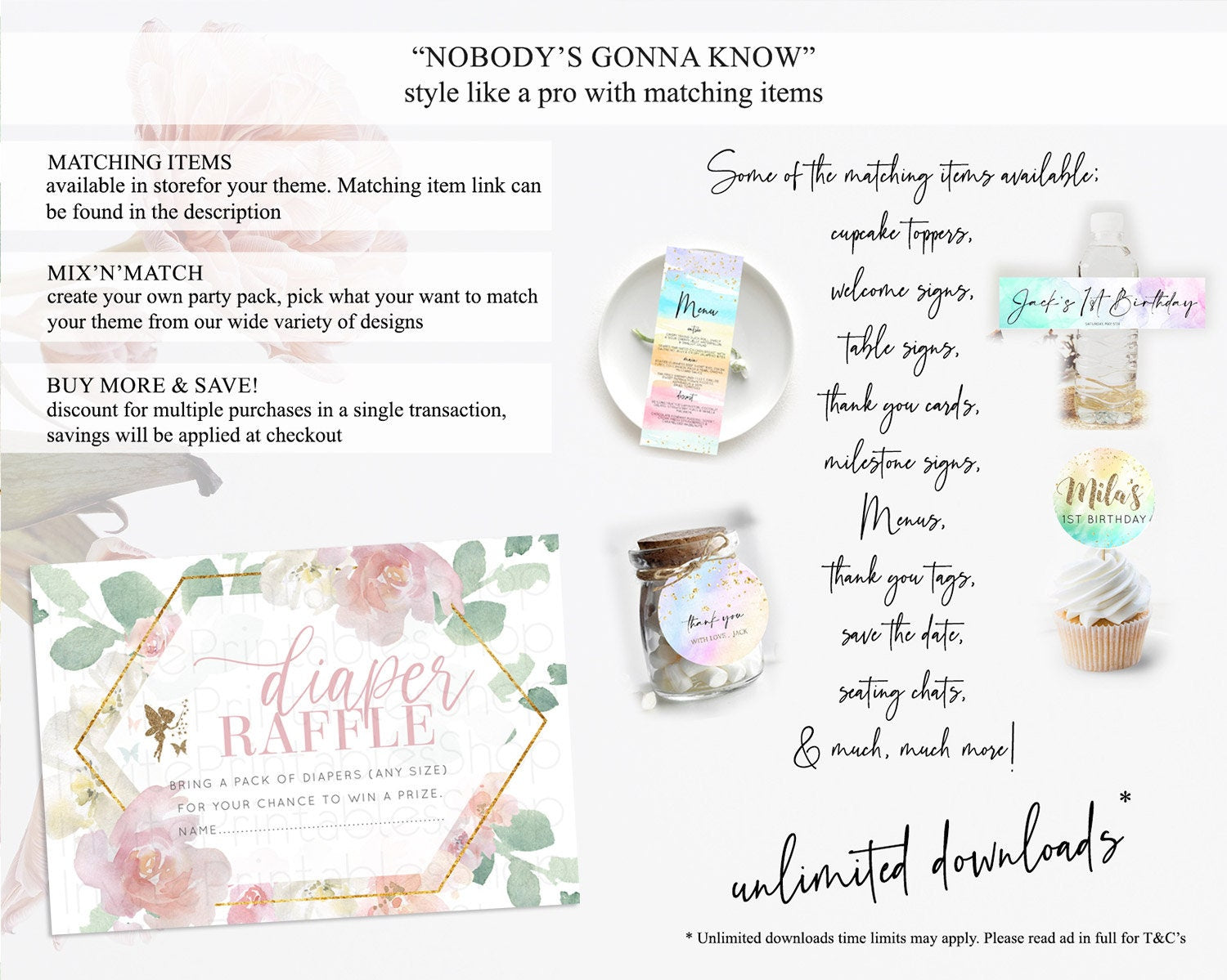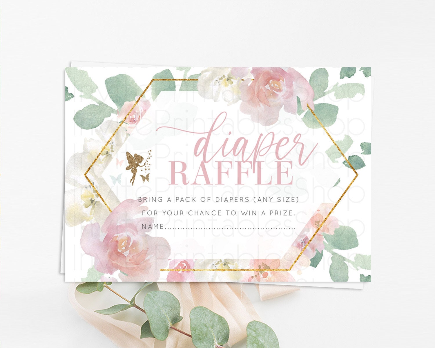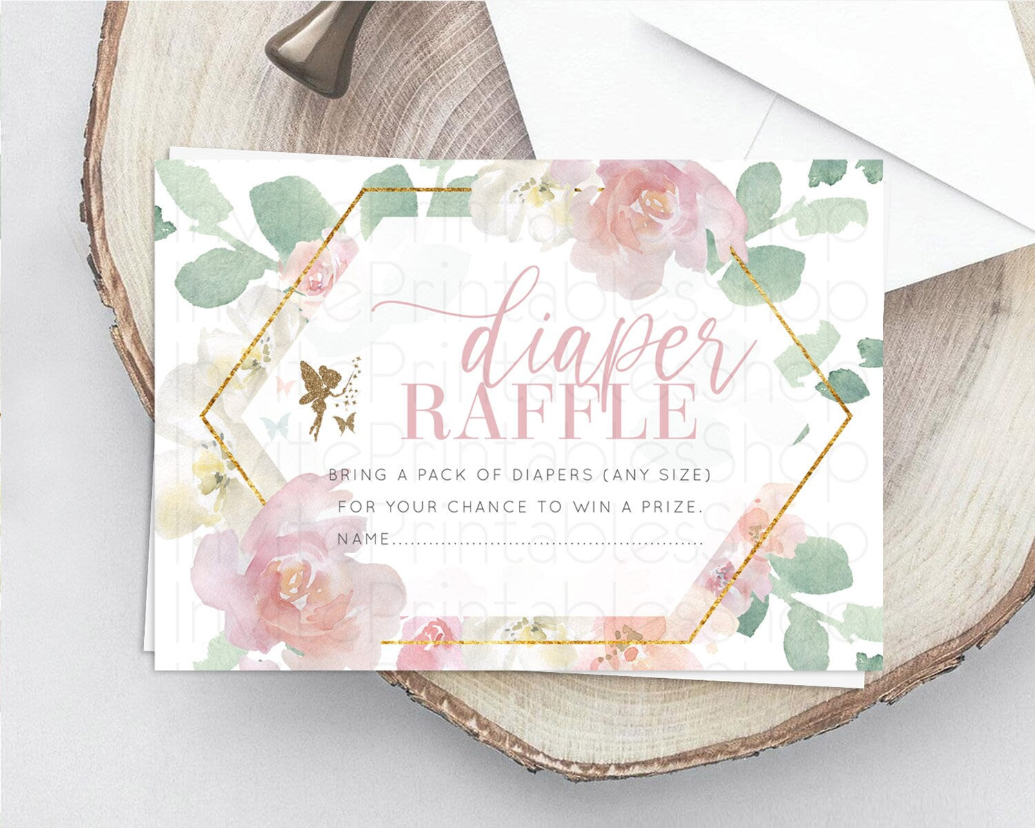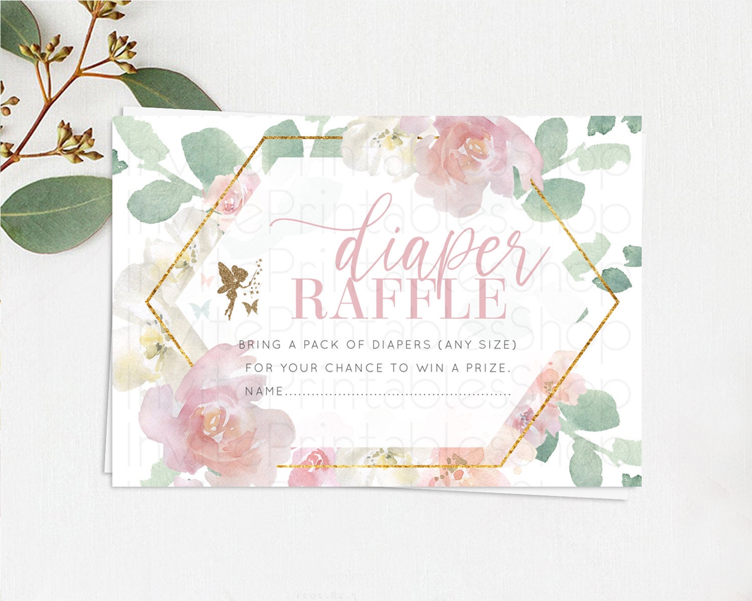 Fairy Diaper Raffle Card Fairy Diaper Insert Enchanted Garden Fairy Diaper Ticket Pastel Floral Butterfly Secret Garden Raffle Game D10965