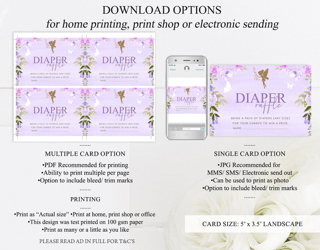 Fairy Diaper Raffle Pastel Floral Diaper Request Glitter Magic Diaper Card Enchanted Garden Baby Shower Raffle Game Tickets Nappy Card 47