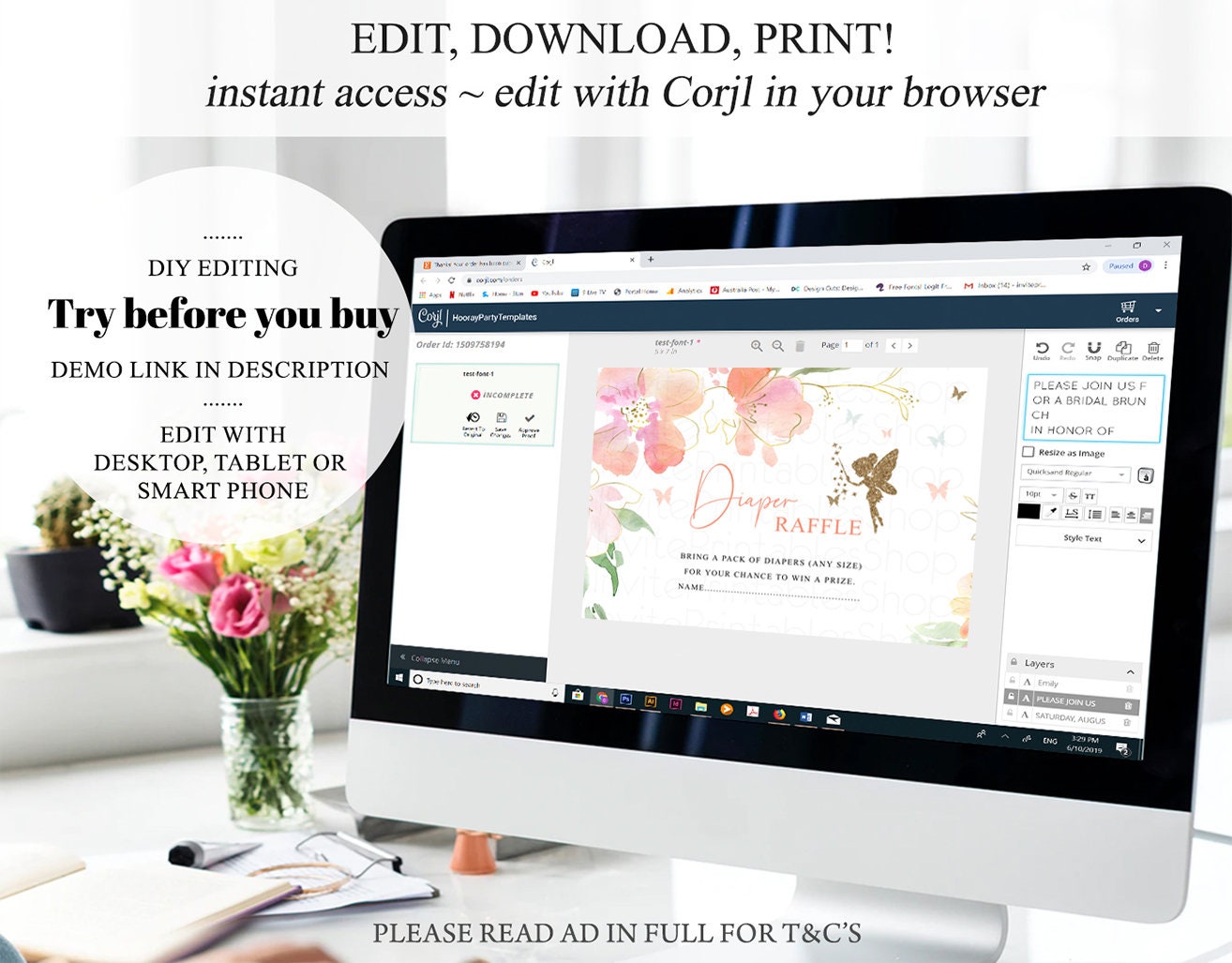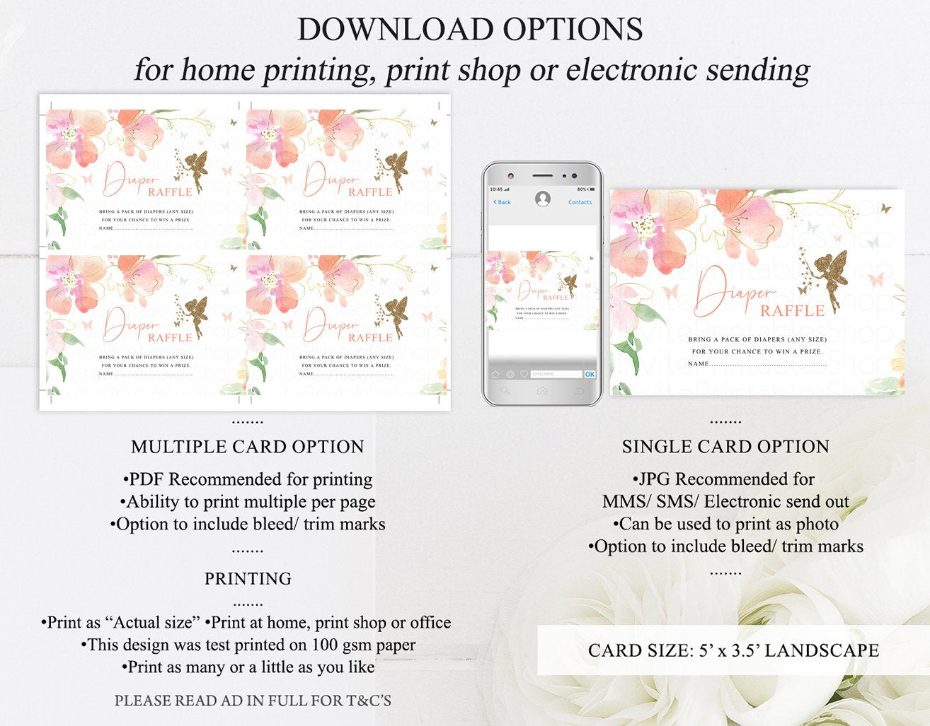 Fairy Diaper Raffle Pastel Floral Diaper Request Glitter Magic Diaper Card Enchanted Garden Baby Shower Raffle Game Tickets Nappy Card 91