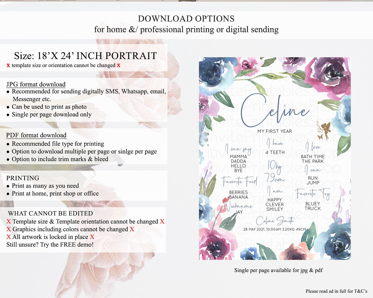 • Template size & orientation cannot be changed. Please use the demo link to confirm this product suits your needs.