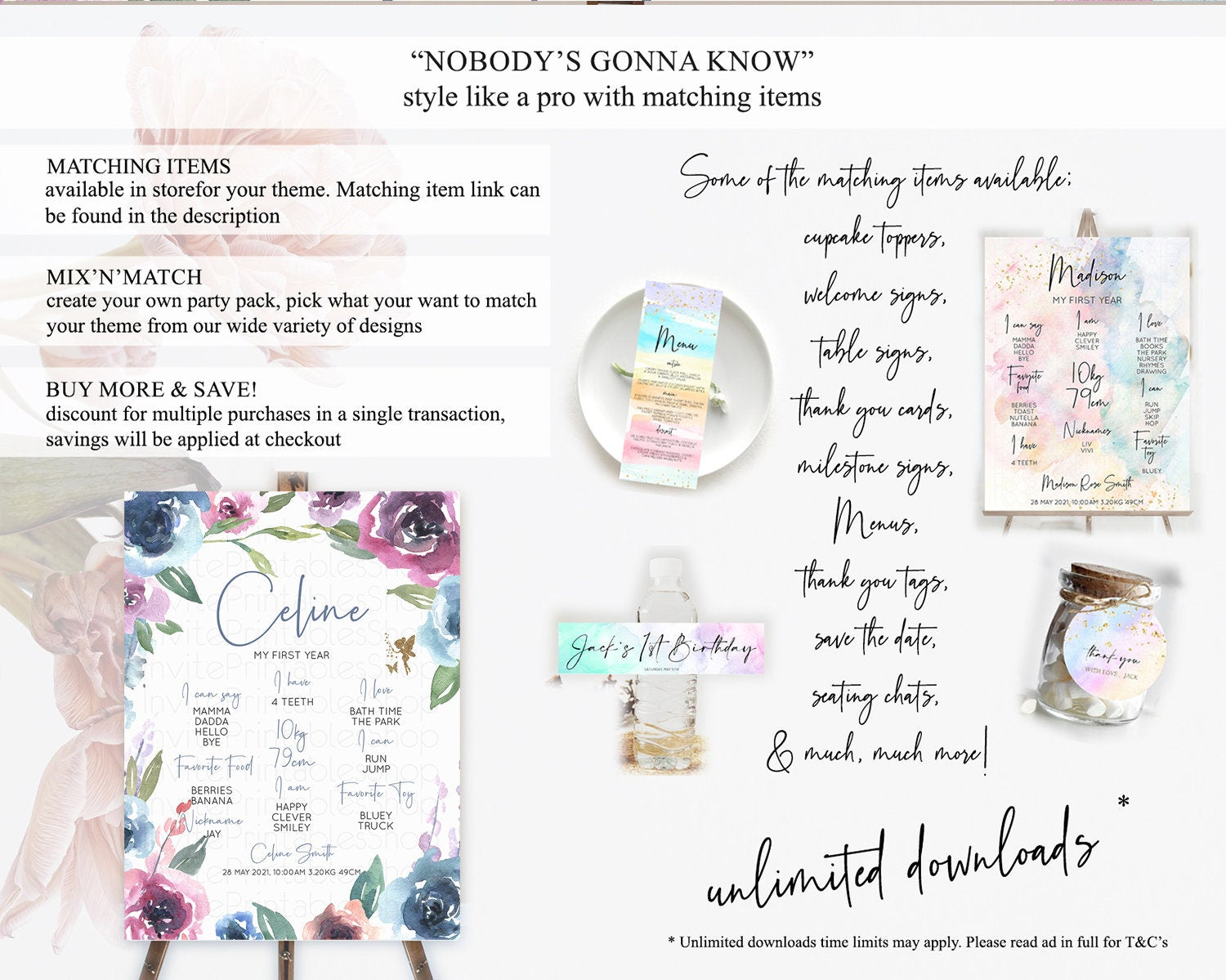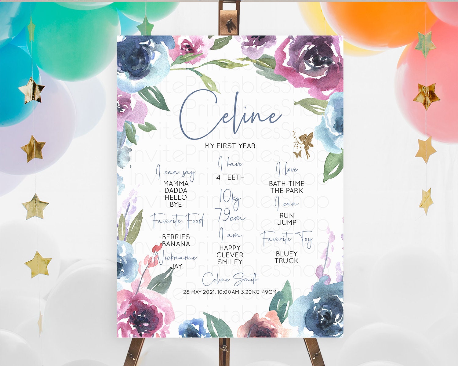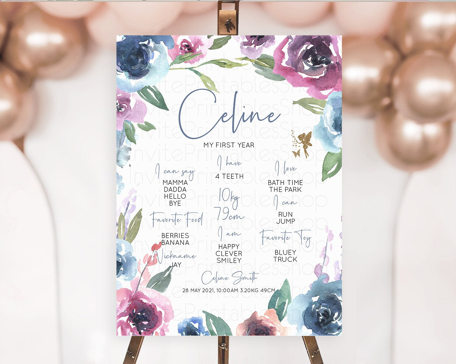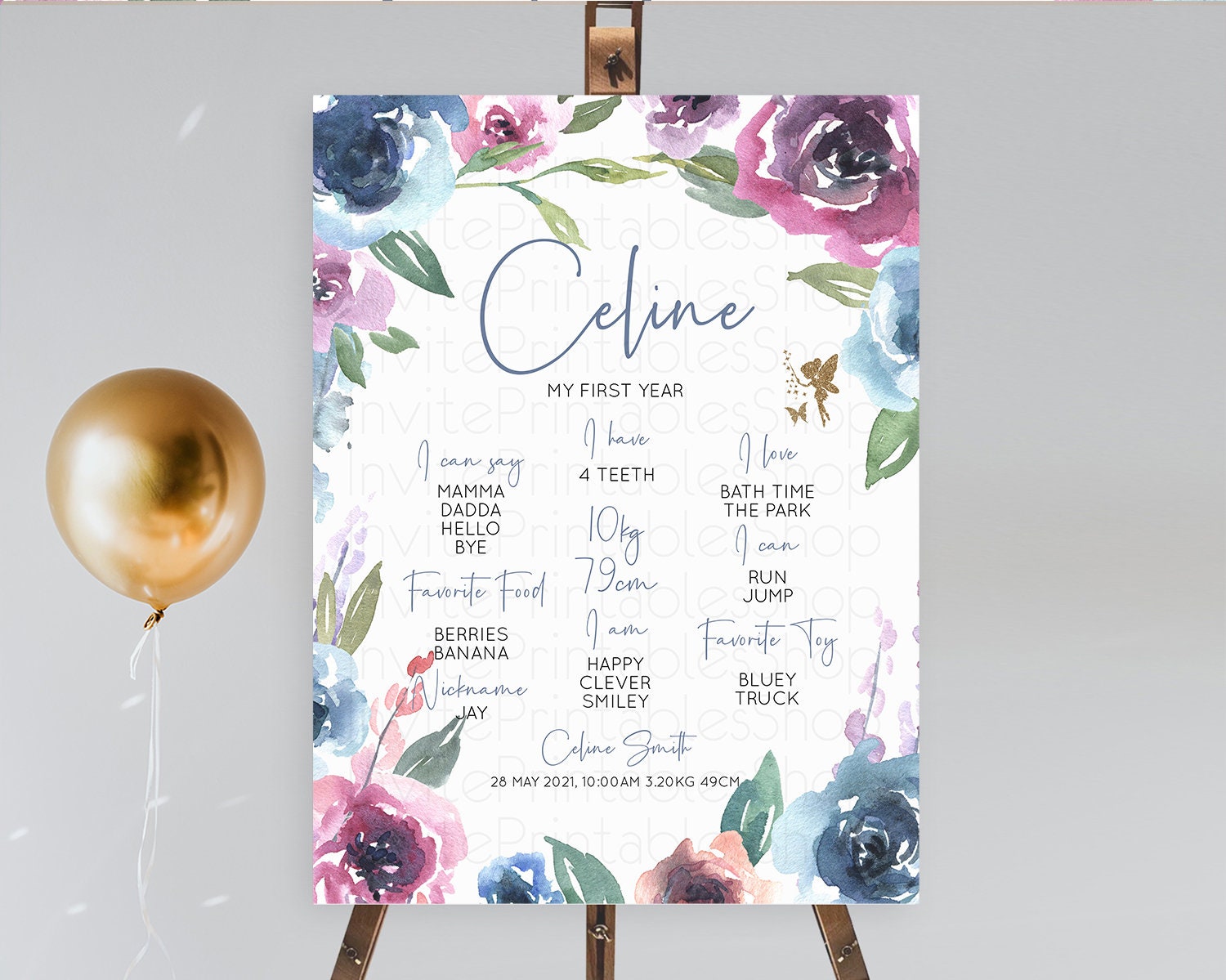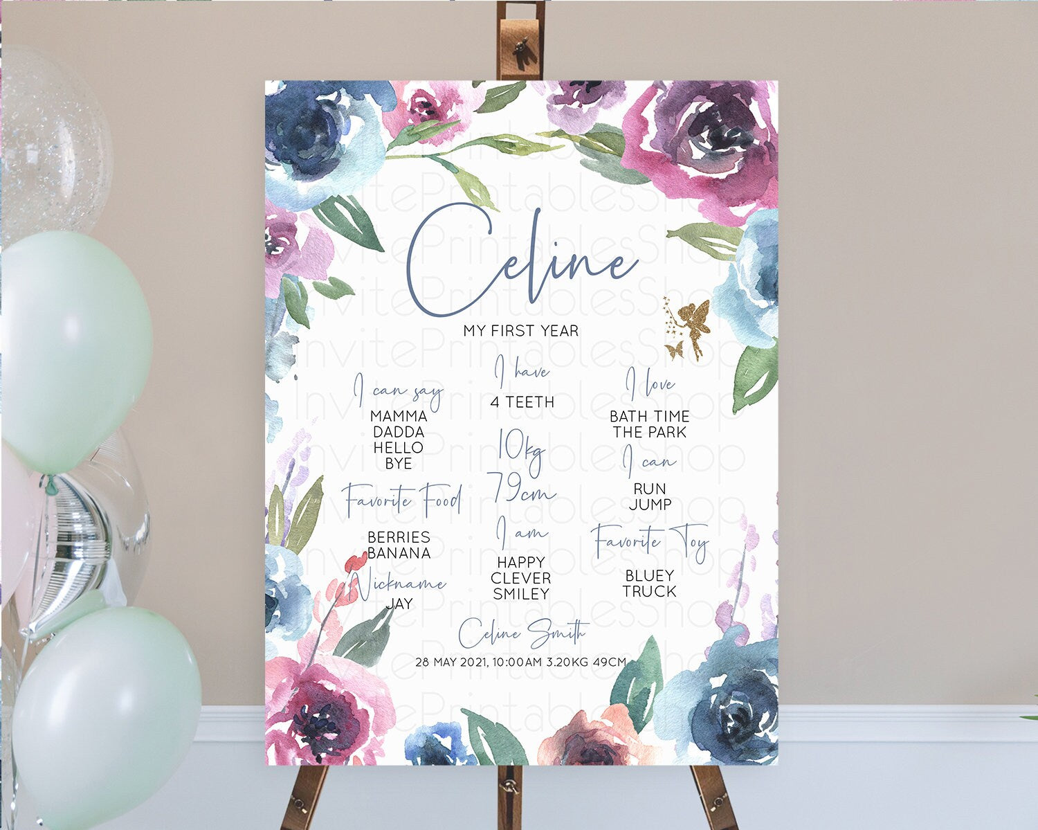 Fairy First Birthday Milestone Poster Fairy Secret Garden Milestone Board Enchanted Garden Pastel Floral Butterfly 1st Birthday Sign D10188