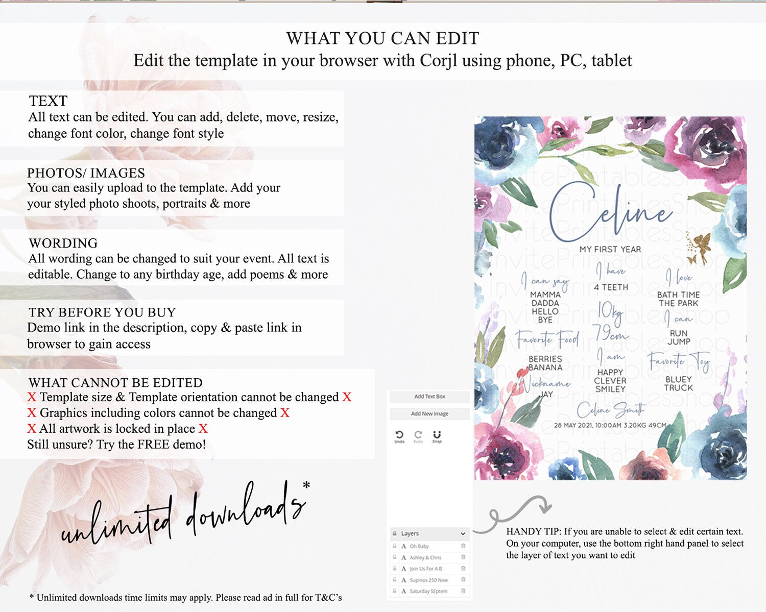 • After purchase, Corjl emails your editing link. Allow up to 15 minutes for delivery.
