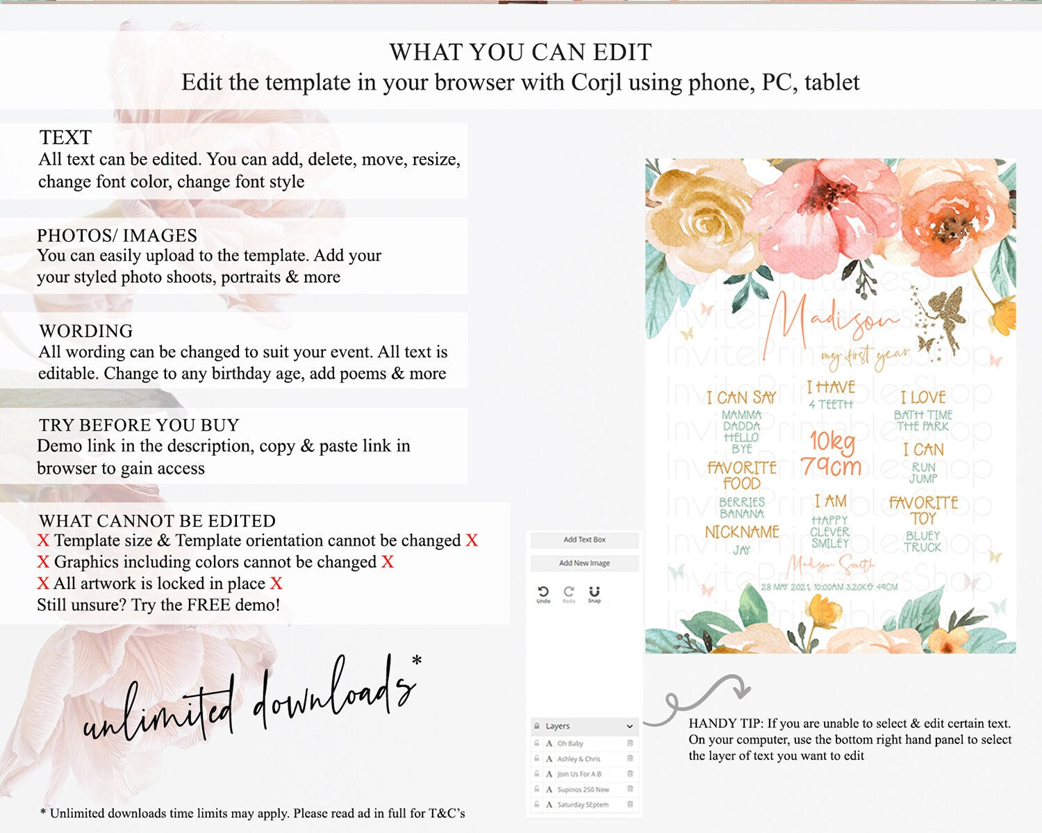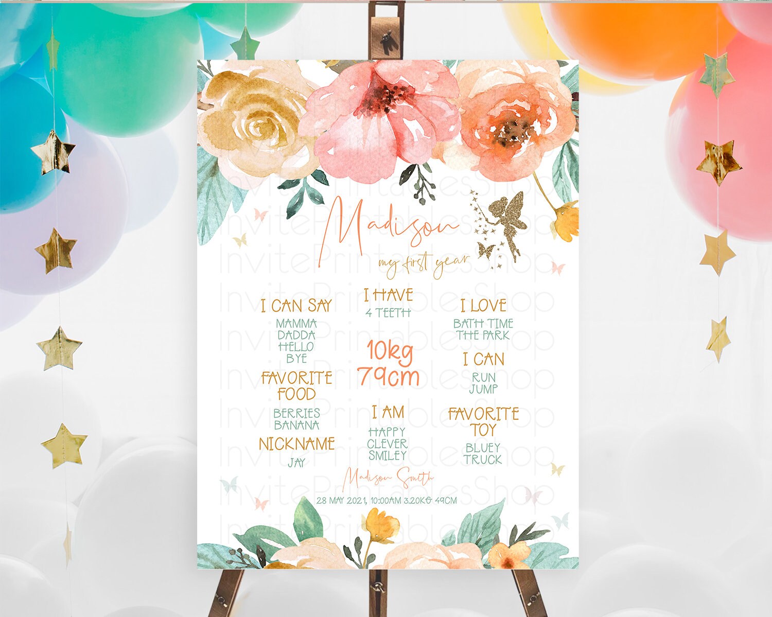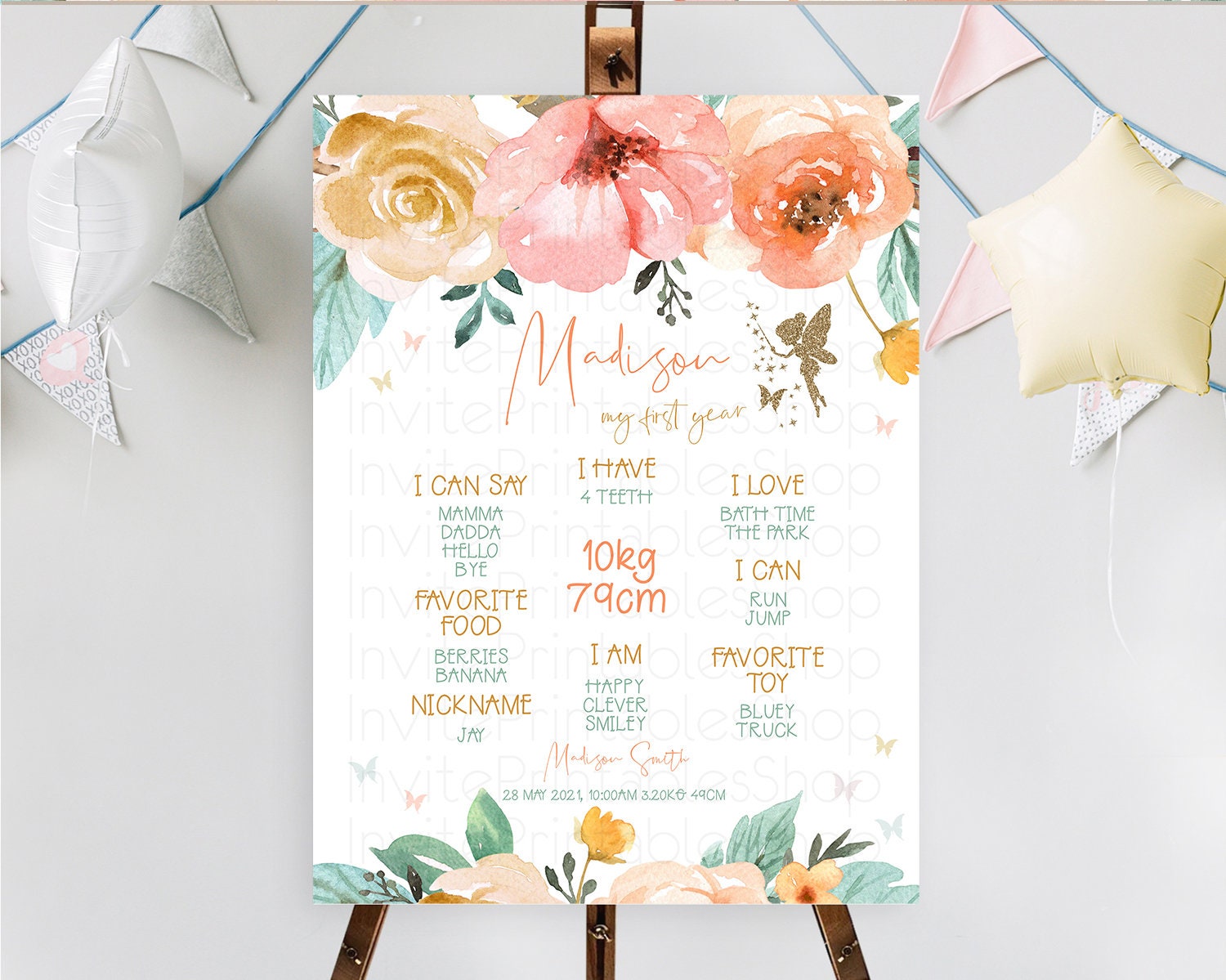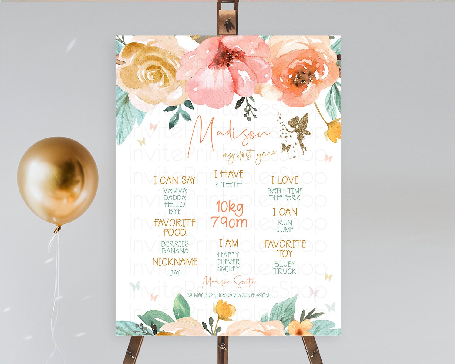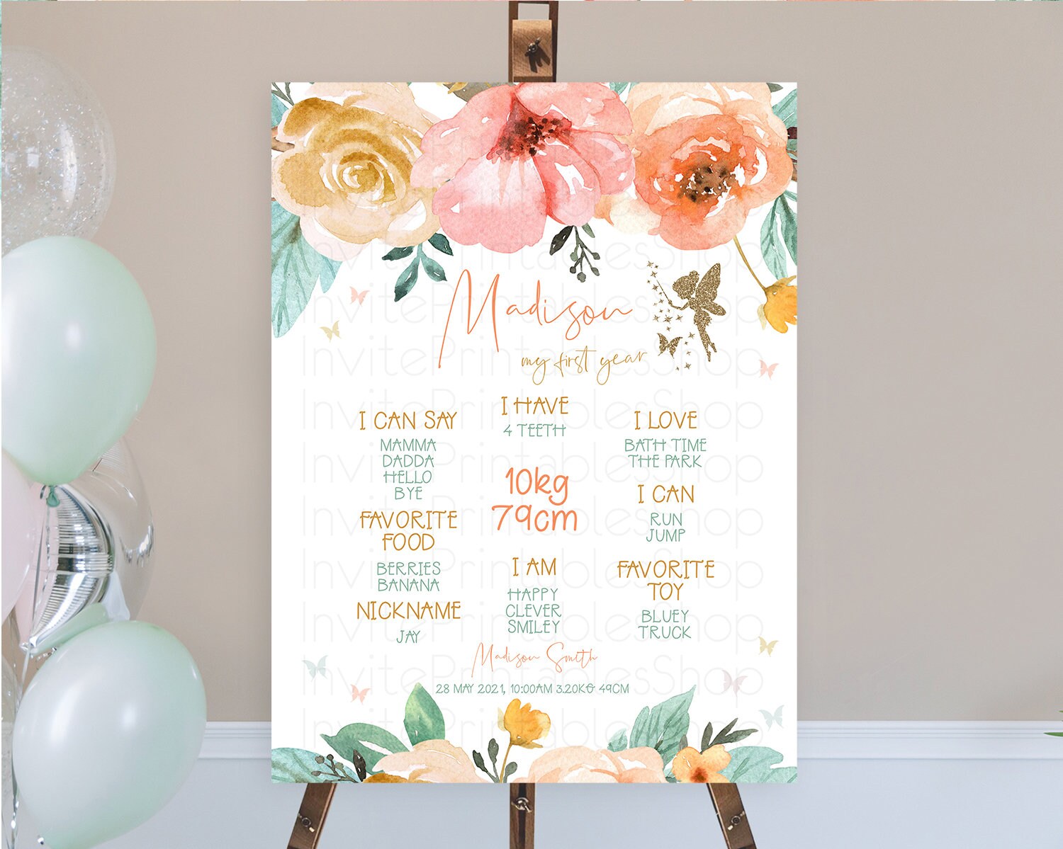 Fairy First Birthday Milestone Poster Fairy Secret Garden Milestone Board Enchanted Garden Pastel Floral Butterfly 1st Birthday Sign D10346
