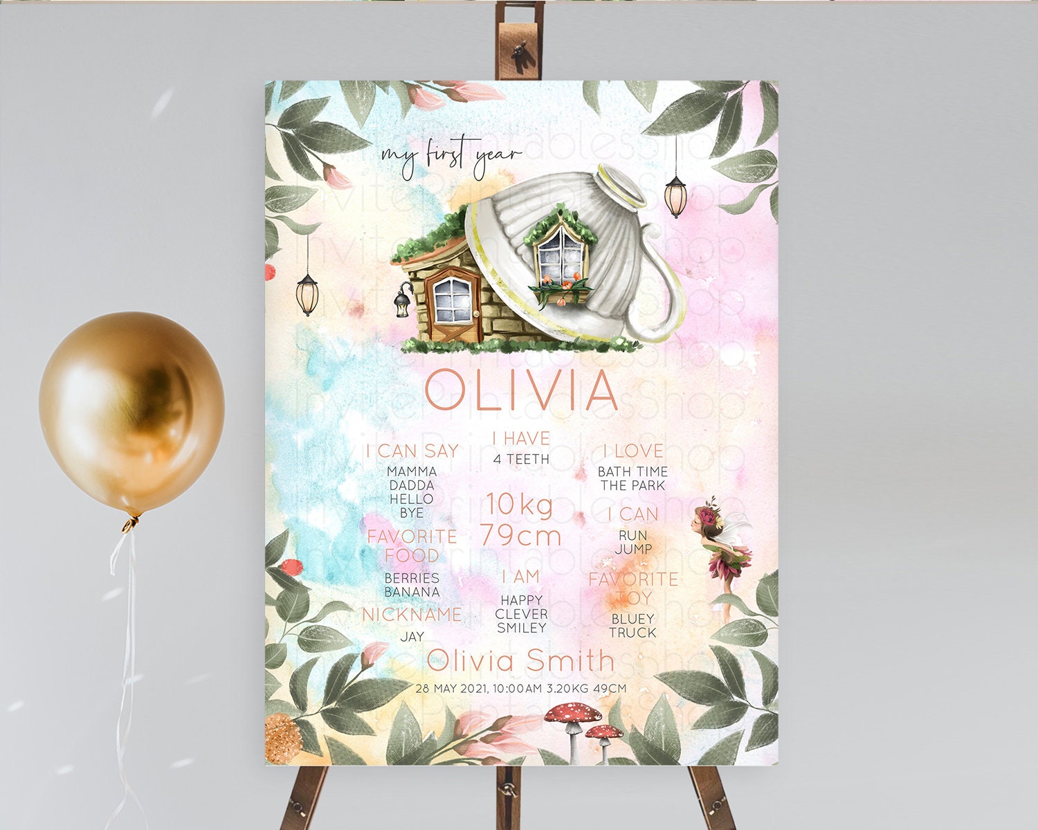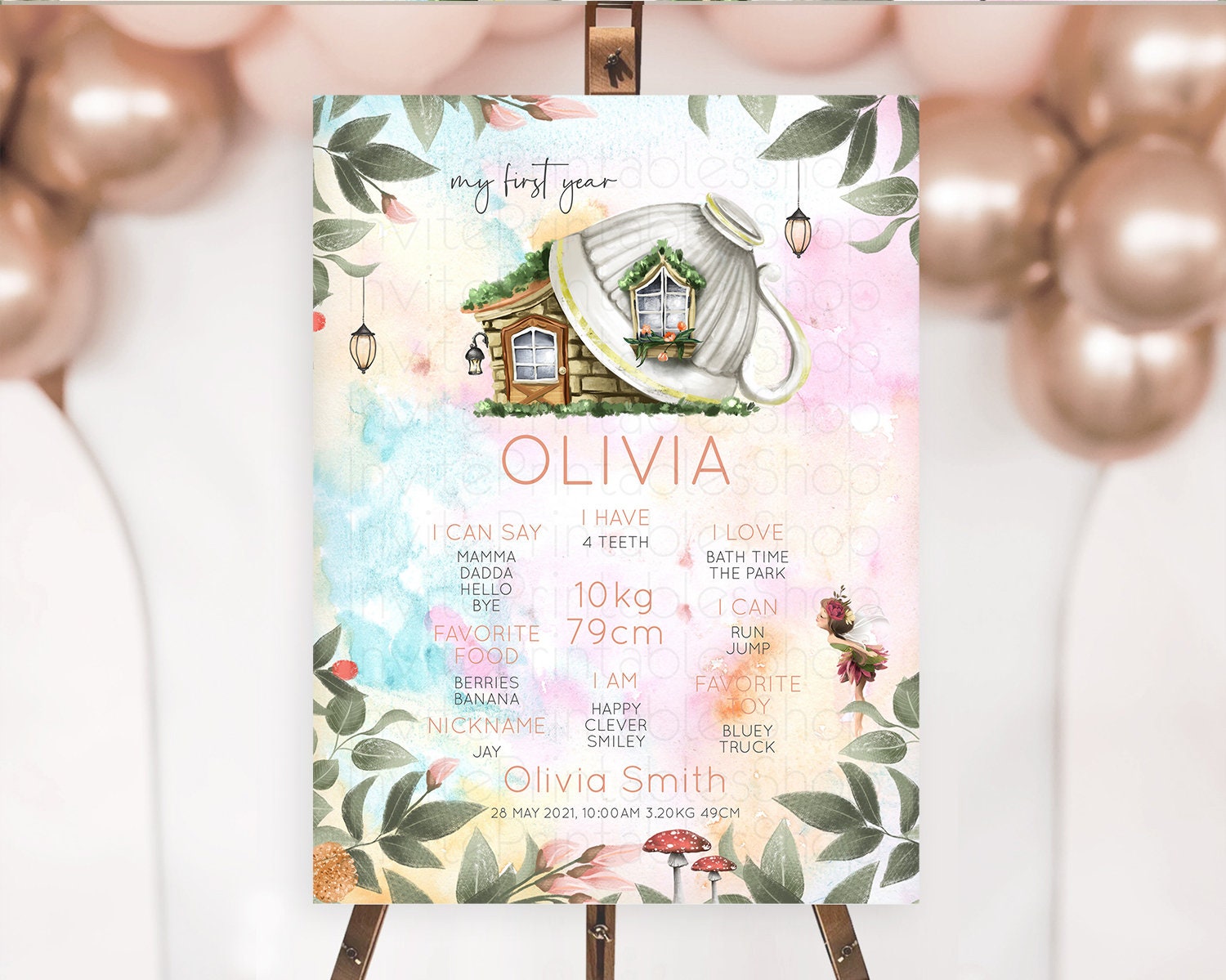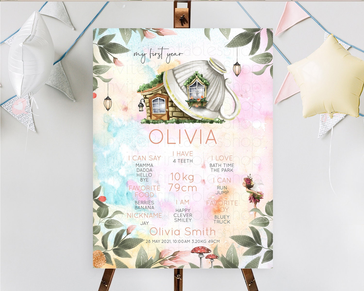 Fairy First Birthday Milestone Poster Fairy Secret Garden Milestone Board Enchanted Garden Pastel Floral Butterfly 1st Birthday Sign D10555
