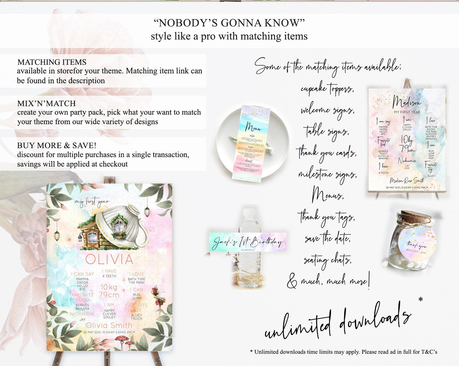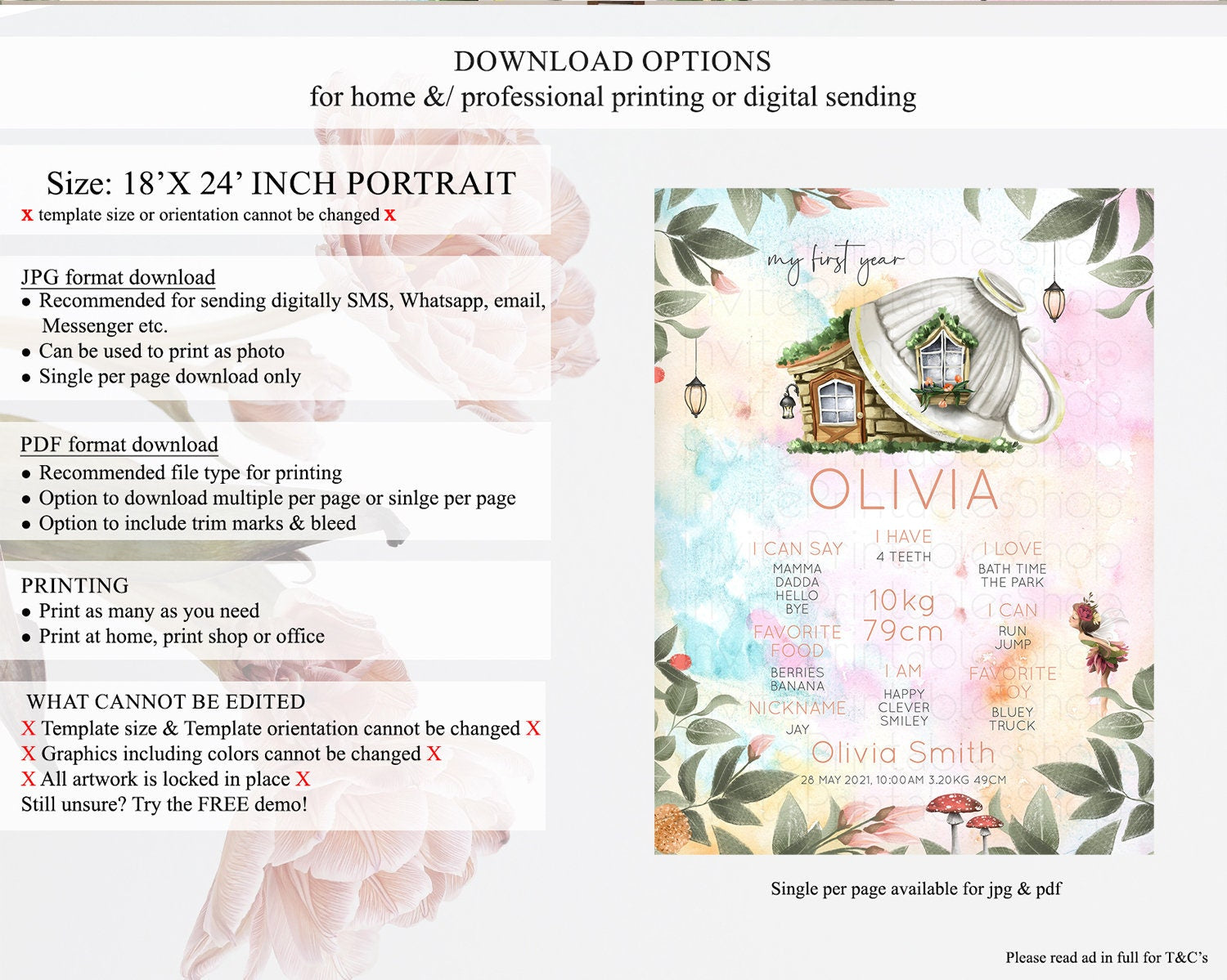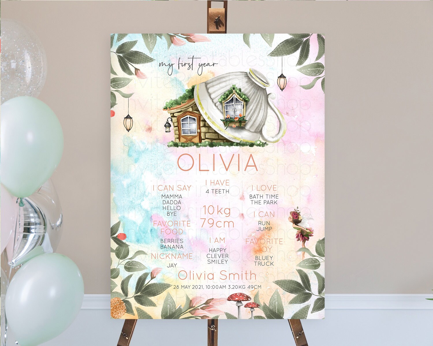 Fairy First Birthday Milestone Poster Fairy Secret Garden Milestone Board Enchanted Garden Pastel Floral Butterfly 1st Birthday Sign D10555