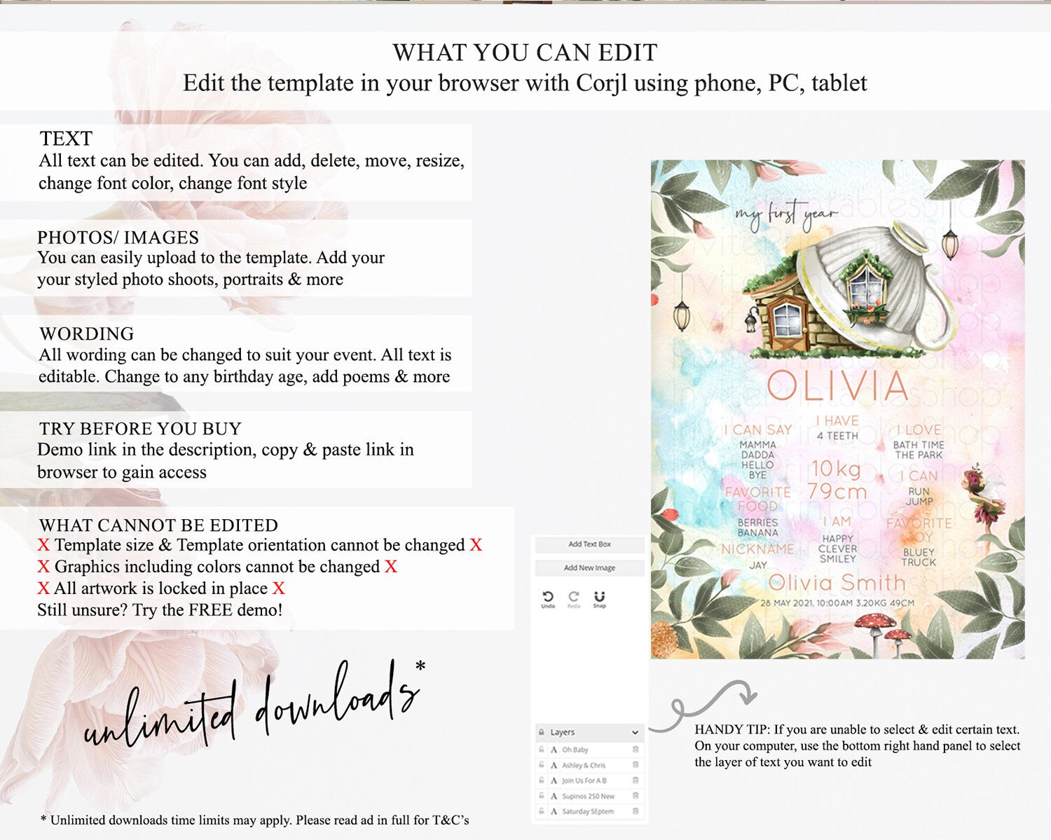 • After purchase, Corjl emails your editing link. Allow up to 15 minutes for delivery.