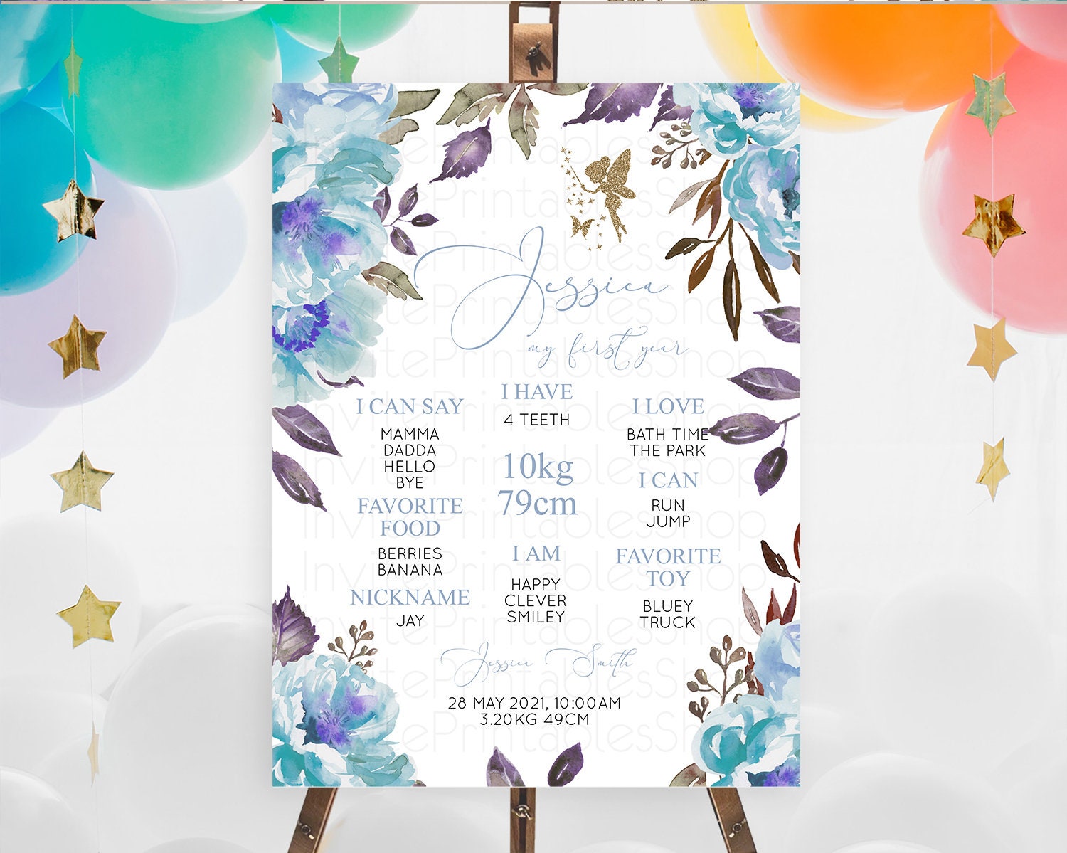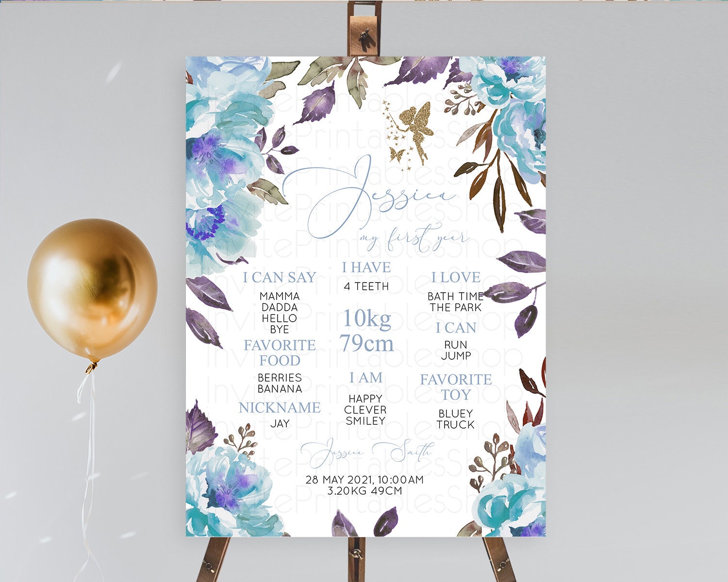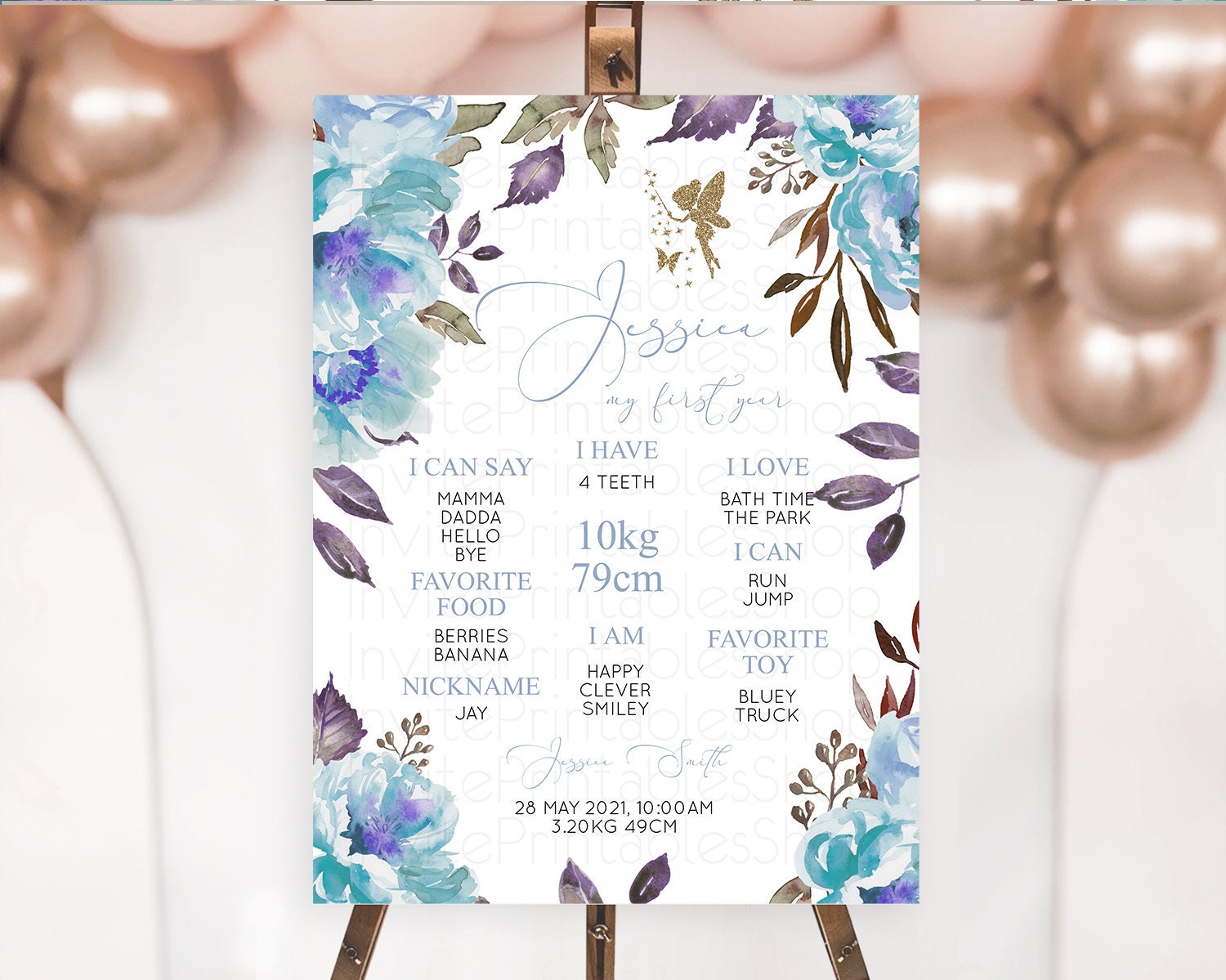 Fairy First Birthday Milestone Poster Fairy Secret Garden Milestone Board Enchanted Garden Pastel Floral Butterfly 1st Birthday Sign D10728
