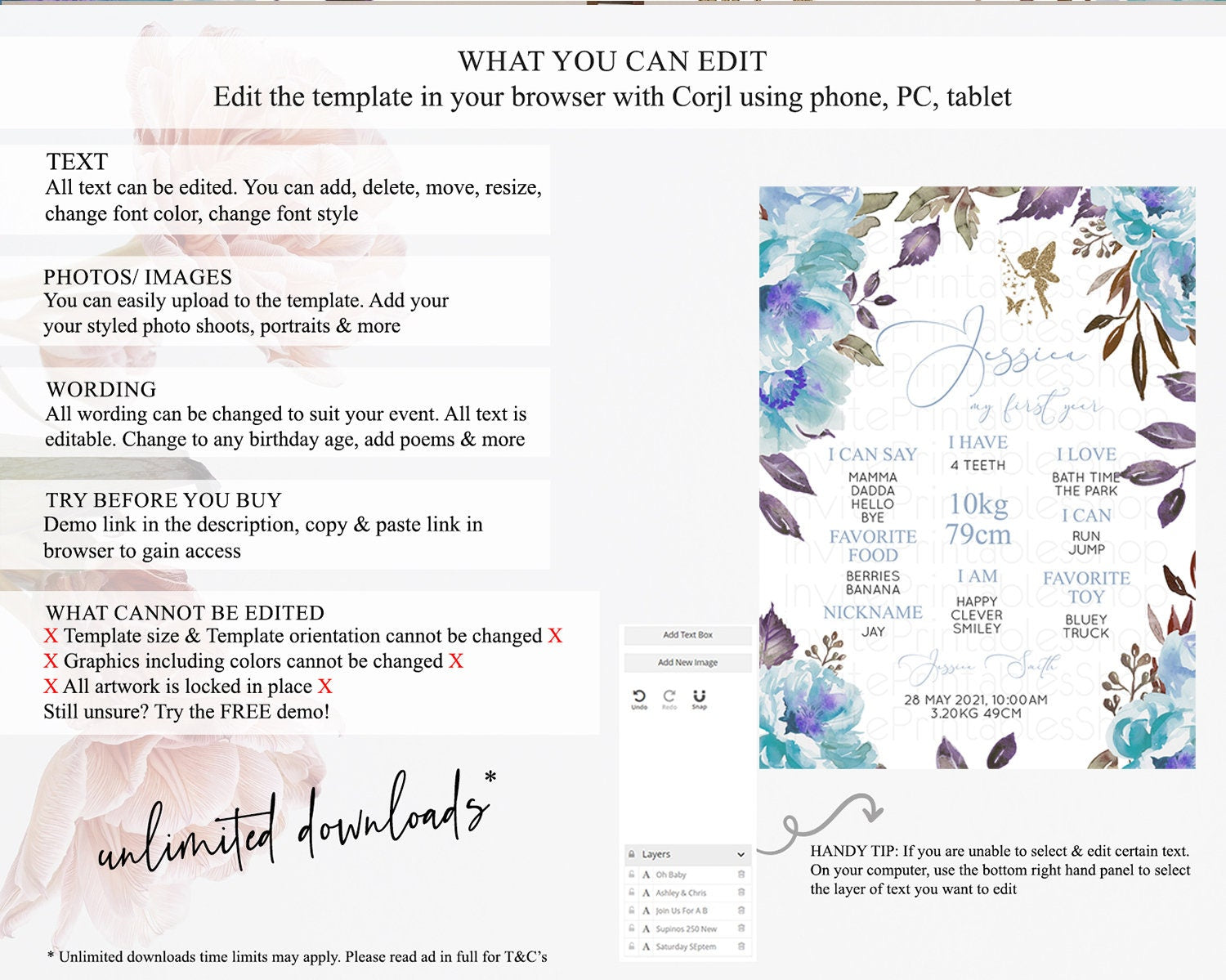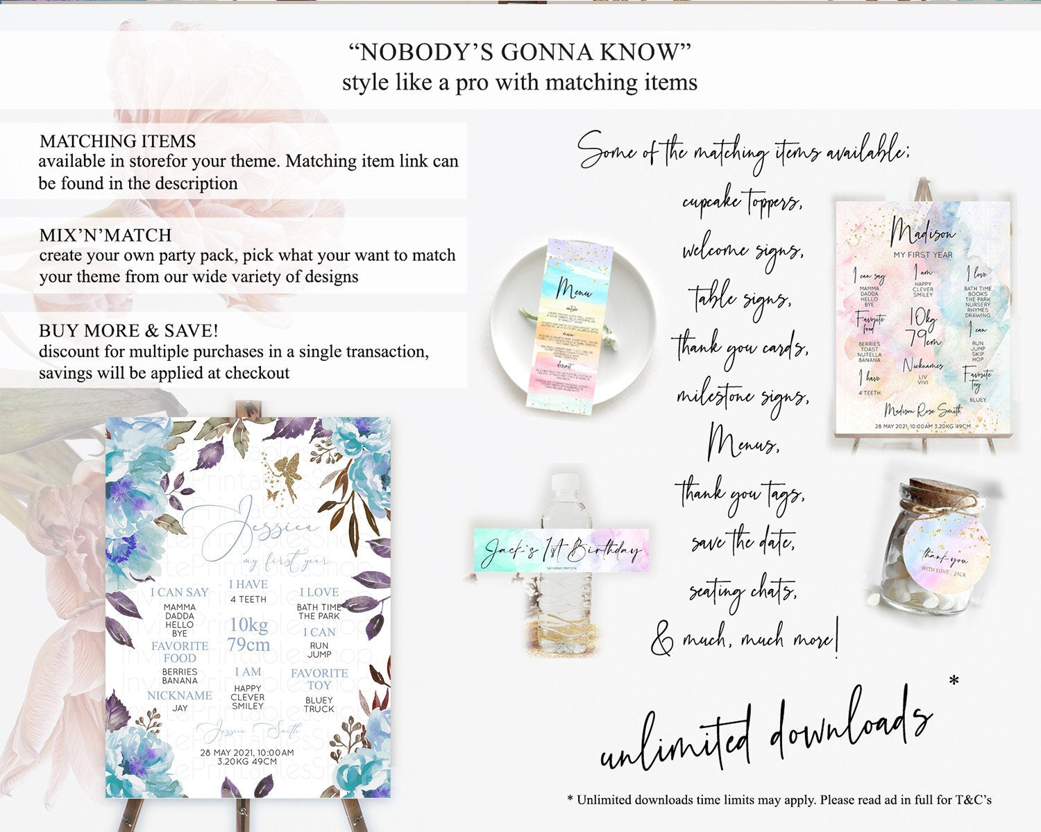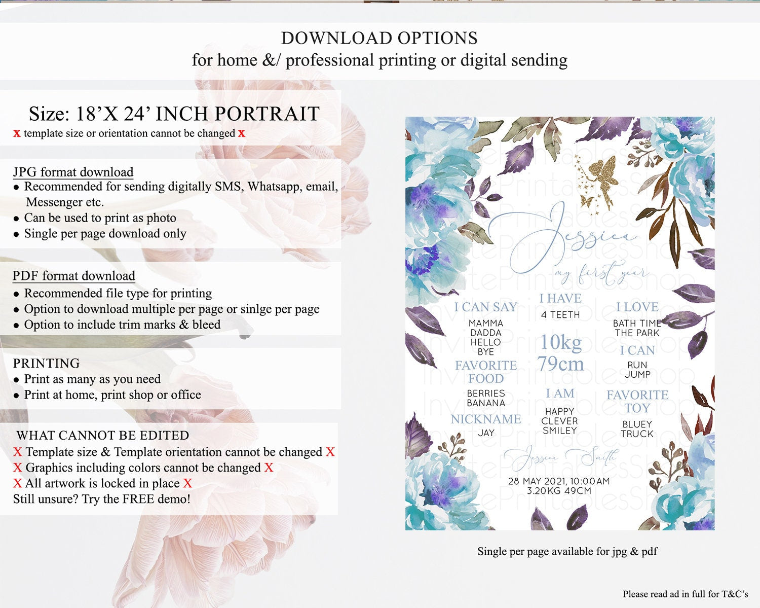 Fairy First Birthday Milestone Poster Fairy Secret Garden Milestone Board Enchanted Garden Pastel Floral Butterfly 1st Birthday Sign D10728