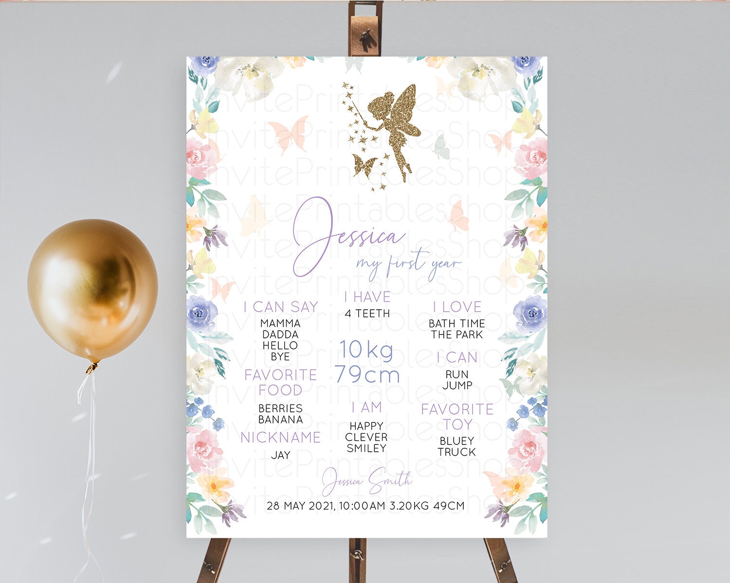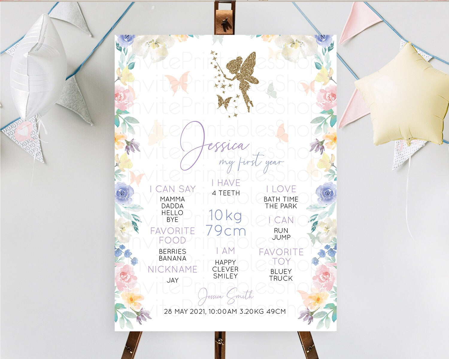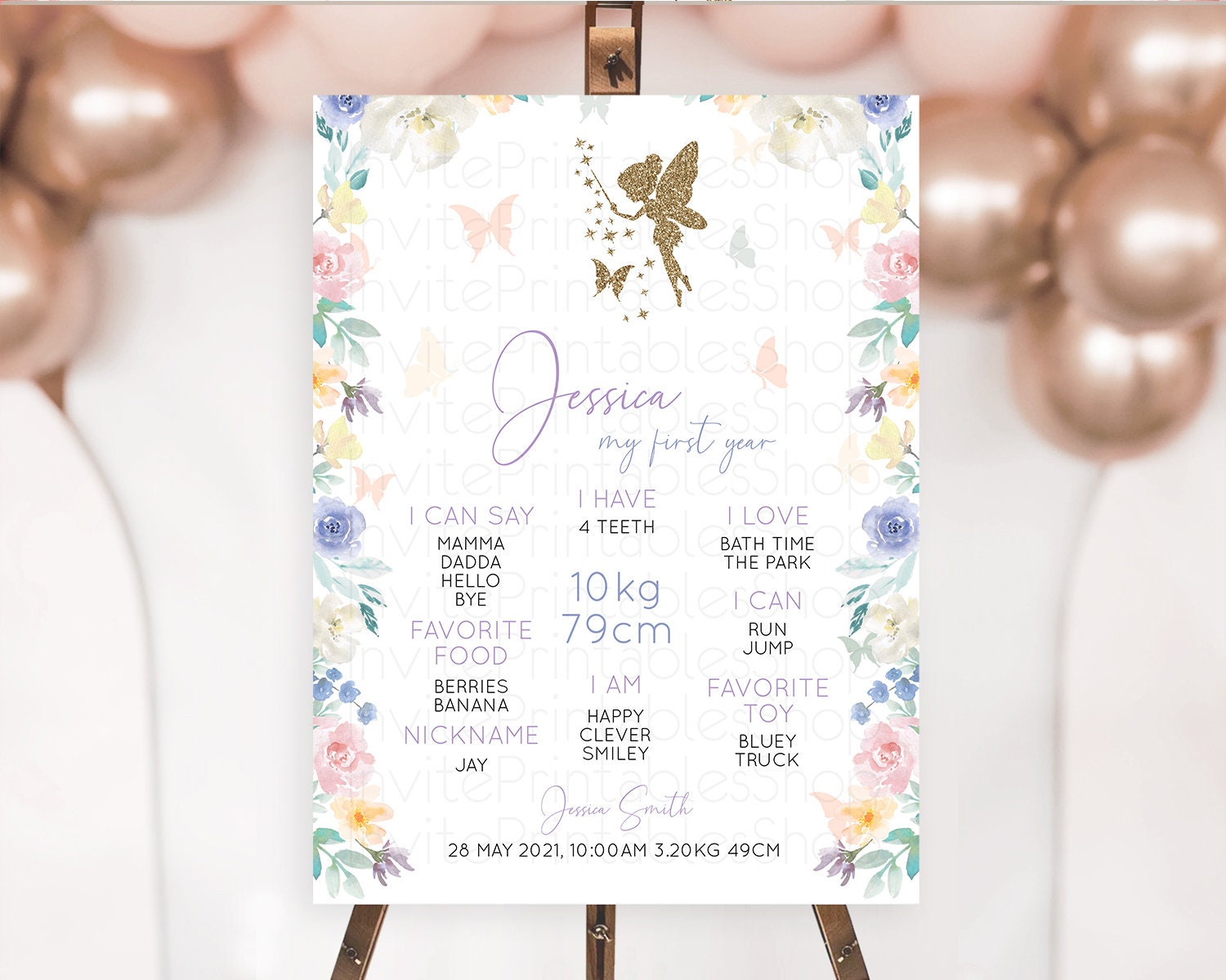 Fairy First Birthday Milestone Poster Fairy Secret Garden Milestone Board Enchanted Garden Pastel Floral Butterfly 1st Birthday Sign D10761