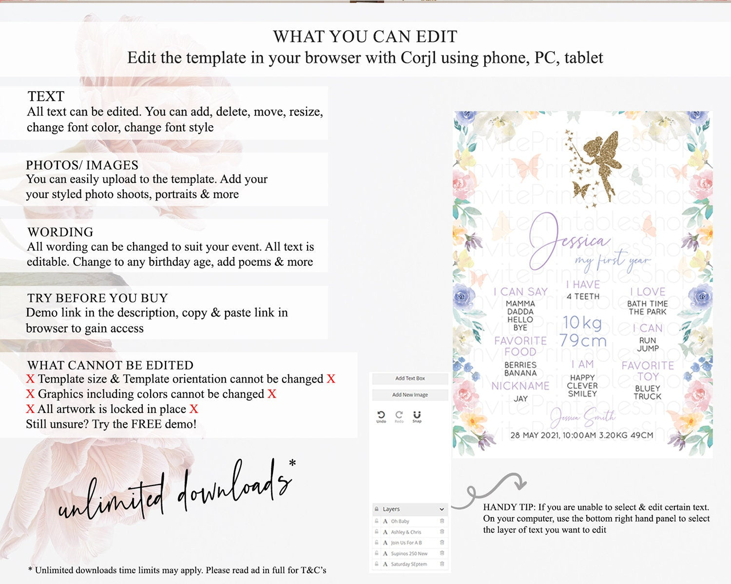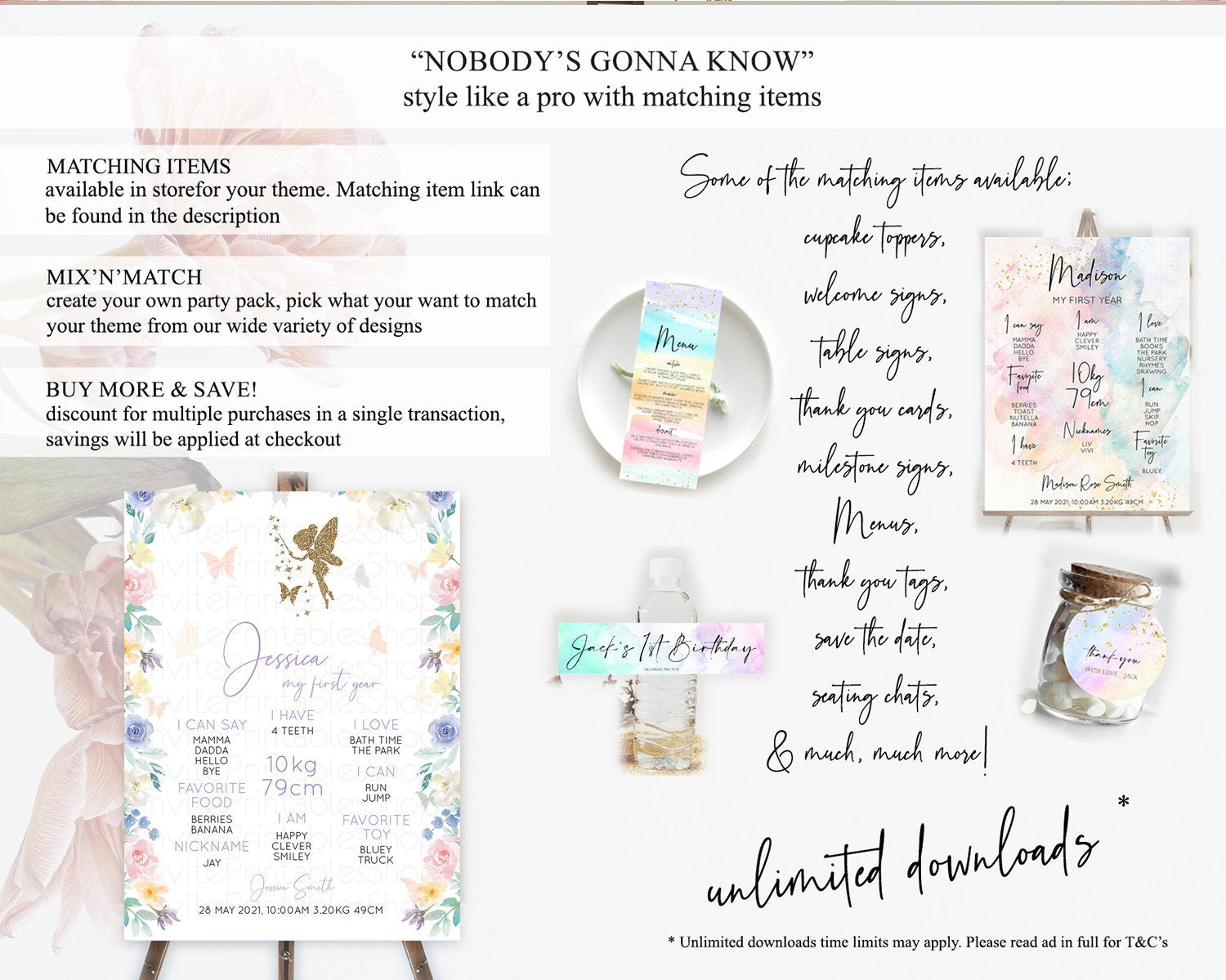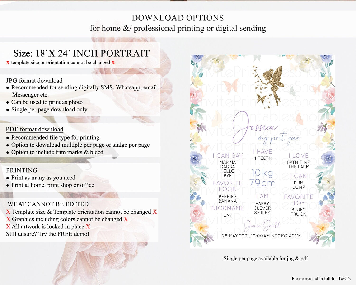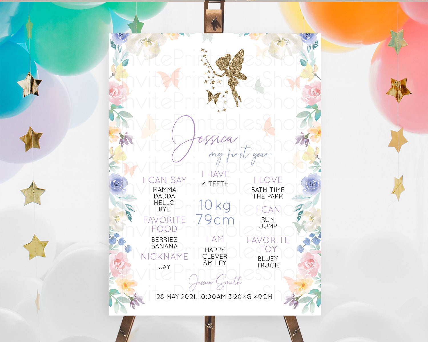 Fairy First Birthday Milestone Poster Fairy Secret Garden Milestone Board Enchanted Garden Pastel Floral Butterfly 1st Birthday Sign D10761