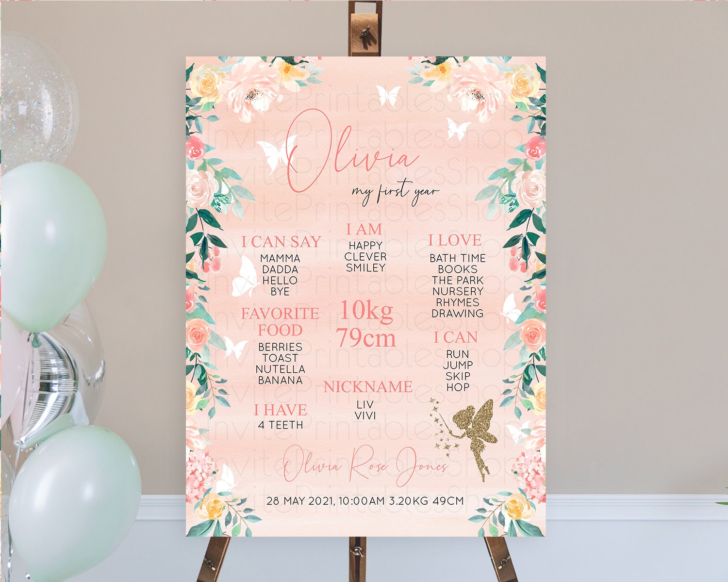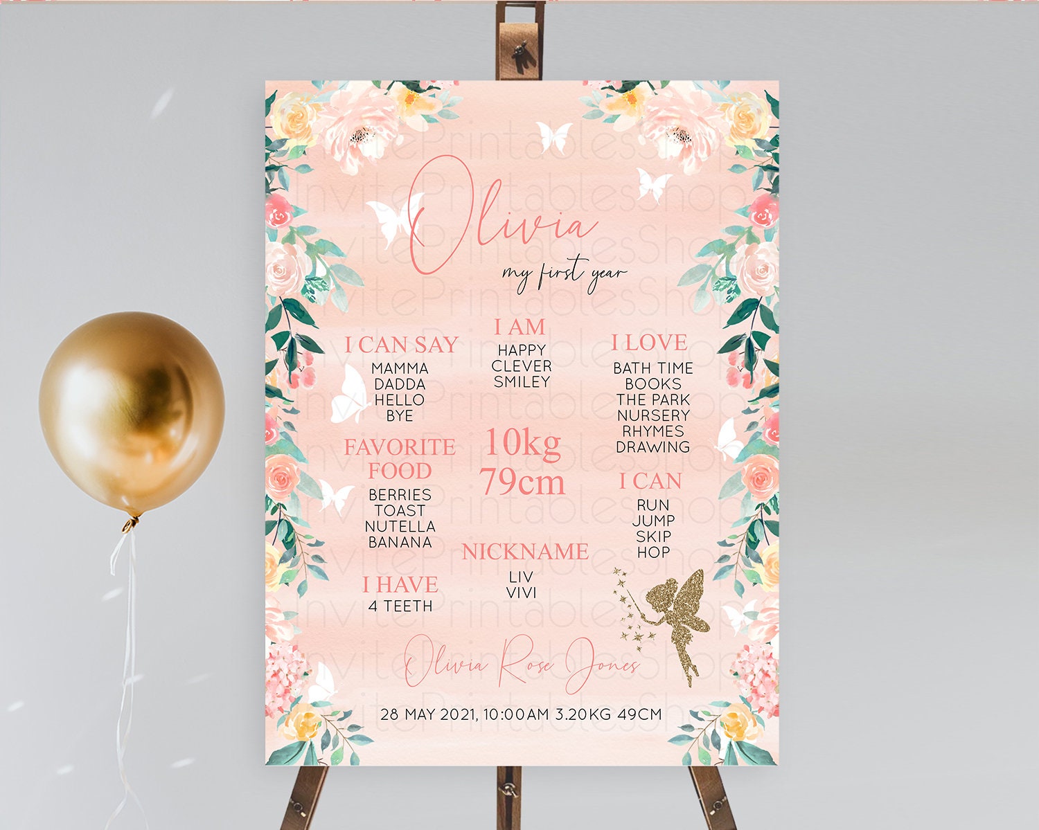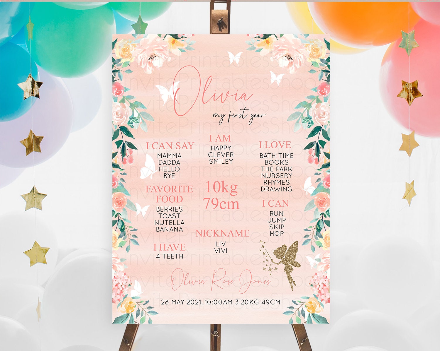 Fairy First Birthday Milestone Poster Fairy Secret Garden Milestone Board Enchanted Garden Pastel Floral Butterfly 1st Birthday Sign D10792