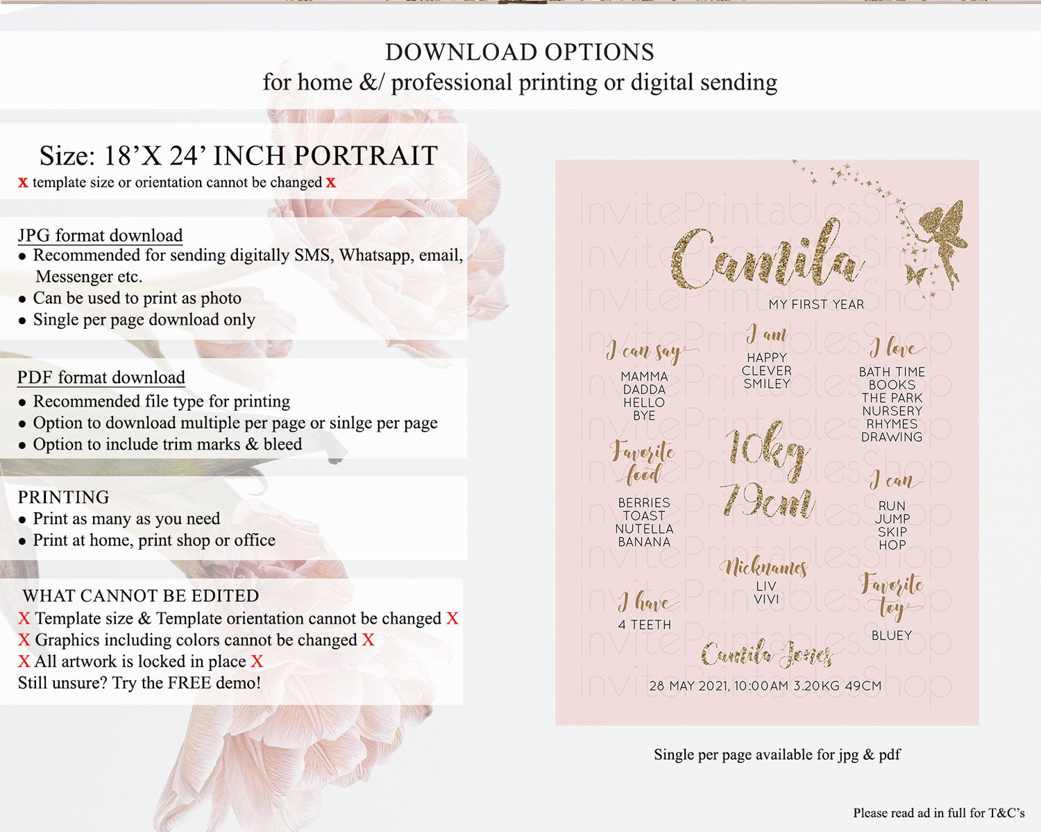 • Template size & orientation cannot be changed. Please use the demo link to confirm this product suits your needs.