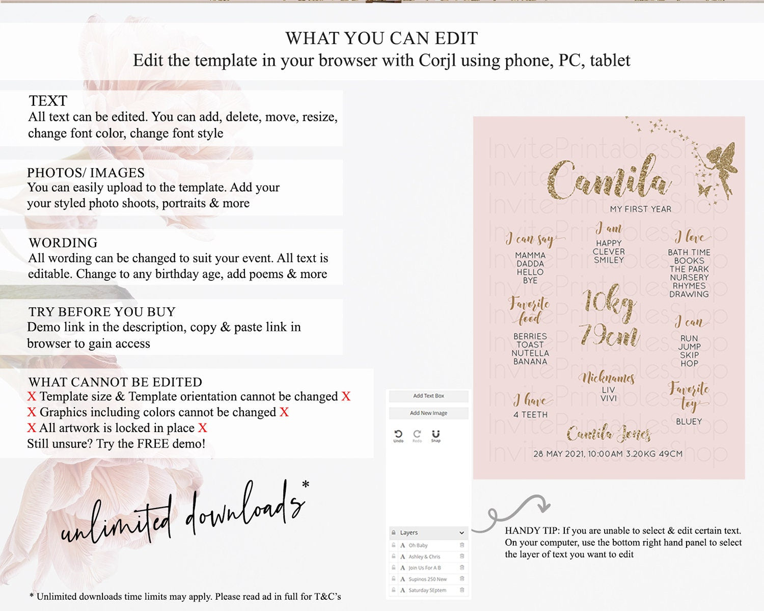 • After purchase, Corjl emails your editing link. Allow up to 15 minutes for delivery.