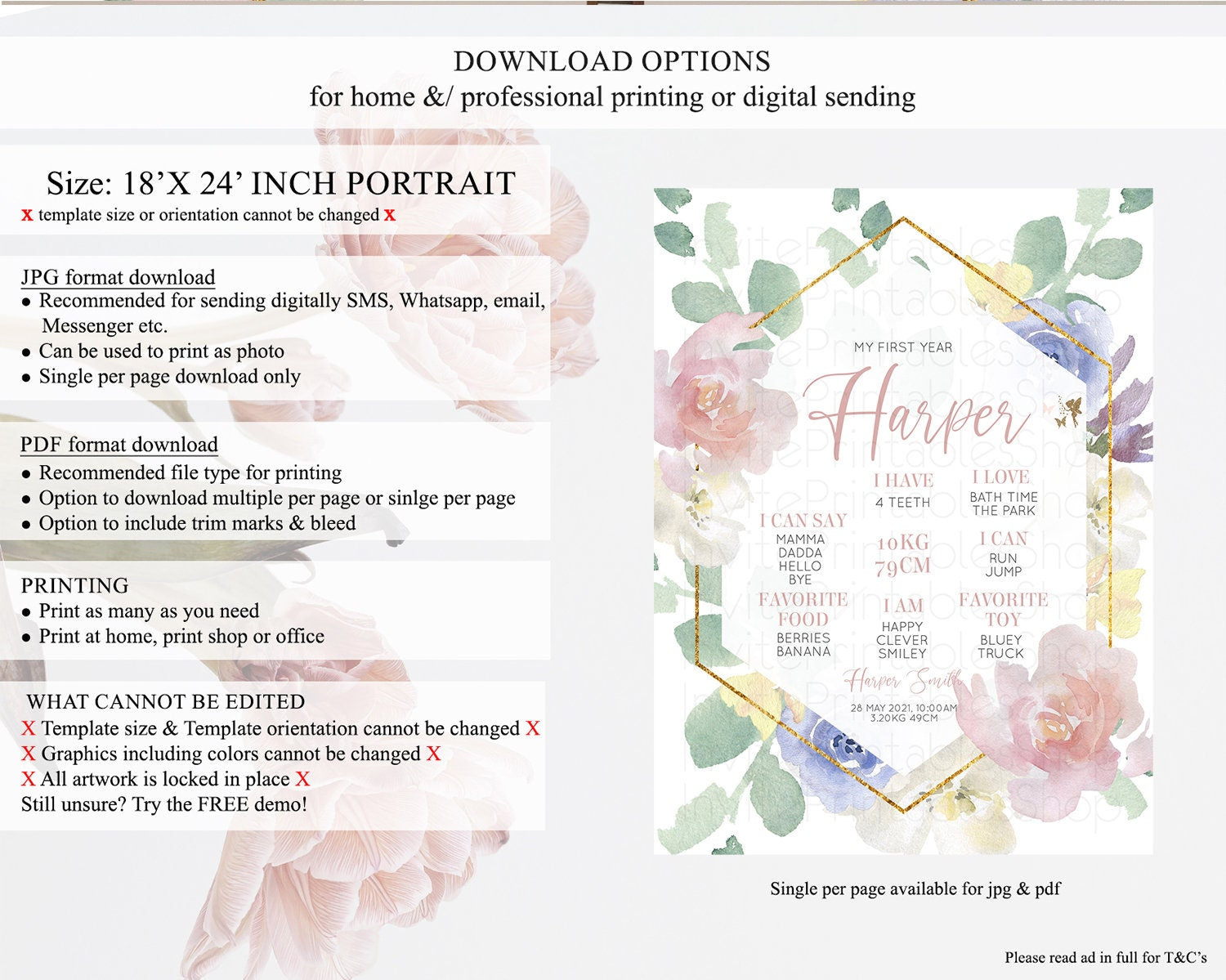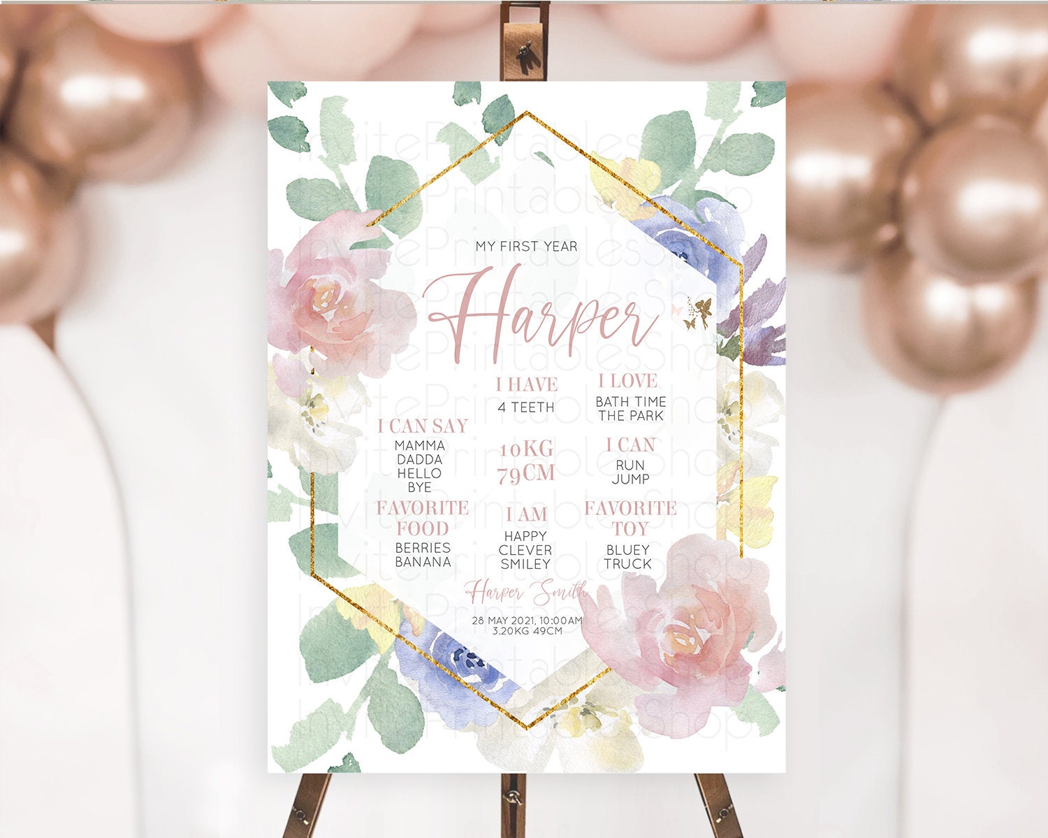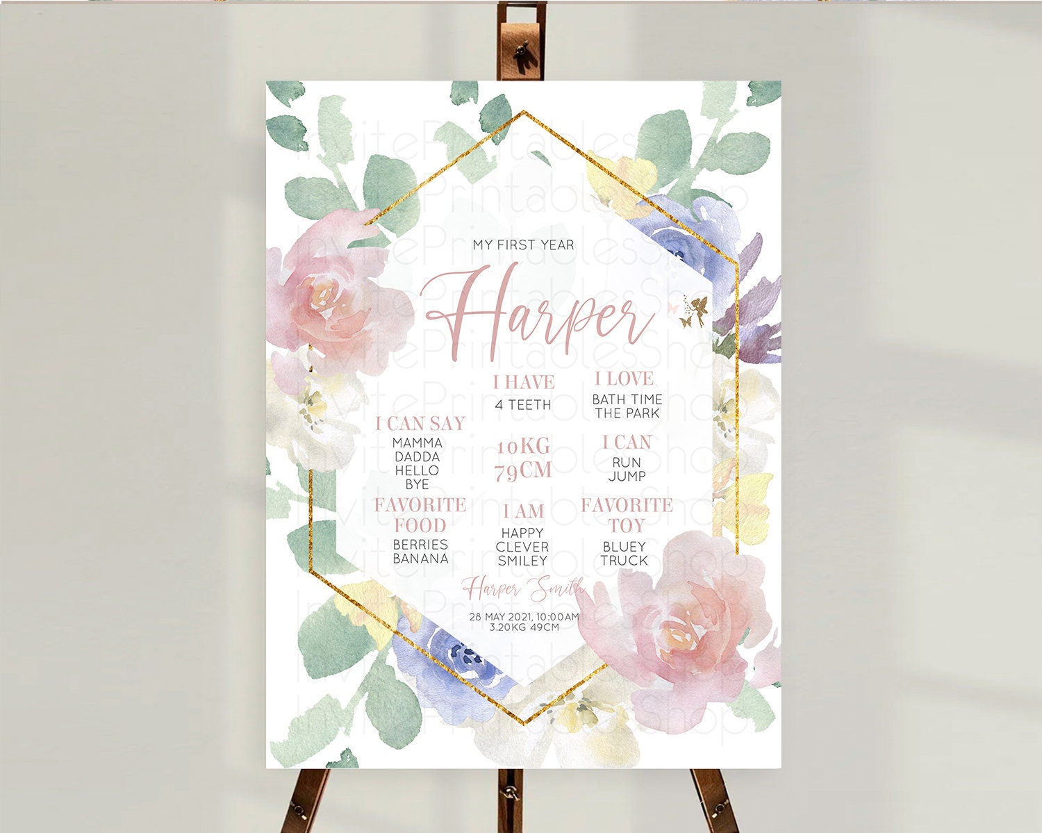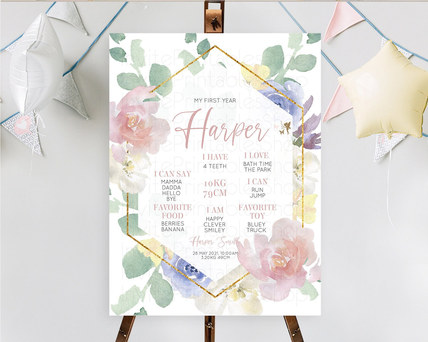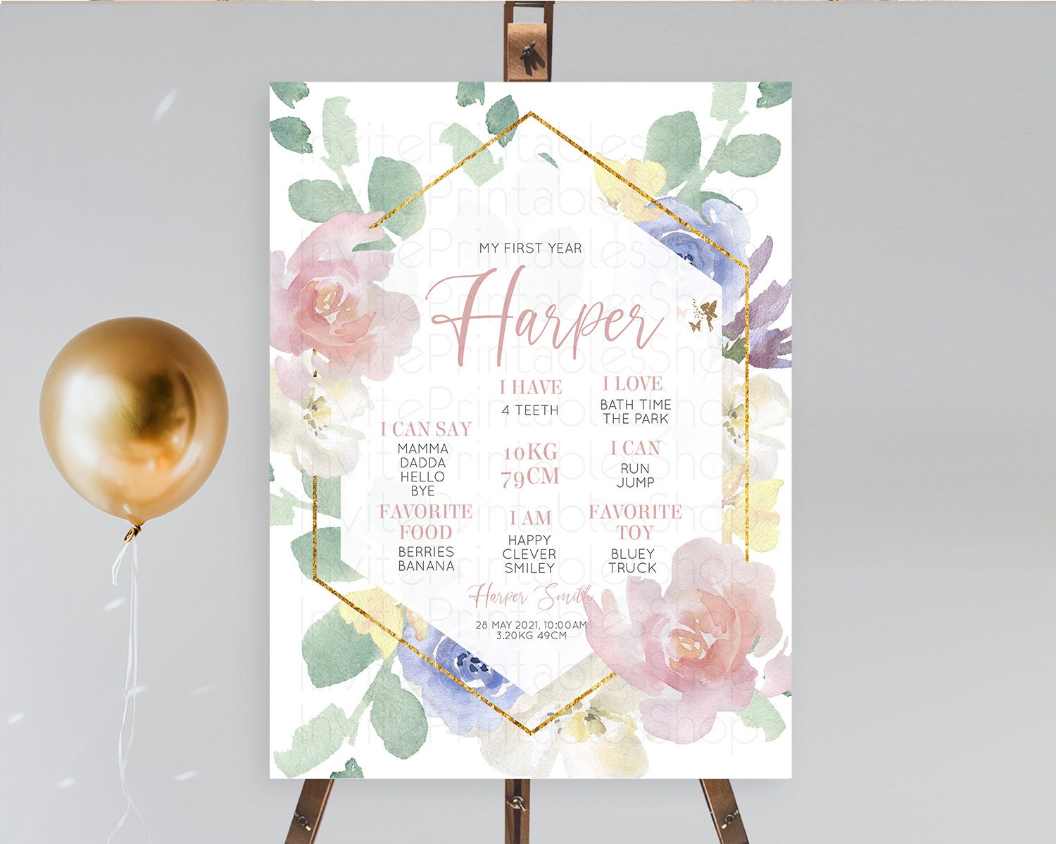 Fairy First Birthday Milestone Poster Fairy Secret Garden Milestone Board Enchanted Garden Pastel Floral Butterfly 1st Birthday Sign D10965