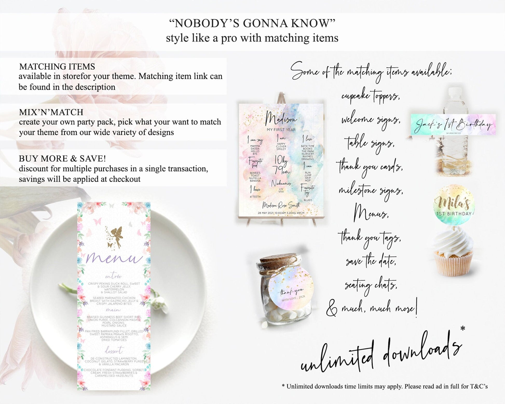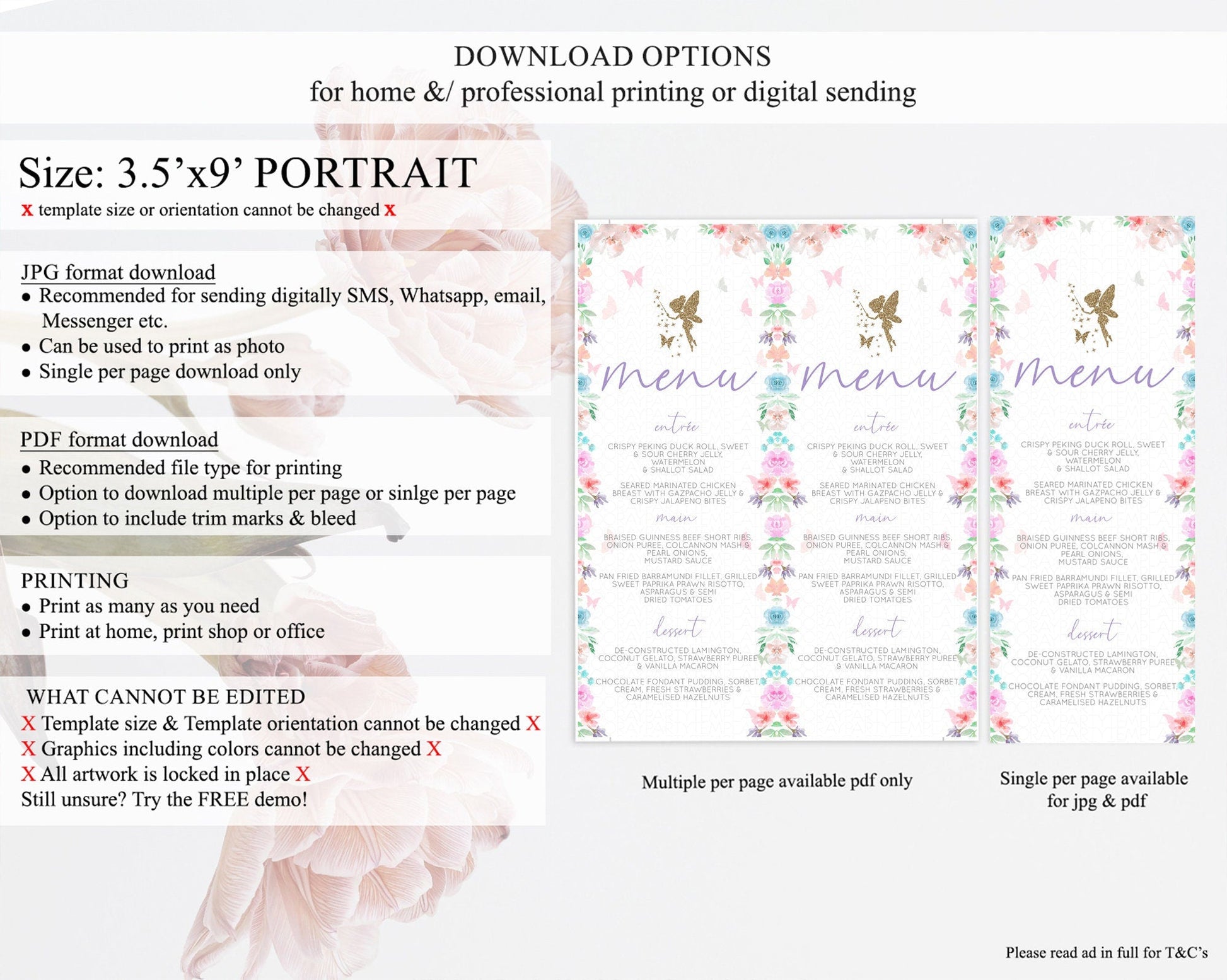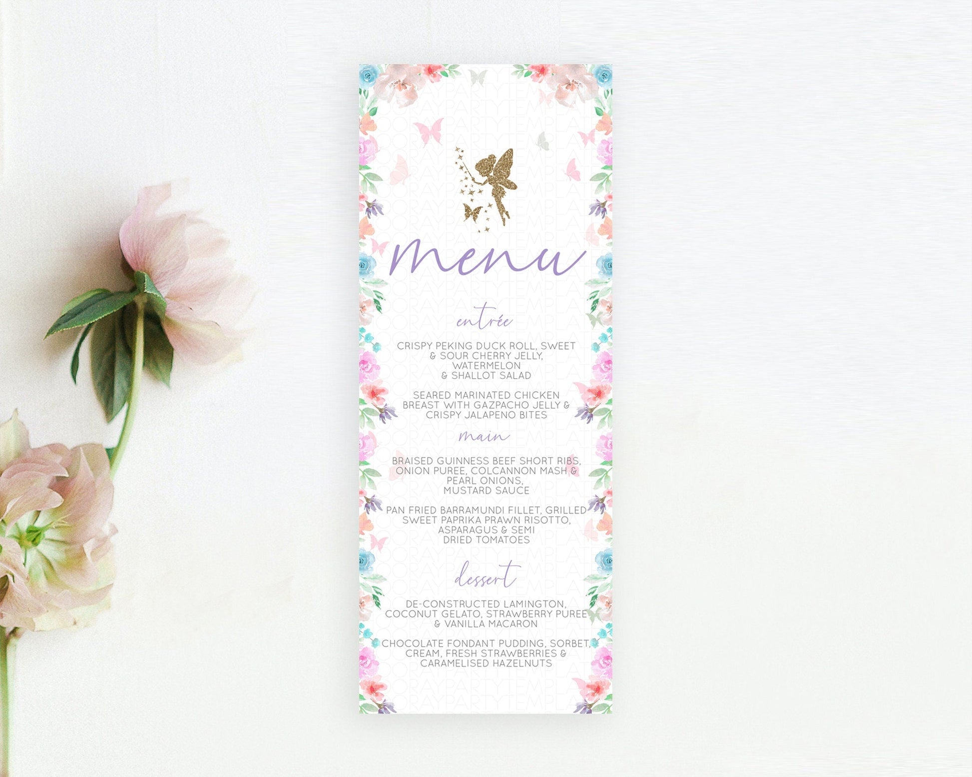 Fairy Menu Fairy Menu Template Enchanted Garden Pastel Floral Butterfly Table Decor Fairy Secret Garden Dinner Dessert Food Menu D10126