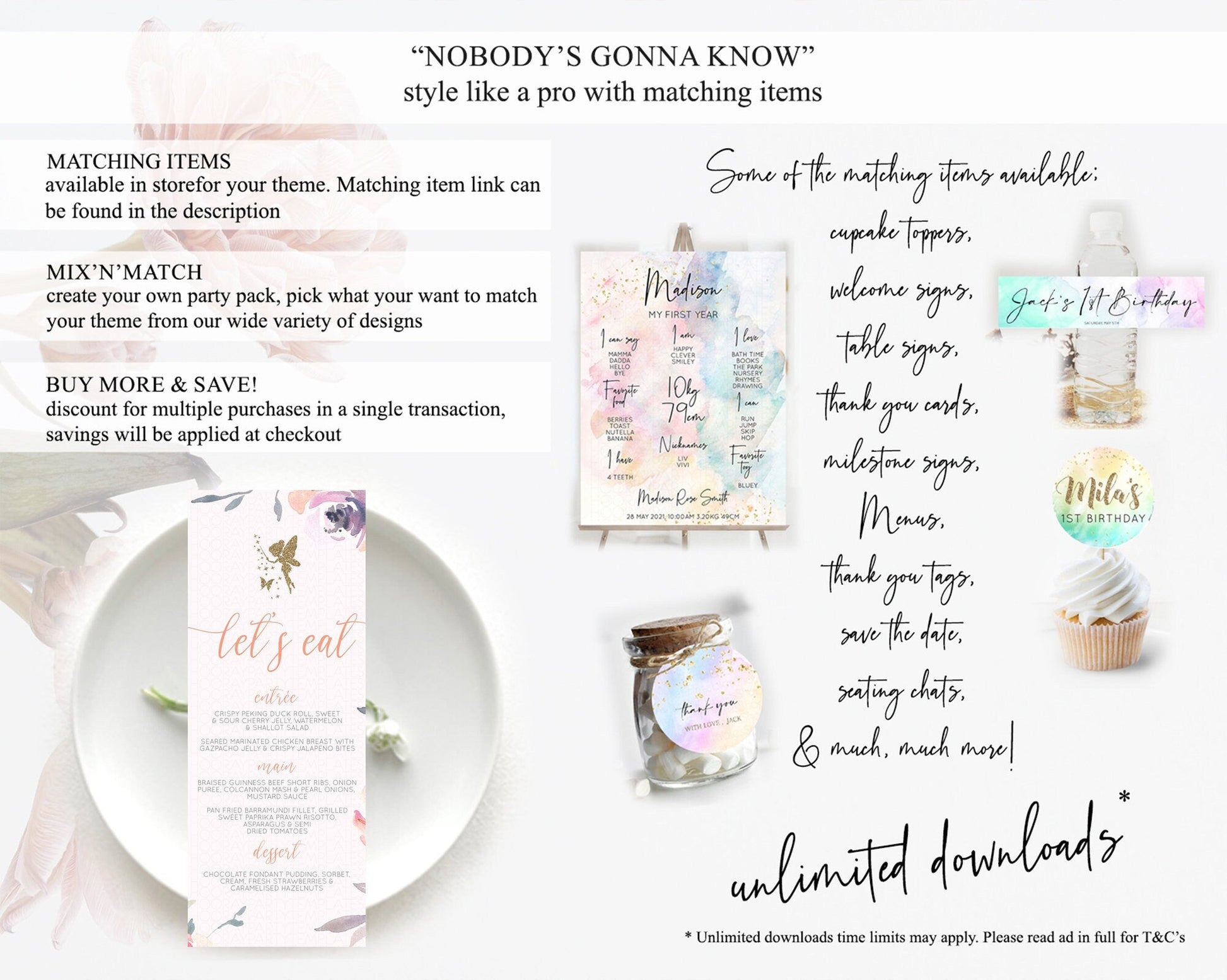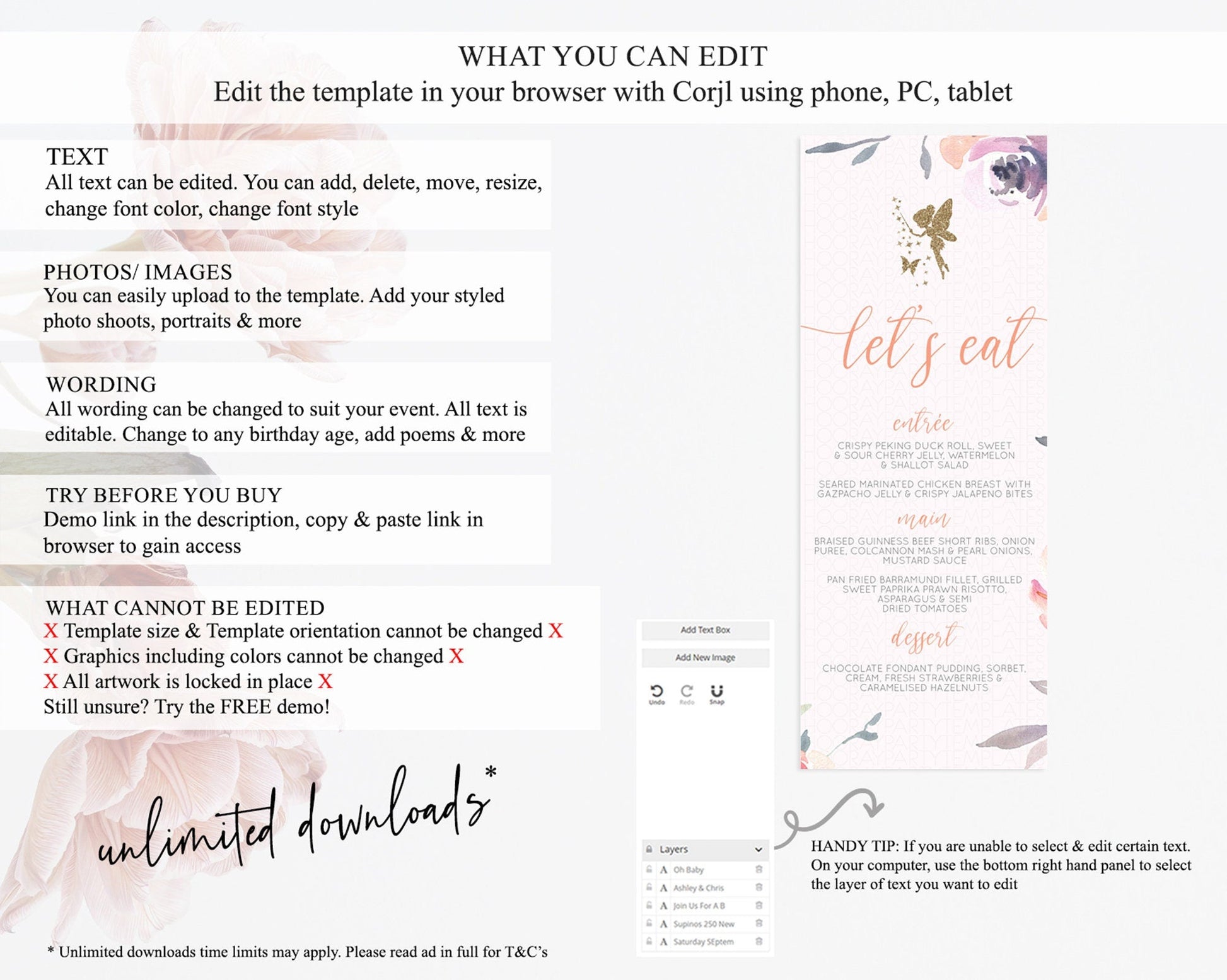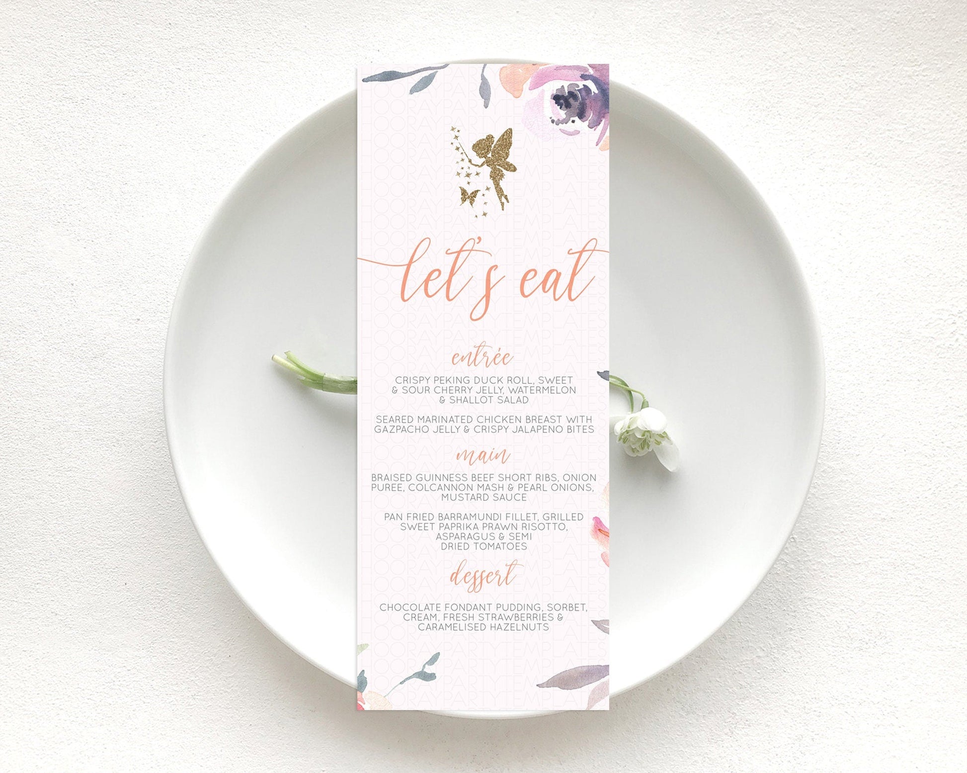 Fairy Menu Fairy Menu Template Enchanted Garden Pastel Floral Butterfly Table Decor Fairy Secret Garden Dinner Dessert Food Menu D10197