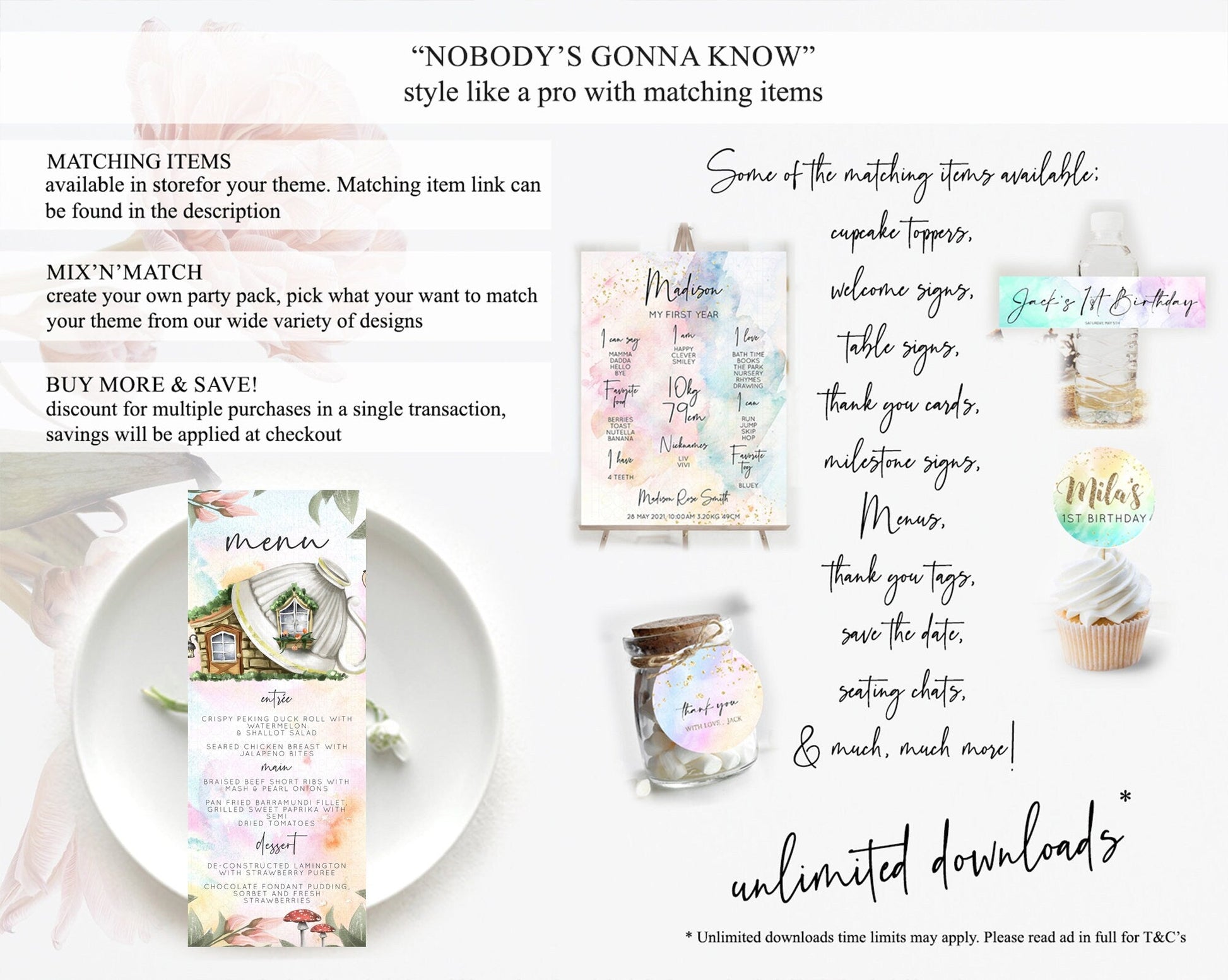 Fairy Menu Fairy Menu Template Enchanted Garden Pastel Floral Butterfly Table Decor Fairy Secret Garden Dinner Dessert Food Menu D10555